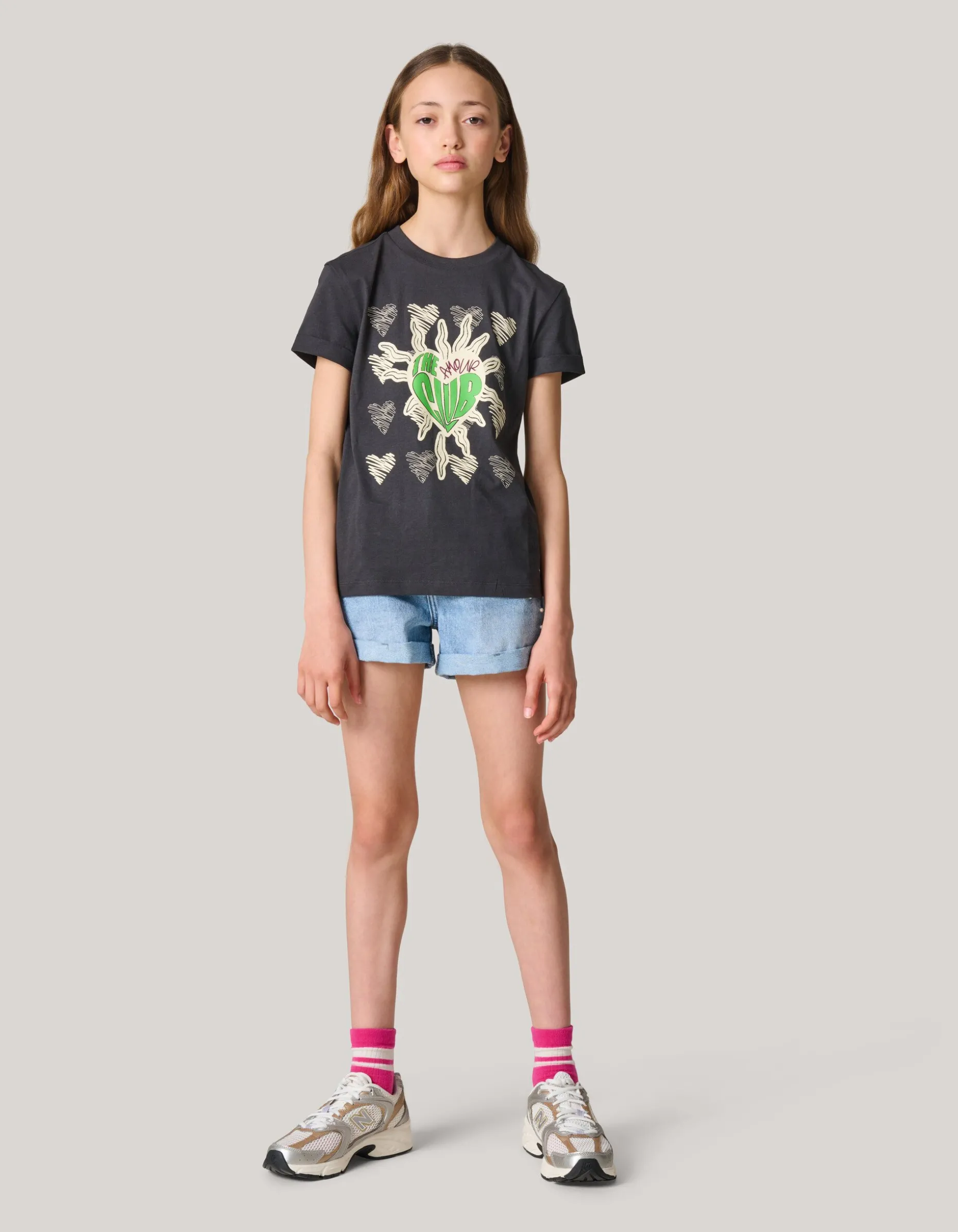 Make a statement! Het Artwork T-shirt heeft korte mouwen, een hoge ronde hals en een relaxed fit. Het item wordt gekenmerkt door de donkergrijze kleur met een artwork op de voorzijde. Verder is het gemaakt van 100% katoen, hierdoor is het sterk van kwaliteit en draagt het comfortabel. Combineer het samen met een shortje voor een stylish look!