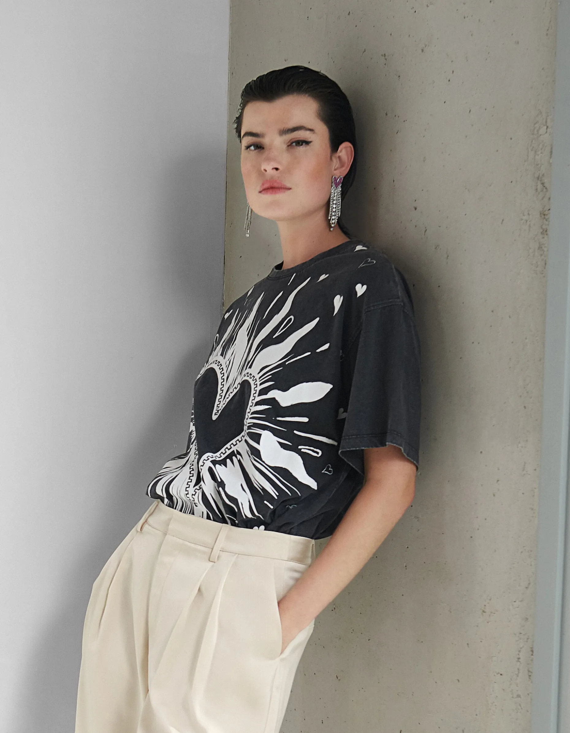 Musthave! Het Artwork T-shirt heeft een korte mouw, een hoge ronde hals en een relaxed fit. Het item wordt gekenmerkt door de donkergrijze kleur met een artwork op de voorzijde. Verder is het shirt gemaakt van 100% katoen, hierdoor draagt het comfortabel.