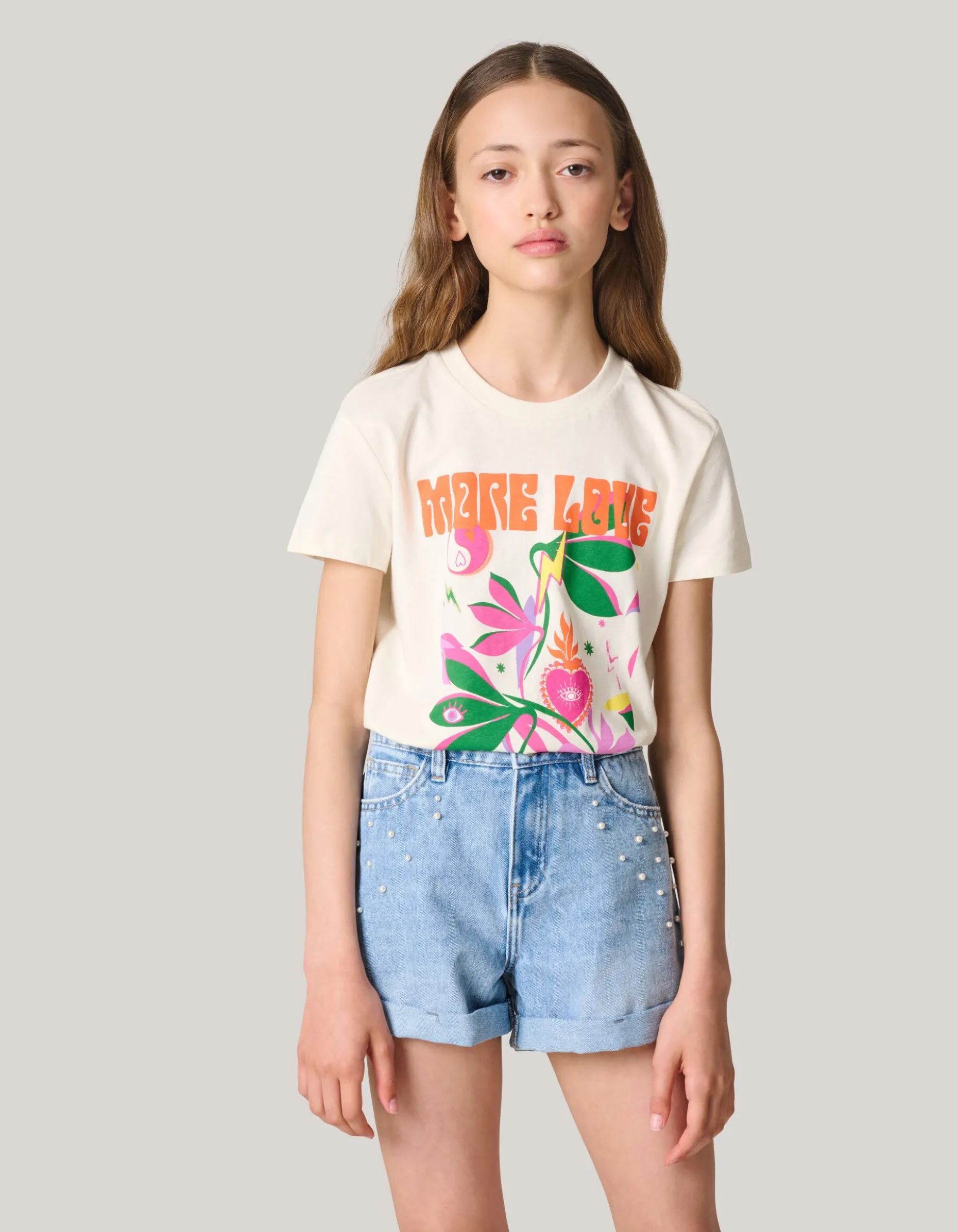 Make a statement! Het Artwork T-shirt heeft korte mouwen, een hoge ronde hals en een loose fit. Het item wordt gekenmerkt door de gebroken witte kleur met een artwork op de voorzijde. Verder is het gemaakt van 100% katoen, hierdoor is het sterk van kwaliteit en draagt het comfortabel. Combineer het samen met een shortje voor een stylish look!