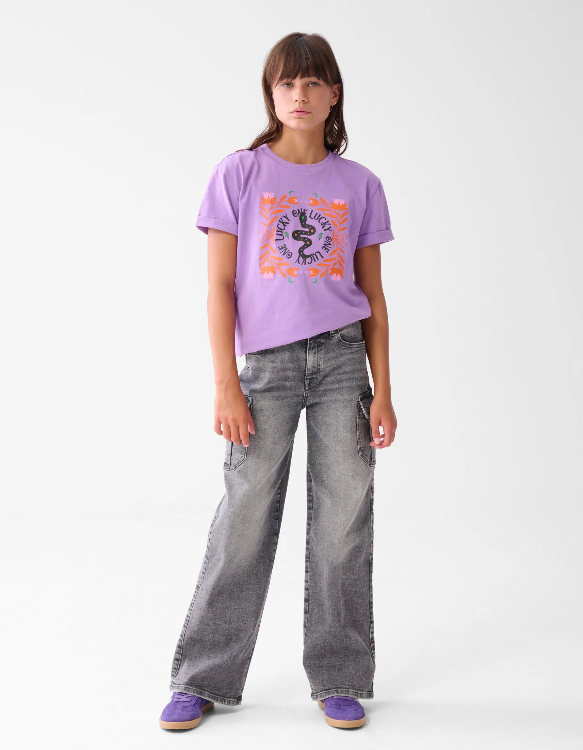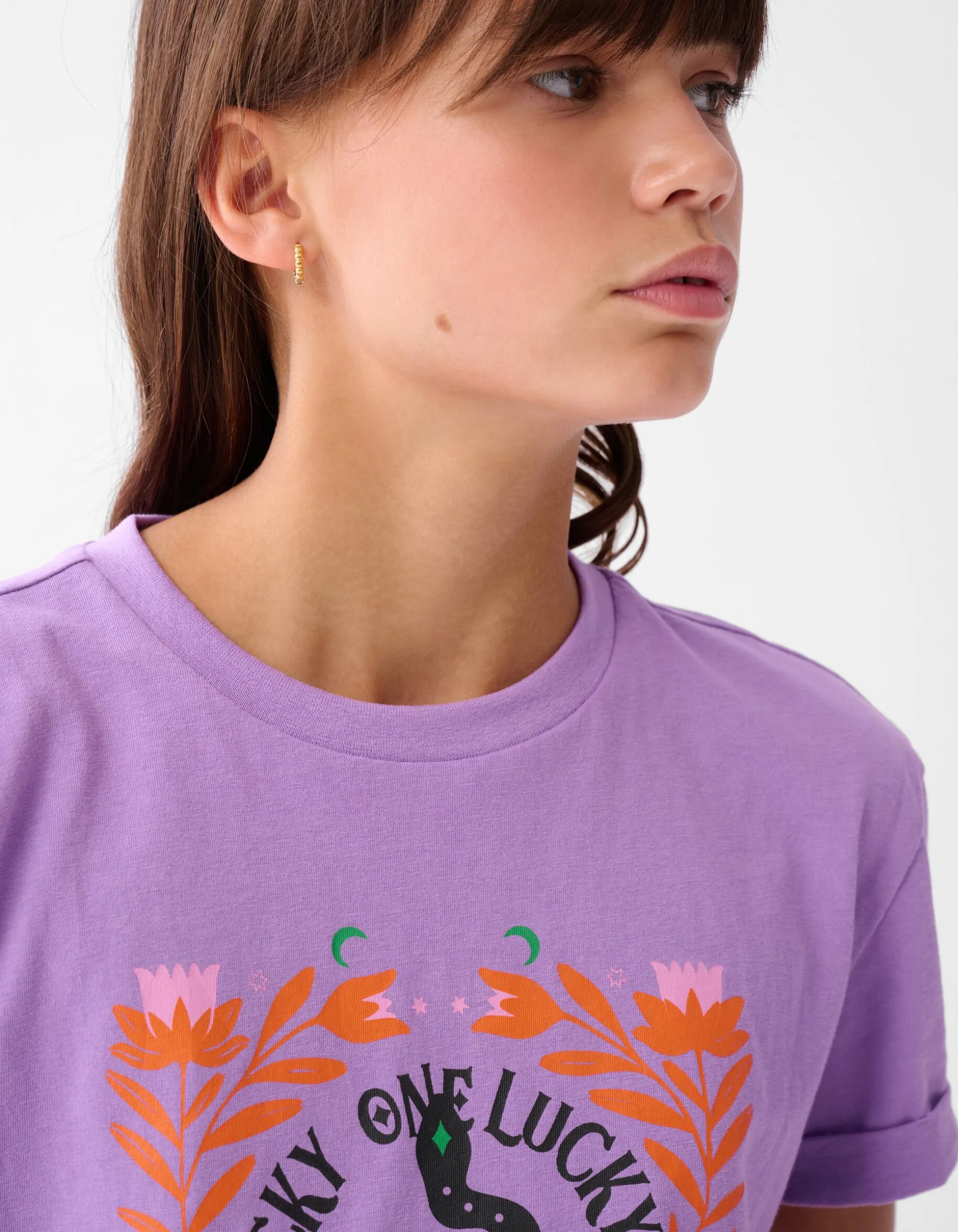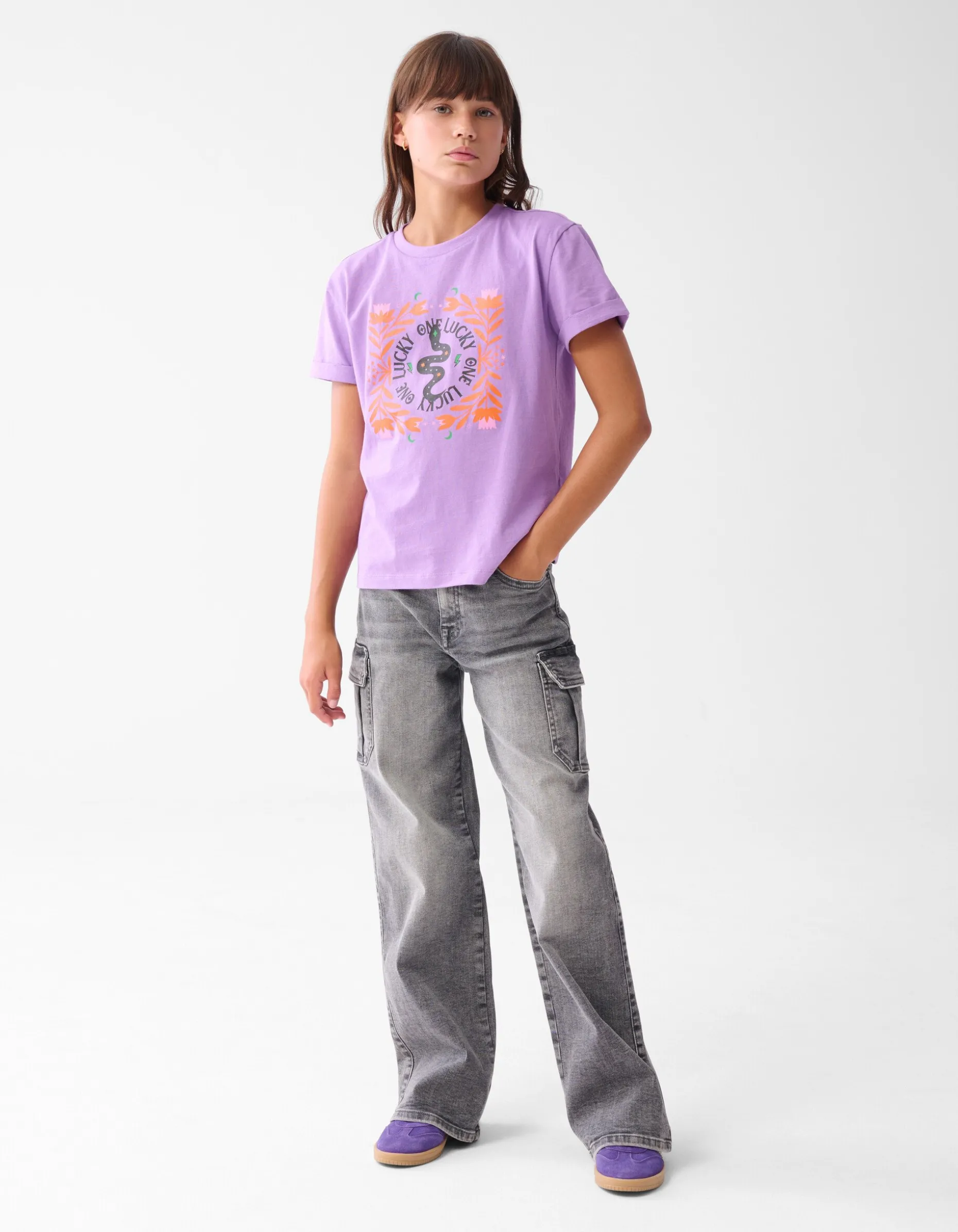 Musthave! Het Artwork T-shirt heeft korte mouwen, een hoge ronde hals en een regular fit. Het item wordt gekenmerkt door de paarse kleur met een artwork op de voorkant. Verder is het shirt gemaakt van 100% katoen, hierdoor is het sterk van kwaliteit en draagt het comfortabel. Combineer het samen met je favoriete jeans voor een complete look!
