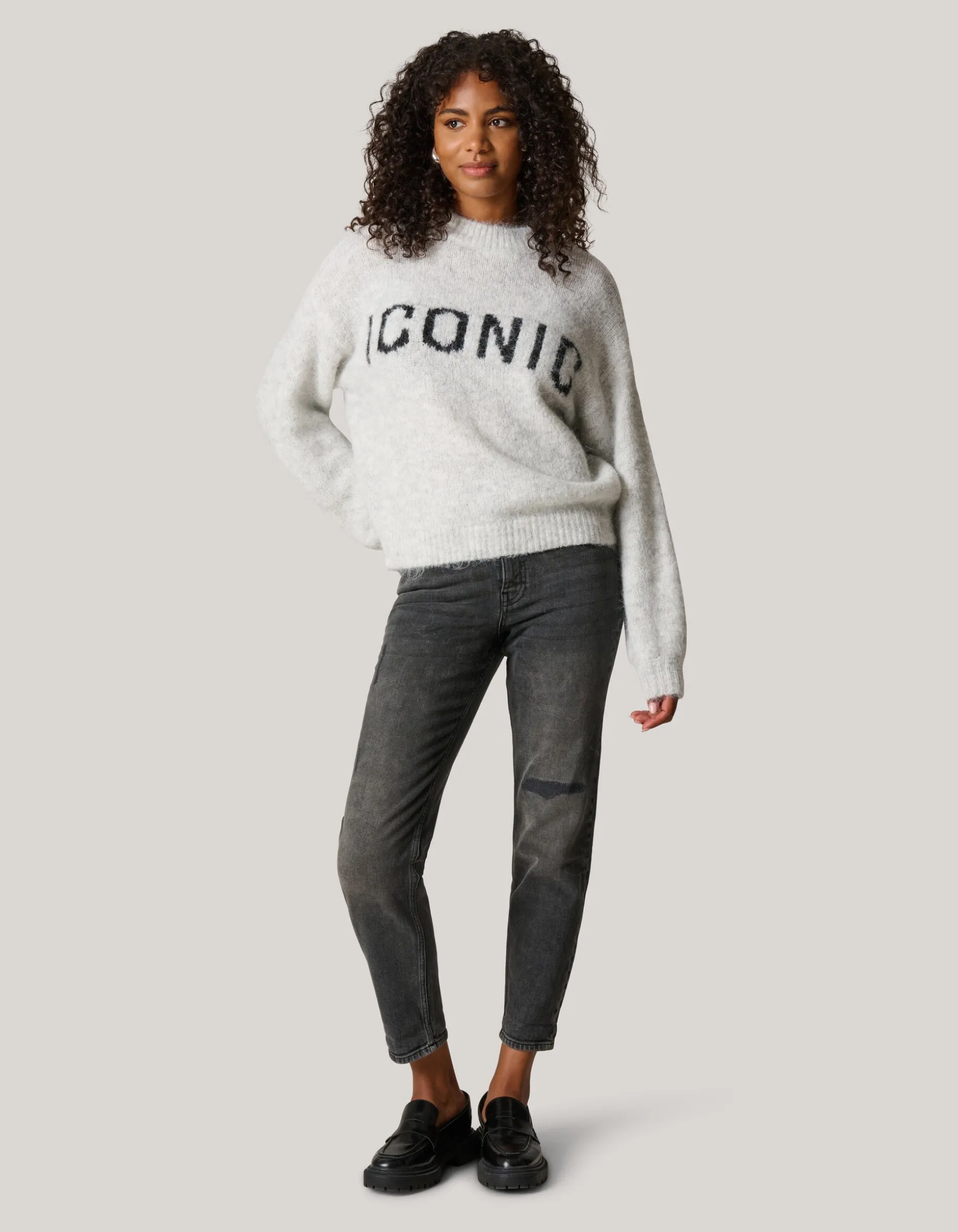 Comfy and stylish! Haal een veelzijdig kledingstuk in huis met deze Artwork Trui. De trui wordt gekenmerkt door de grijze kleur met tekstprint op de voorzijde in een zwarte kleur. Dit zorgt voor een opvallende look met een speelse touch. De trui heeft een oversized fit en een ronde halslijn, waardoor het gemakkelijk te dragen is en perfect past bij je favoriete jeans. Of je nu een dagje uit gaat of een ontspannen avondje thuis doorbrengt, dit item is de ideale aanvulling op je garderobe! Het item is gemaakt van polyester, polyamide, wol en elastaan, hierdoor draagt het comfortabel, is het zacht en is het sterk van kwaliteit. Het model heeft een lengte van 176 cm en draagt maat S. De totale lengte van dit item is 57 cm bij een maat S. Voor dit artikel wordt geadviseerd het op een wolwasprogramma te wassen, in een waszakje. Droog het artikel liggend om zo de vorm mooi te houden.