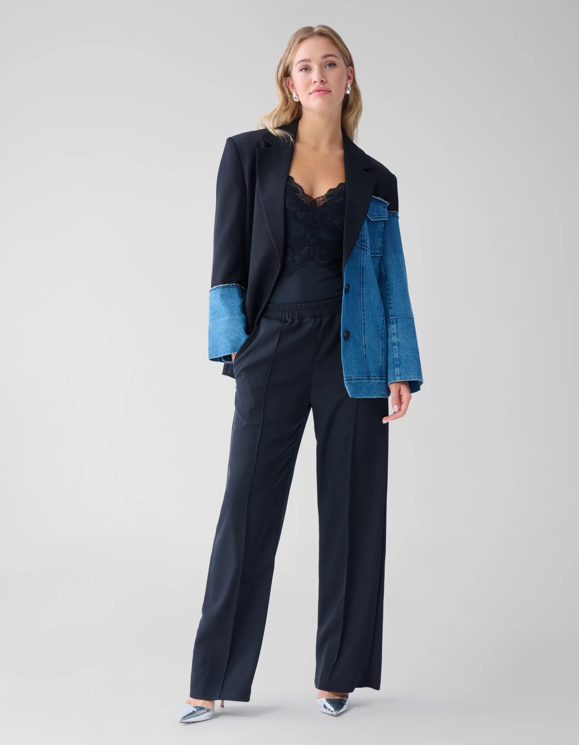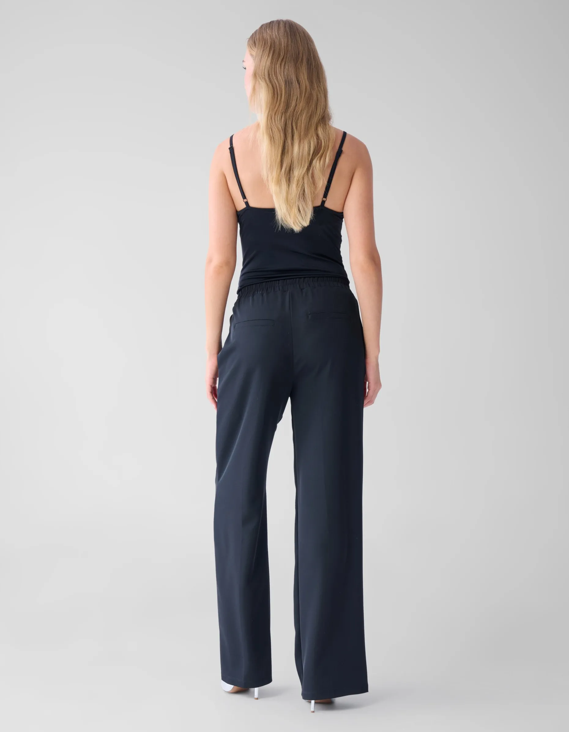 Ontmoet je nieuwe favoriet! De Classic Wide Leg Broek Zwart. De broek heeft een zwarte kleur, een hoge taille, een uitlopend model, een stretch stof en een elastieken band. Of je nu uitgaat met vrienden of naar kantoor gaat, deze broek past bij elke gelegenheid. De zwarte kleur en het eenvoudige ontwerp maken het gemakkelijk te combineren met andere kledingstukken. Verder is de broek gemaakt van polyamide en elastaan. Door deze samenstelling is het sterk van kwaliteit en vormvast. Het model is 176 cm lang en draagt maat S en de binnenbeenlengte van de broek is 82 cm bij maat 27.