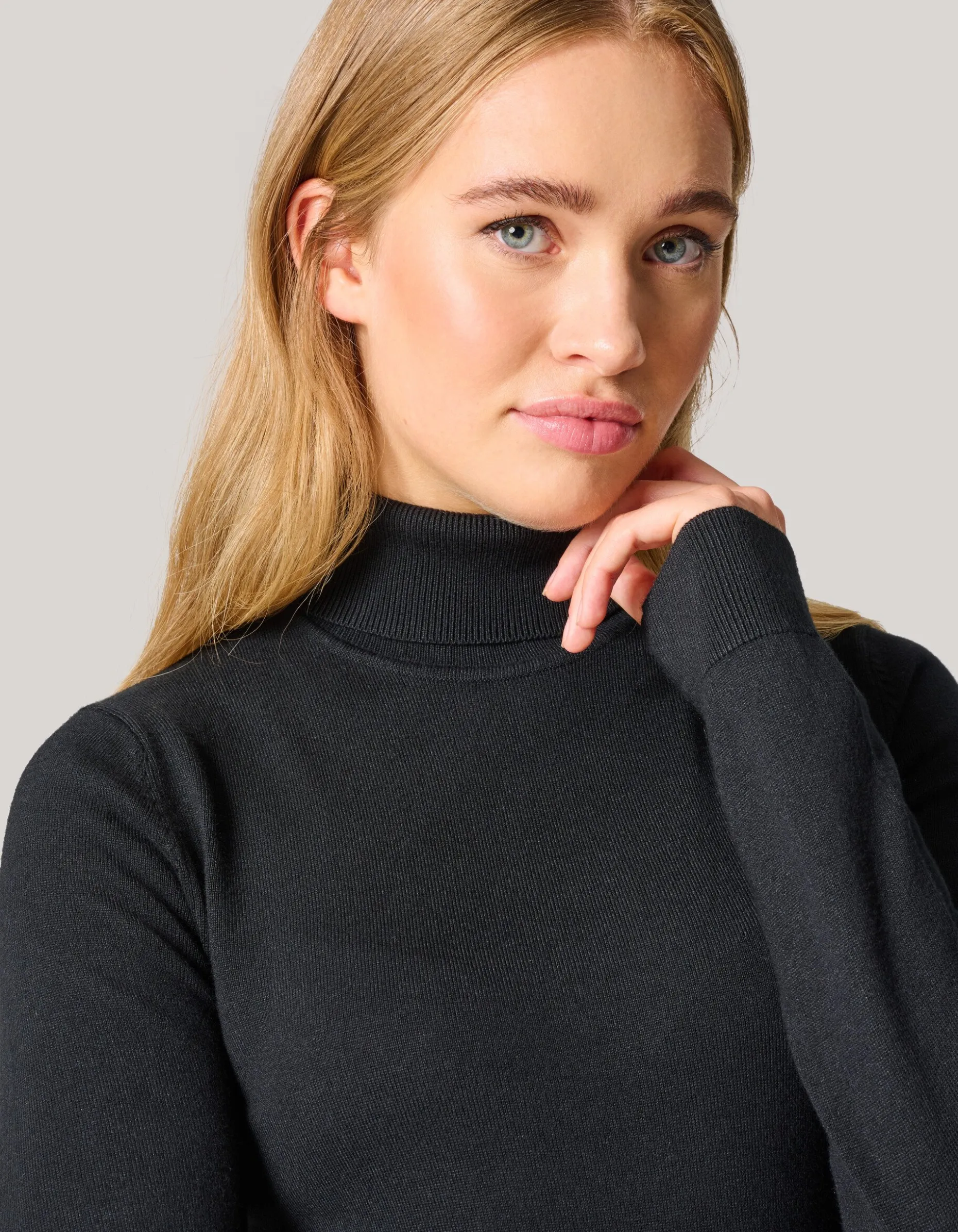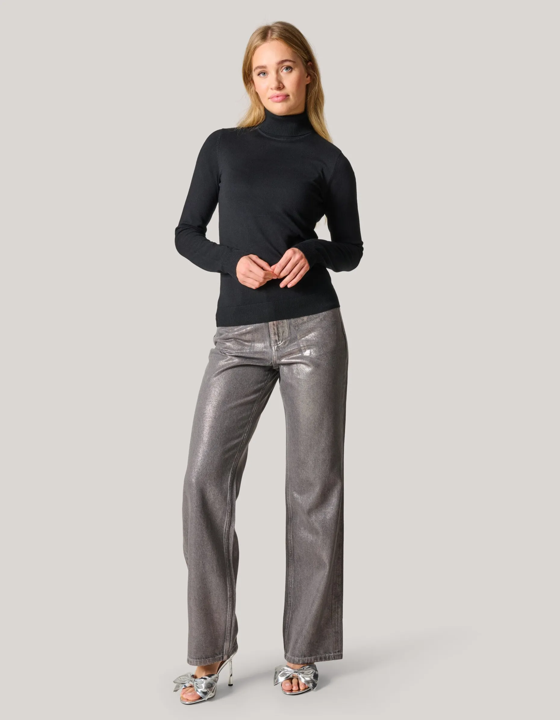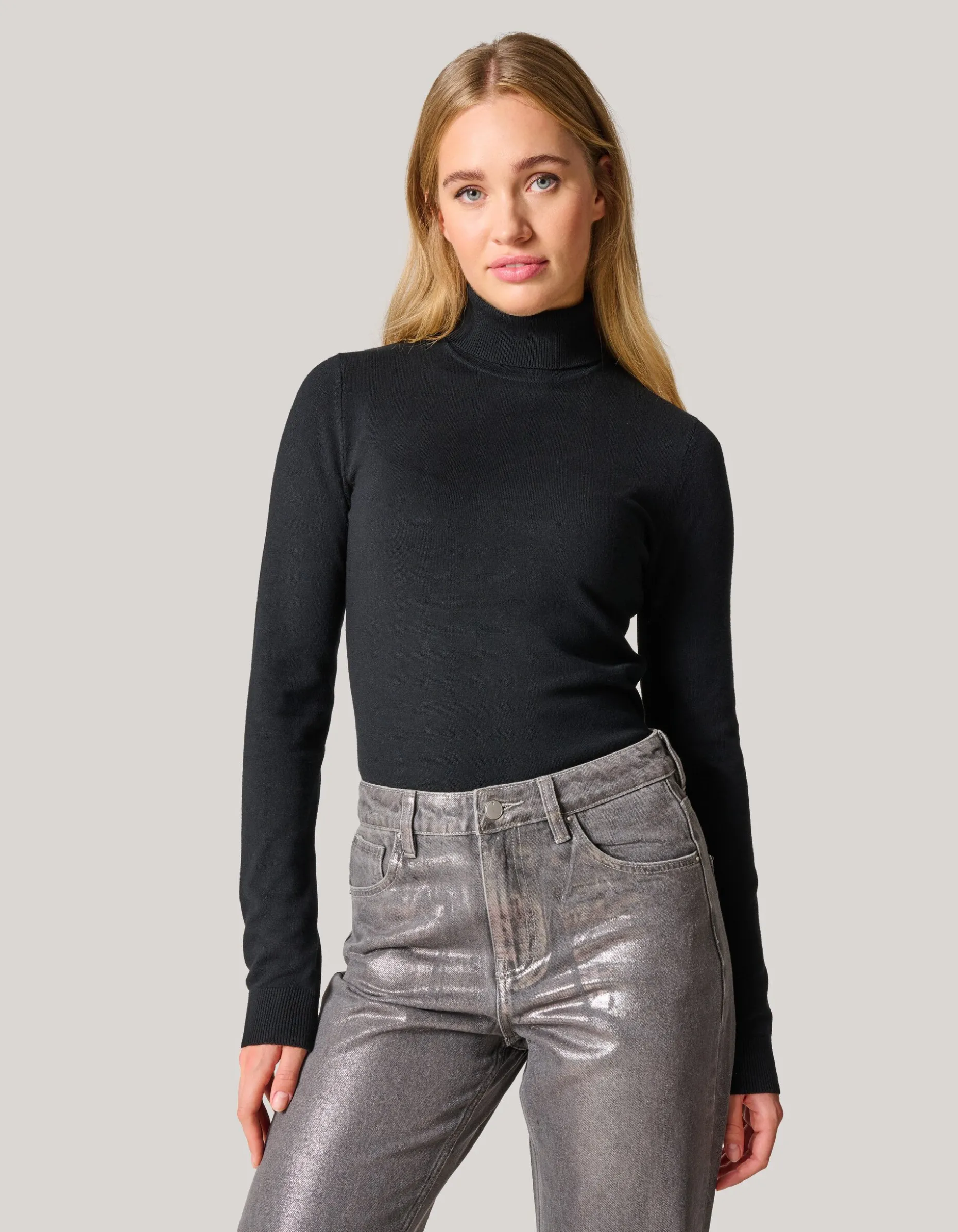 Black never goes out of style! Met de Basis Turtle Neck creëer jij in een handomdraai een comfy en trendy look. De trui heeft lange mouwen, een aansluitende fit, een stretch stof en een colkraag. Verder wordt de trui gekenmerkt door een zwarte kleur met een stevige kwaliteit, waardoor de trui mooi strak aansluit. Het is gemaakt van viscose en polyamide. Door deze samenstelling is het sterk van kwaliteit, vormvast, kleurvast en comfortabel. Combineer het item samen met een jacquard denim jeans en een strass hakken voor een chique look. Het model heeft een lengte van 173 cm en draagt maat S. Het artikel heeft een totale lengte van 65 cm bij maat S.