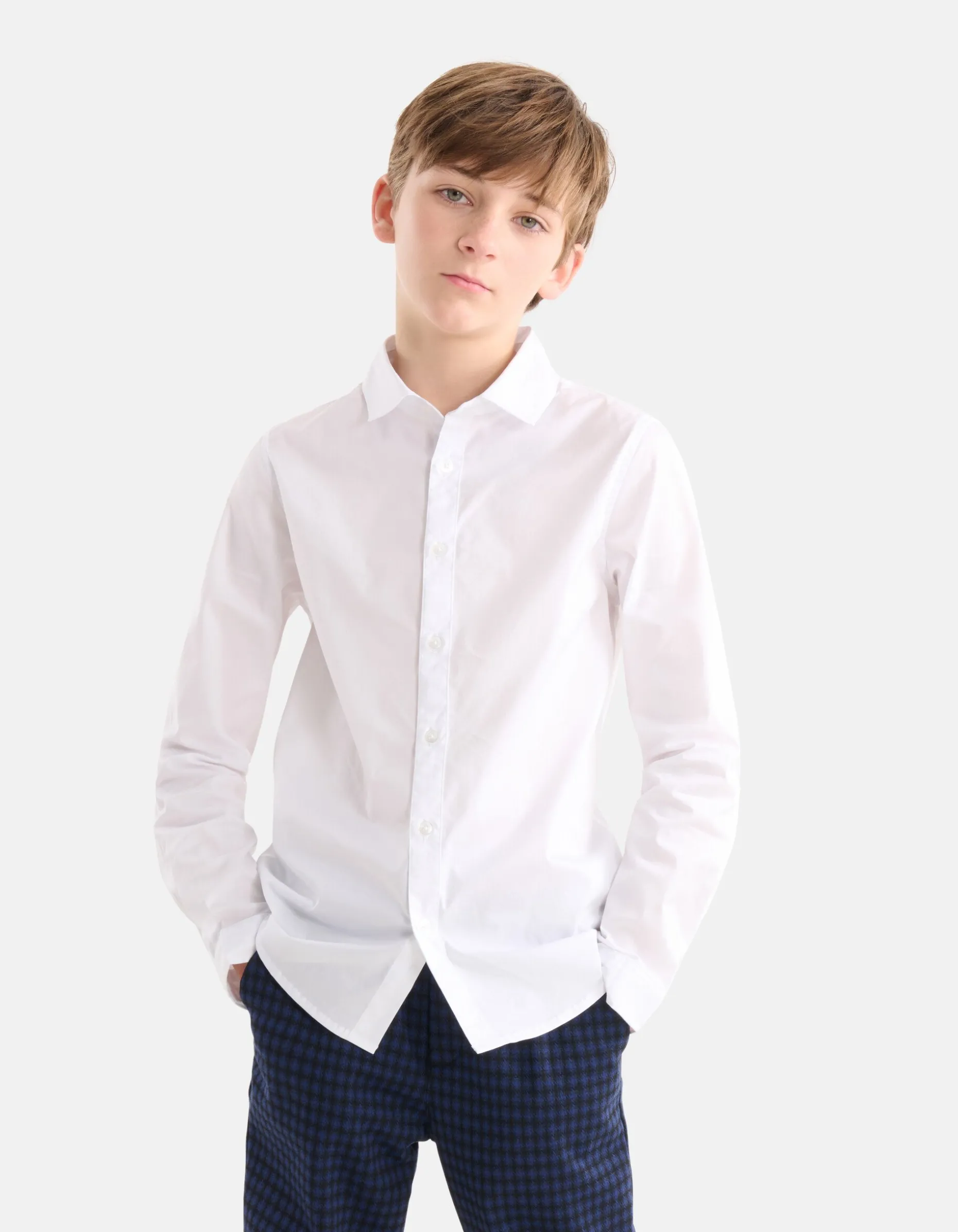 Een echte klassieker! Het Basis Overhemd heeft lange mouwen, een kraag, een knoopsluiting en een regular fit. Het item wordt gekenmerkt door een klassieke witte kleur en een stevige stof. Het wordt gemaakt van katoen, polyamide en elastaan. Door deze samenstelling is het sterk van kwaliteit, vormvast, rekbaar en comfortabel. Het overhemd is het hele jaar door te dragen. Combineer het in de winter samen met een jeans en een sweater of ga voor een chic look met een nette pantalon. Genoeg keuzes met deze klassieke basis overhemd!
