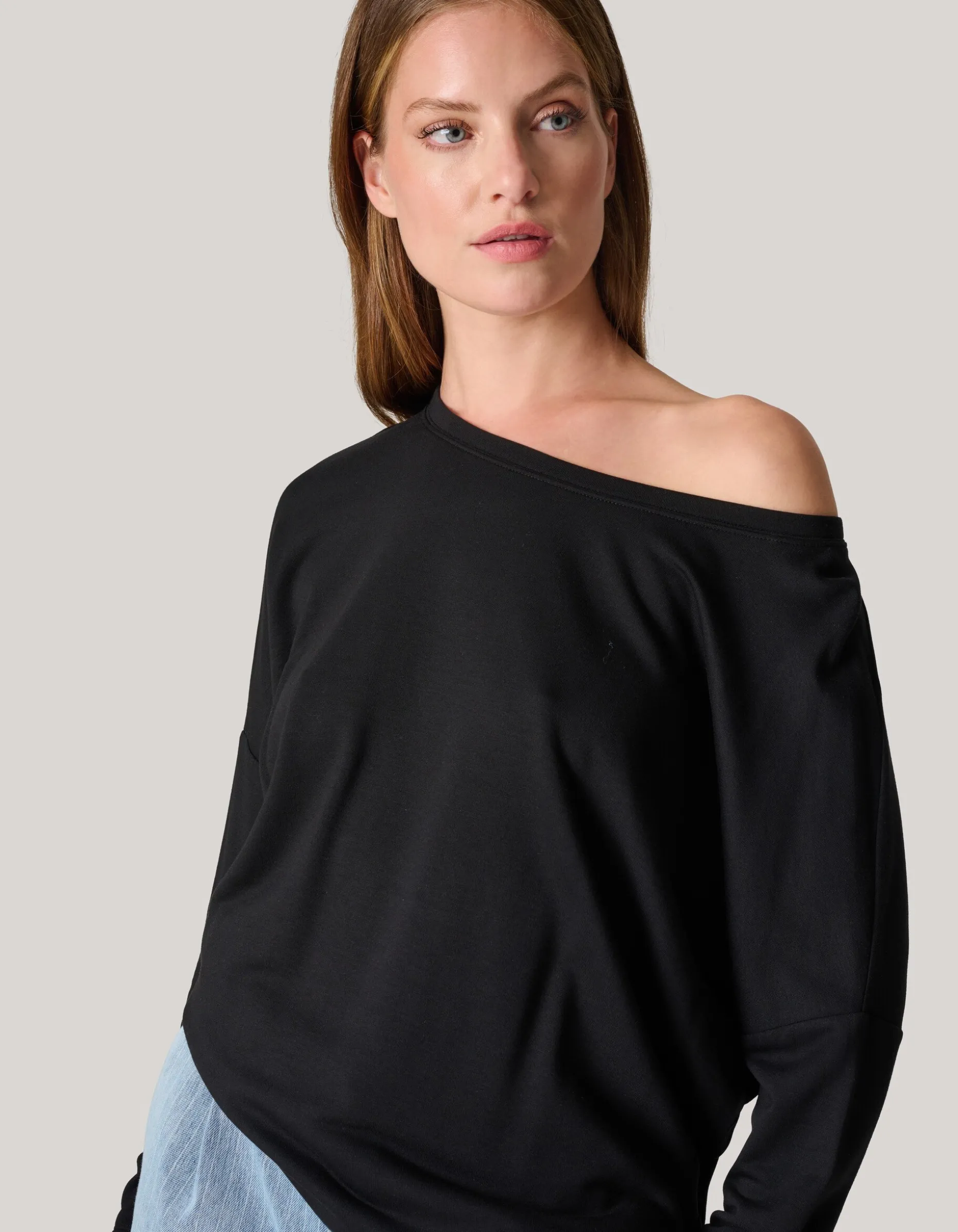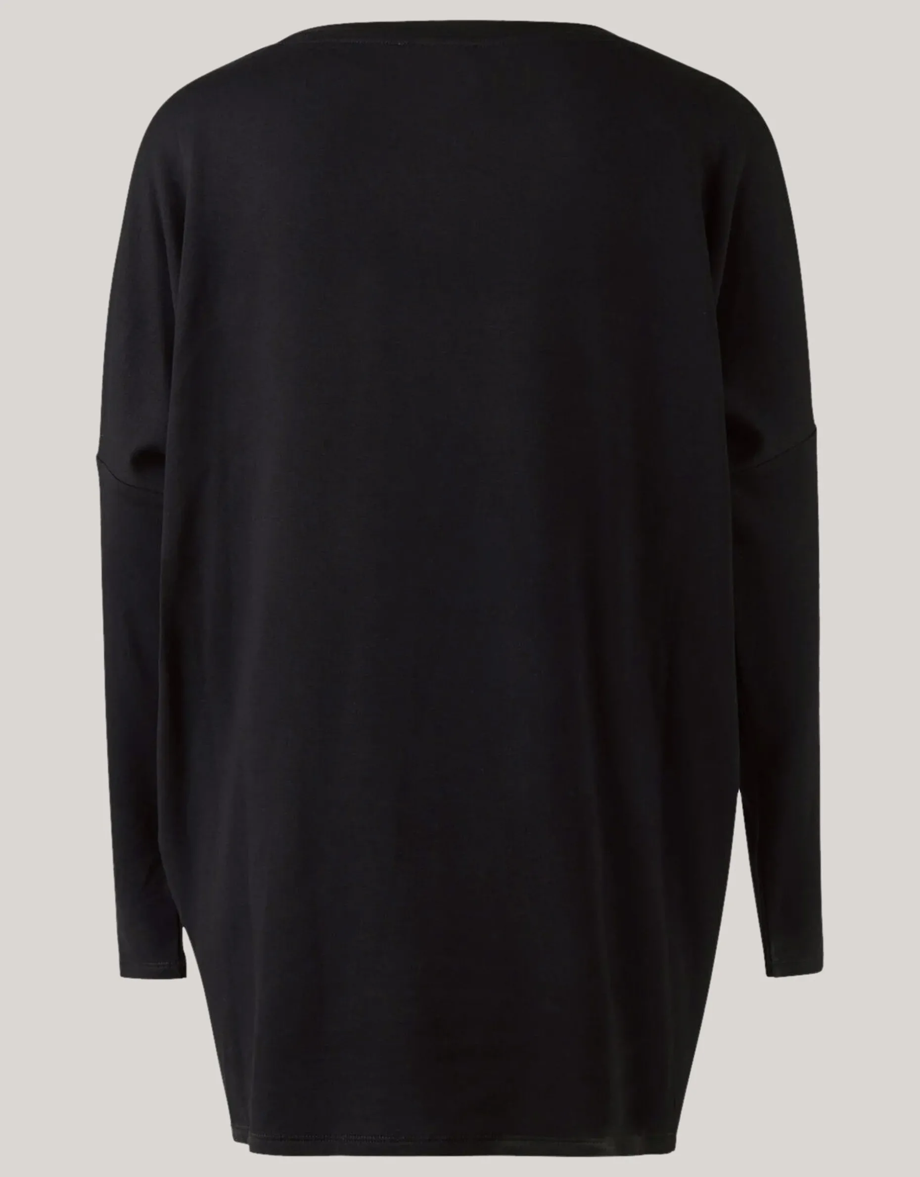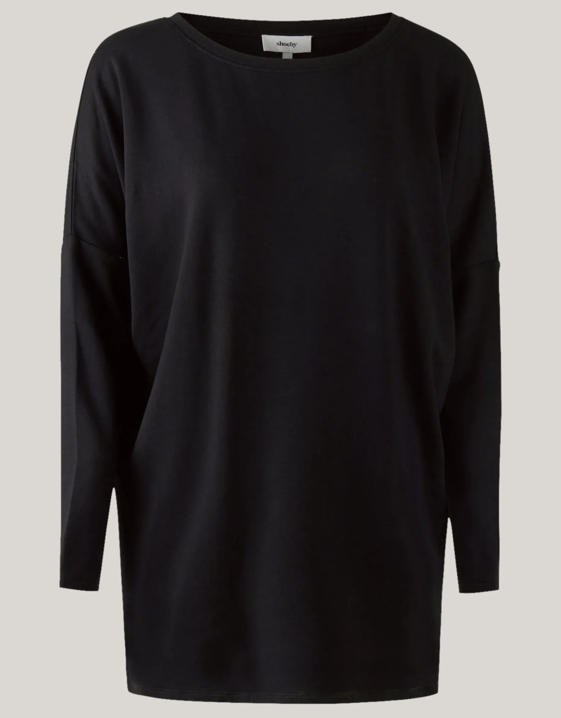 De Basis Oversized Top is de favoriet van elke vrouw. Het item wordt gekenmerkt door de oversized fit, de lange vleermuismouwen en de ronde hals. De zwarte top is easy-to-match en draagt enorm comfortabel door de stretch kwaliteit en de uber zachte stof aan de binnenkant. Combineer de top samen met een coated legging, sneakers en je bent good to go! Het model heeft een lengte van 172 cm en draagt maat S. Het artikel heeft een totale lengte van 82 cm.