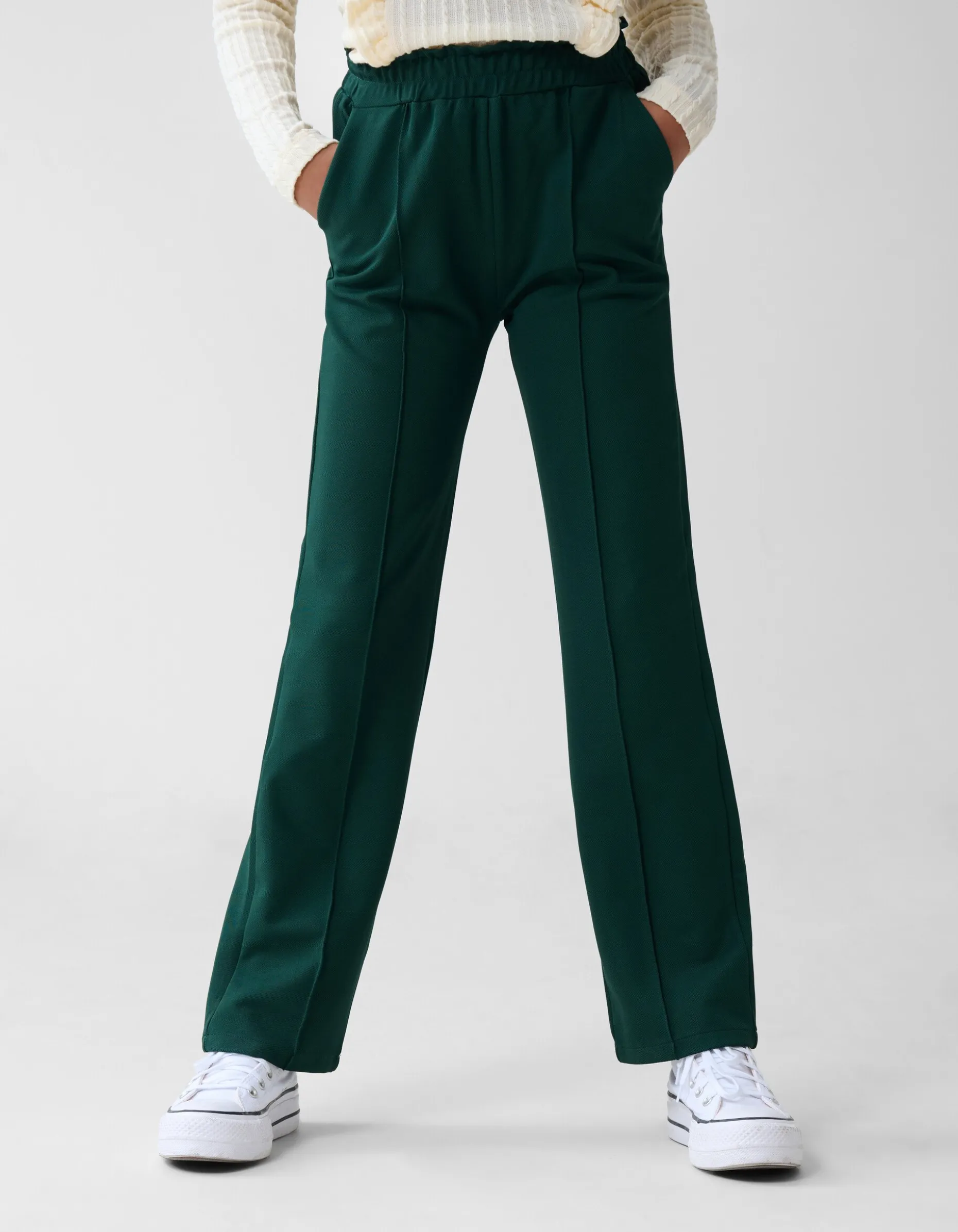 Musthave! De Basis Wide Leg Broek heeft een hoge taille, een non-stretch stof, een uitlopend model, insteekzakken en een elastieke band in de taille. Het item wordt gekenmerkt door de geweven kwaliteit, de donkergroene kleur met een pintuck aan de voorzijde. De broek is gemaakt van polyester en elastaan. Door deze samenstelling is het sterk van kwaliteit en vormvast. Maak de outfit compleet met een colorblock trui en een paar sneakers voor een stijlvolle najaarslook!