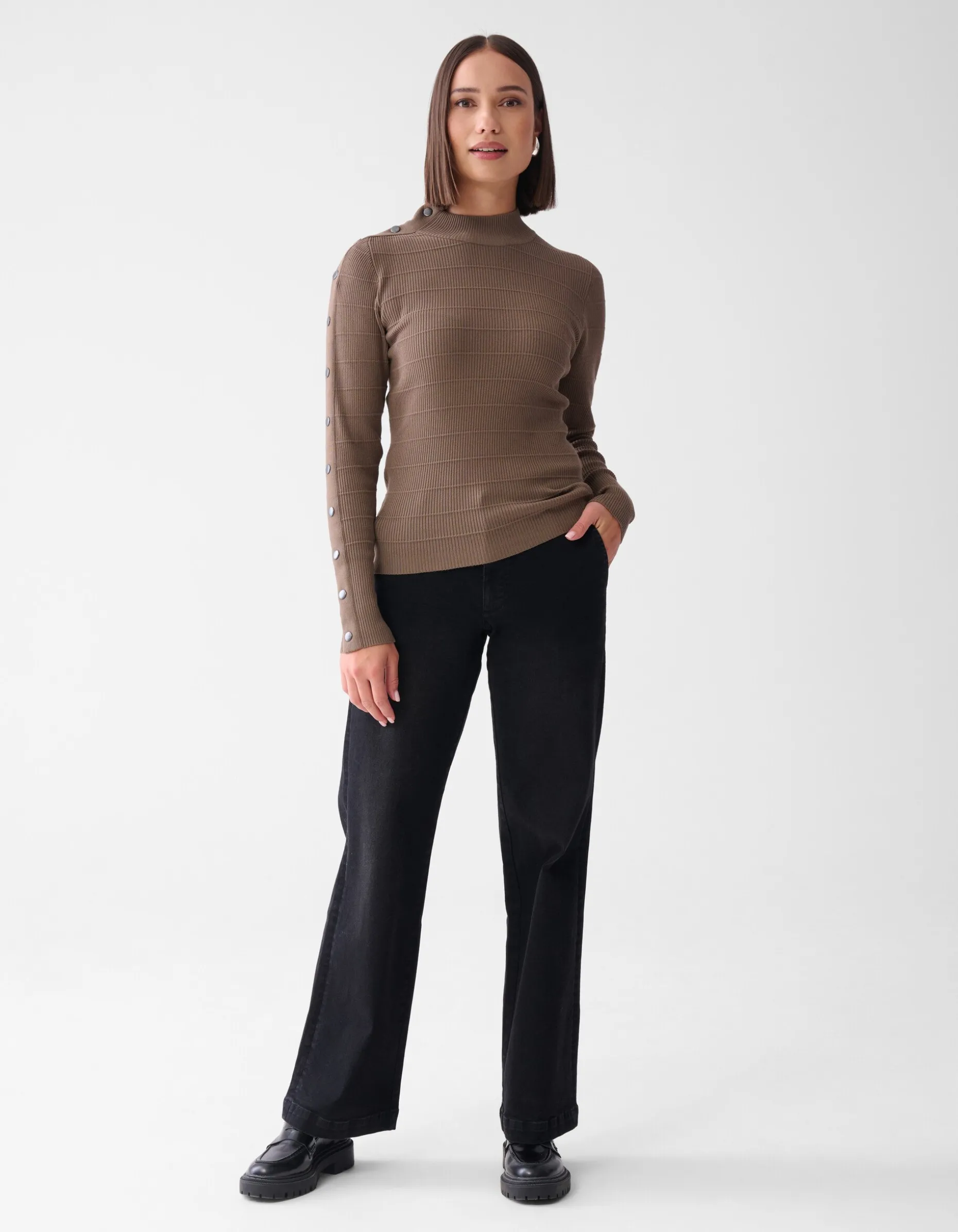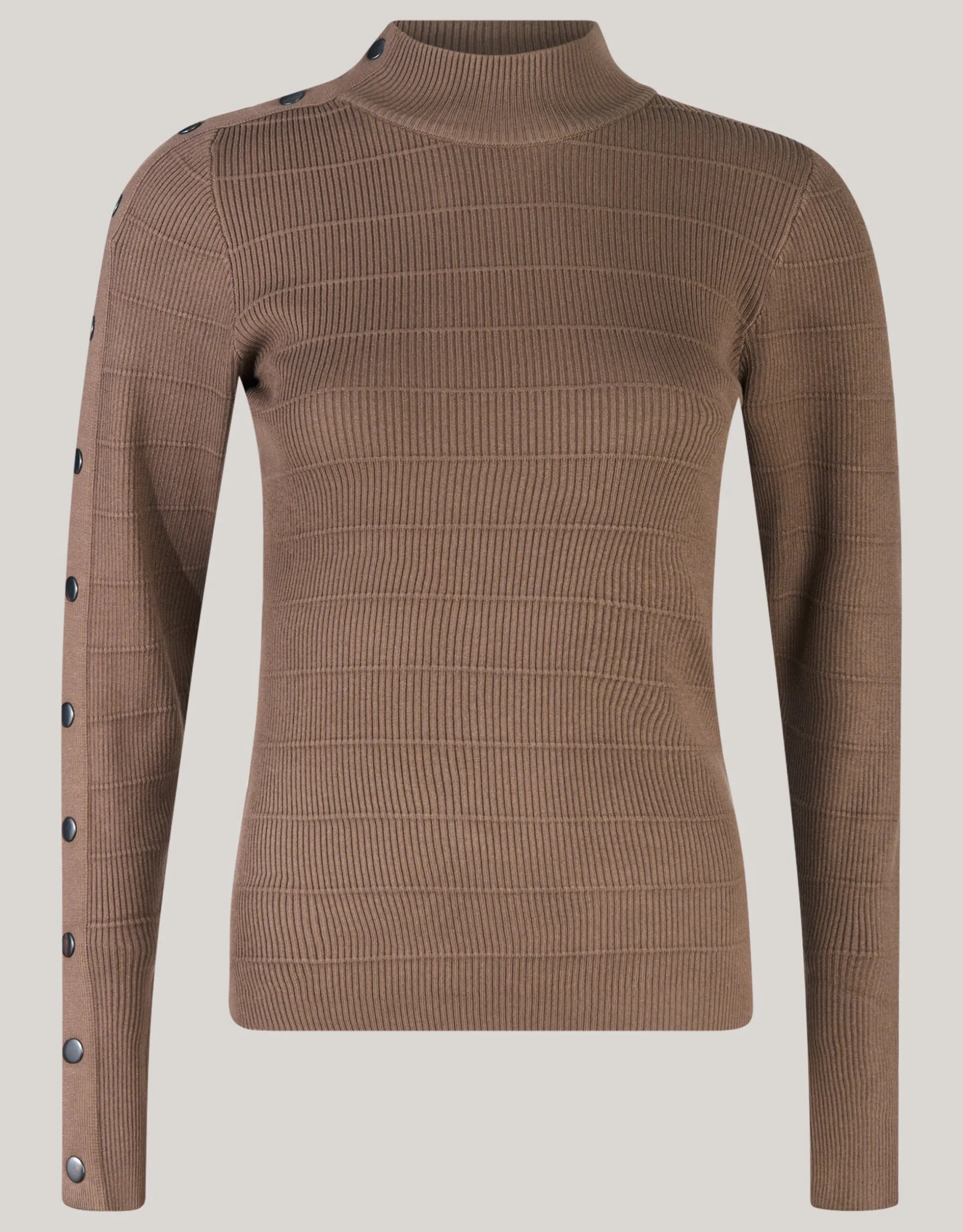 Musthave! De Button Coltrui Donkerbruin heeft een hoge hals, lange mouwen, regular fit en een donkerbruine kleur. Verder wordt de coltrui gekenmerkt door de buttons voor een speels effect! Het item is gemaakt van polyester en polyamide. Deze samenstelling zorgt ervoor dat de trui sterk van kwaliteit, vormvast en kleurvast is. Het item heeft een totale lengte van 59 cm bij een maat S. Combineer de trui met de accessoires van Shoeby voor een complete look!