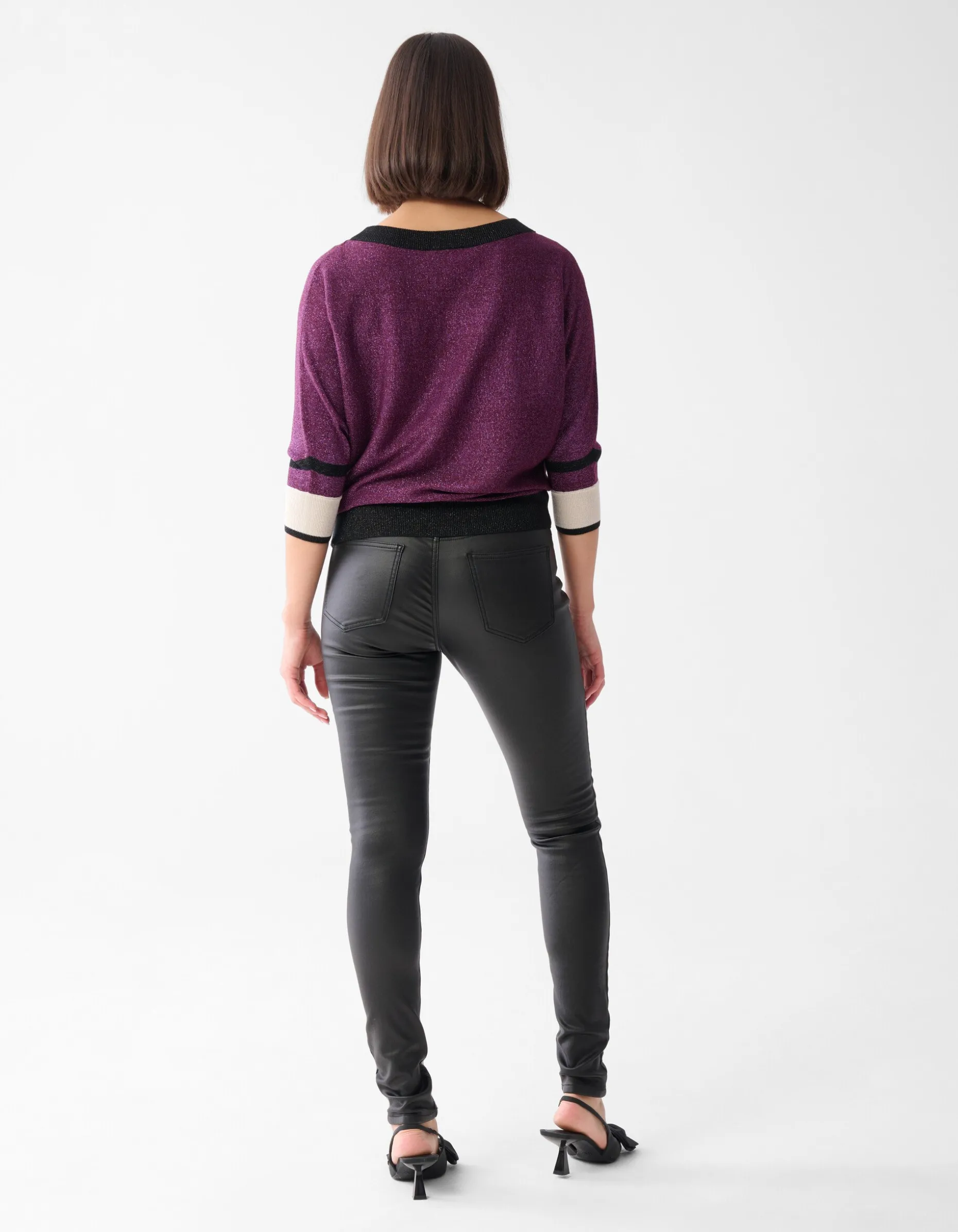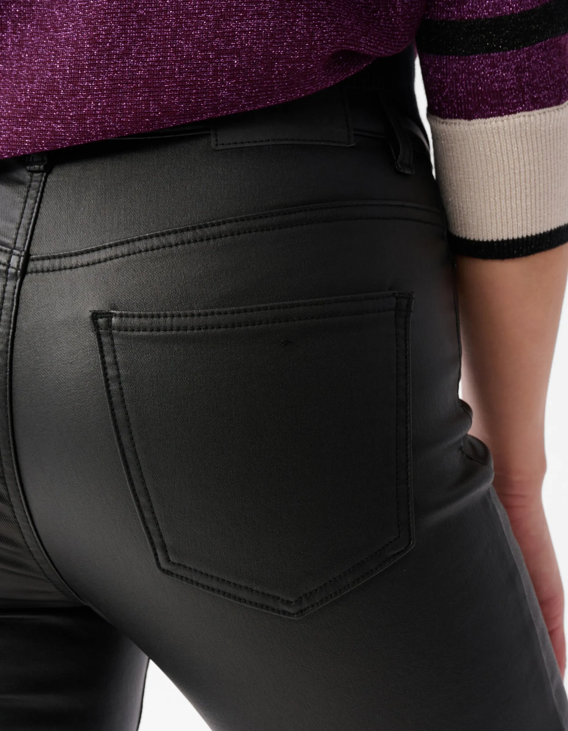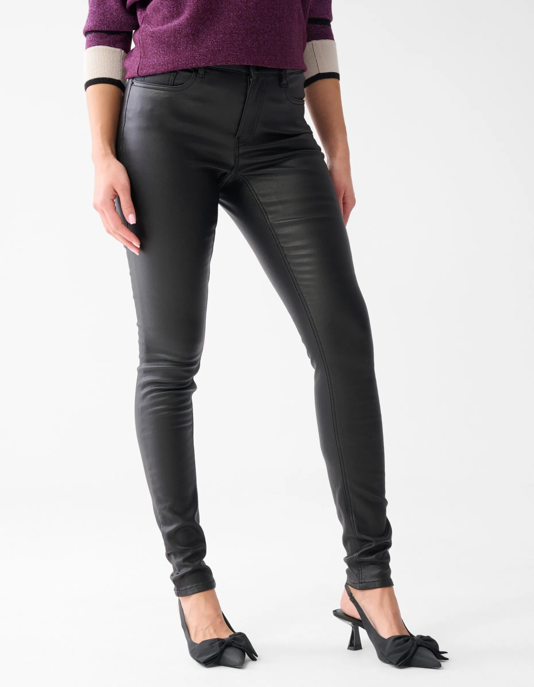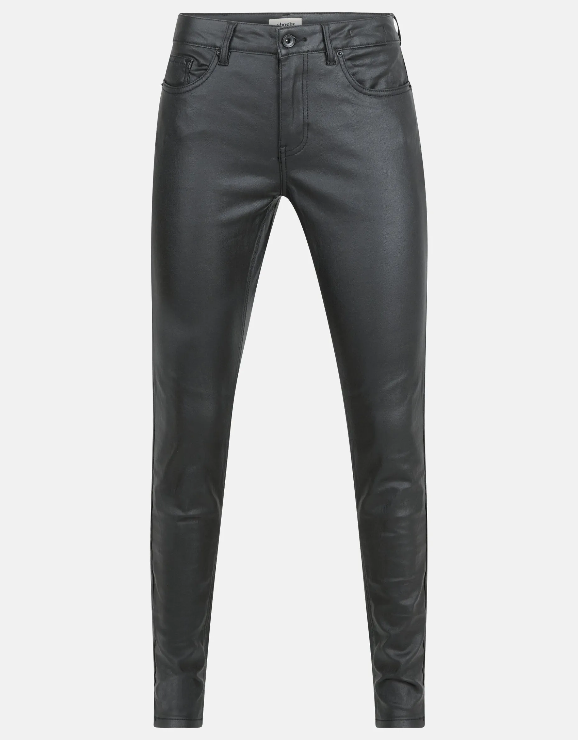 In deze coated broek ga jij gegarandeerd shinen! De broek heeft een aansluitende fit, een stretch stof en een middelhoge taille. Verder wordt het item gekenmerkt door de zwarte basiskleur en de superzachte binnenkant. Dankzij de toffe coating krijgt de broek een glanzende look die aandoet als leer. Deze broek is dan ook heel goed te combineren met biker boots en een biker jack. Casual dragen? Combineer de broek dan met een paar stoere laarzen en een gebreide trui! De broek is gemaakt van viscose, polyamide en elastaan. Door deze samenstelling is het kleurvast, vormvast, sterk van kwaliteit, rekt het subtiel mee en draagt het comfortabel. Het model heeft een lengte van 177 centimeter en draagt maat S. Het artikel heeft een binnenbeenlengte van 83 cm bij een maat S.