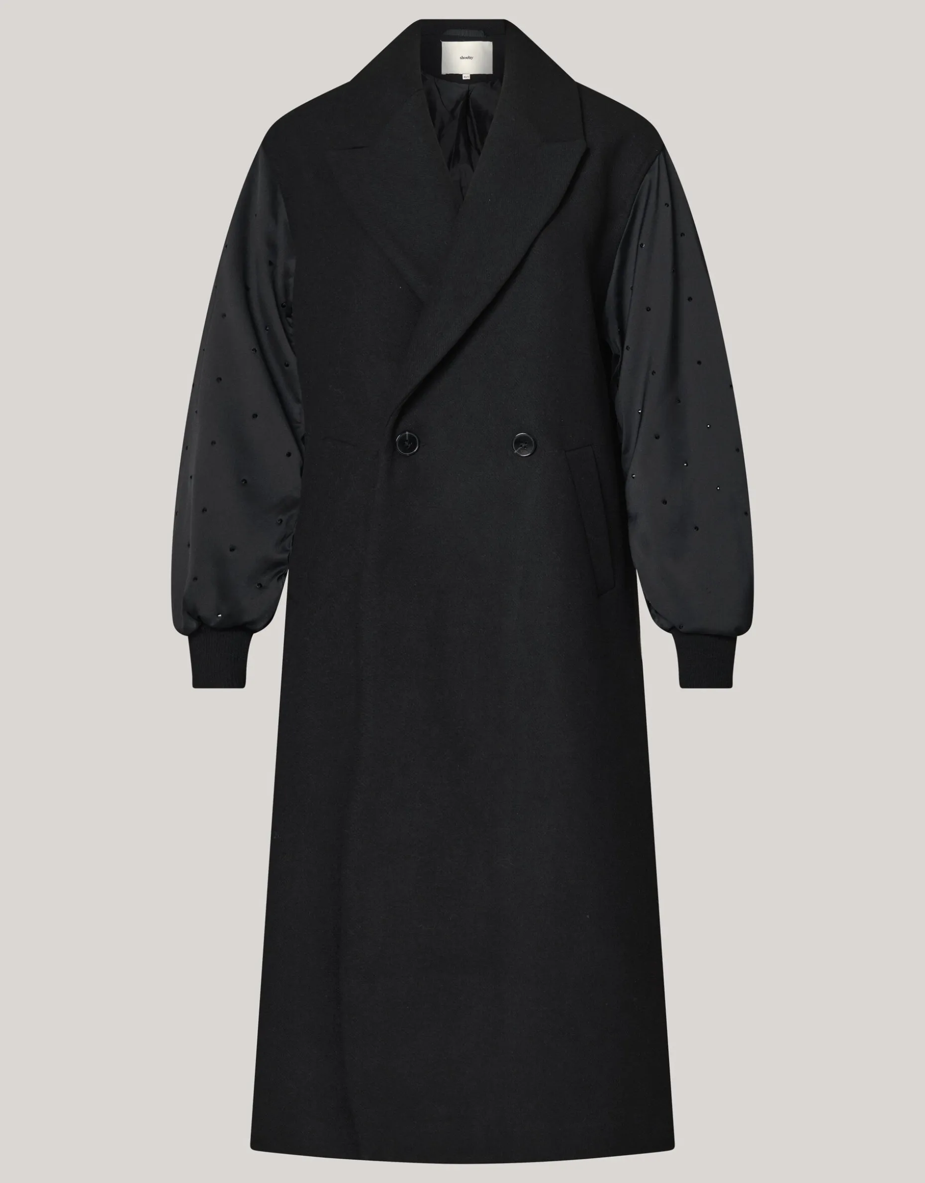 De Combi Bomber Jas Zwart is een must-have voor het winterseizoen. Met een bescheiden stijl in klassiek zwart, effen patronen en dubbele rij knopen, heeft deze lange jas een reverskraag. Verder wordt de jas gekenmerkt door de strass steentjes op de mouwen. Perfect voor semi-formele gelegenheden, combineert het elegantie en warmte moeiteloos. Het model heeft een lengte van 176 cm en draagt een maat XS/S. De jas heeft een totale lengte van 124 cm bij een maat XS/S. Combineer de jas samen met de andere accessores van Shoeby voor een warme en stijlvolle look!