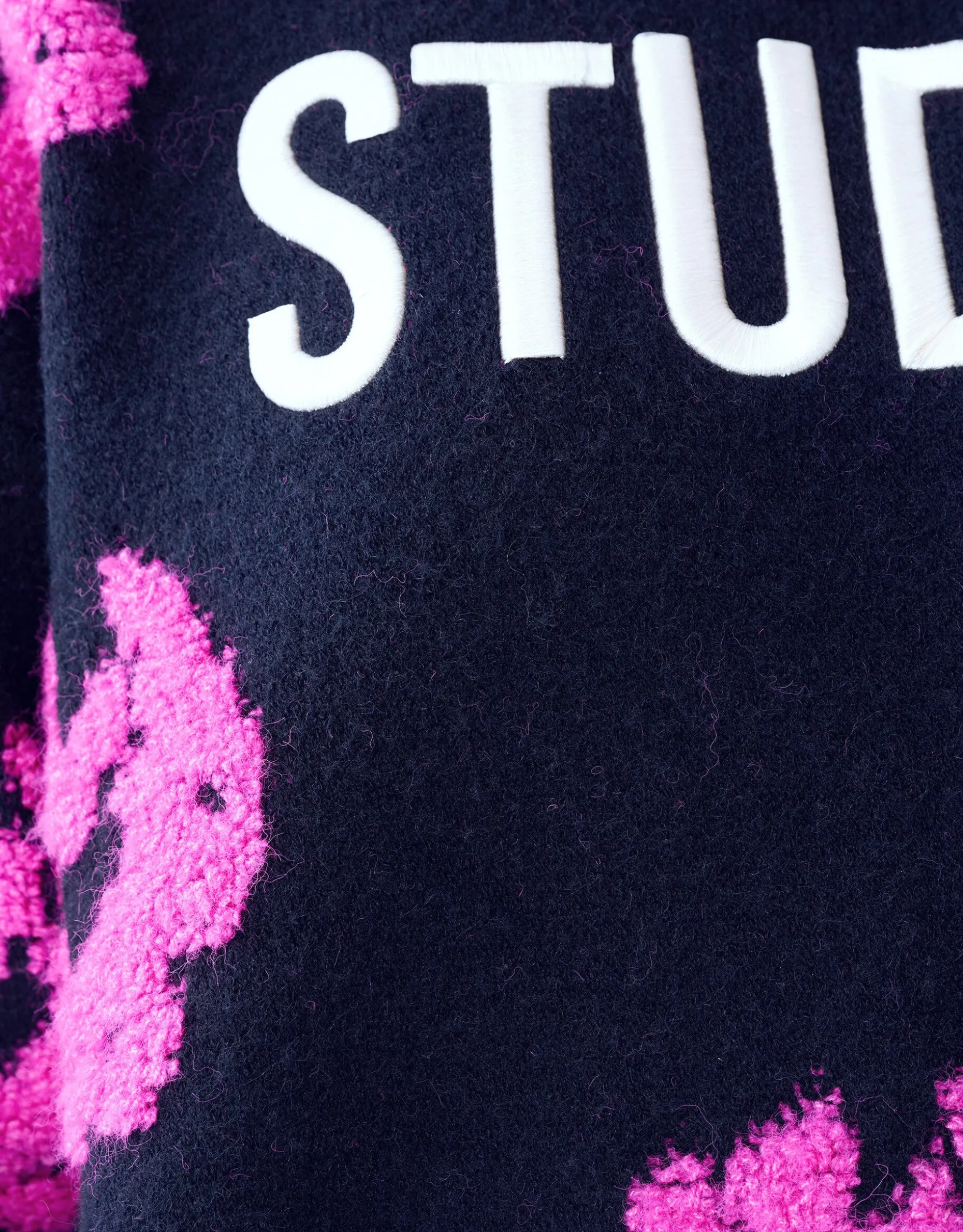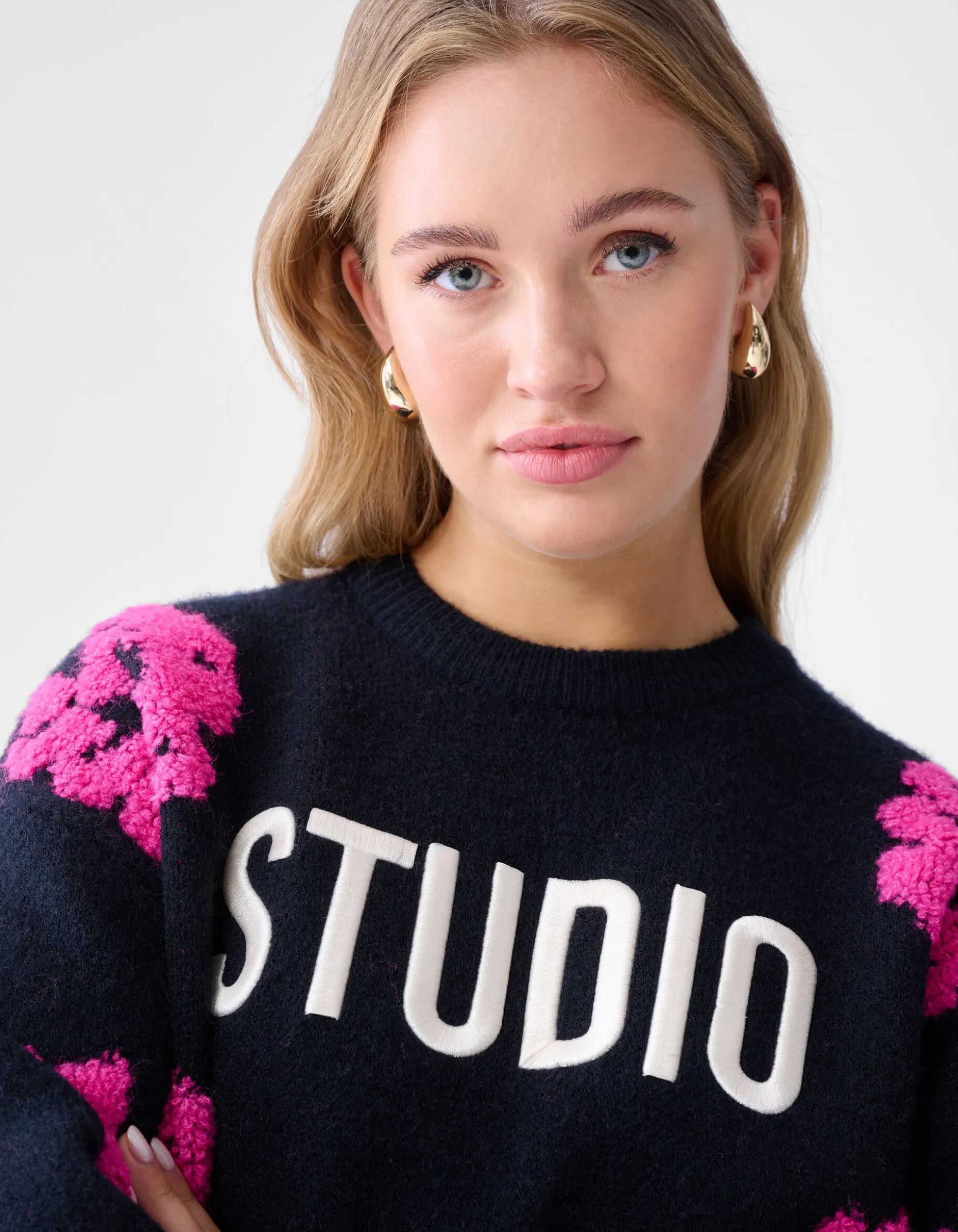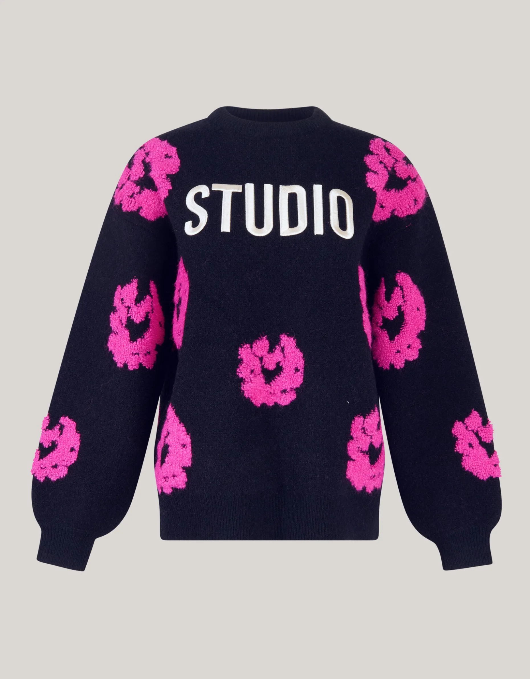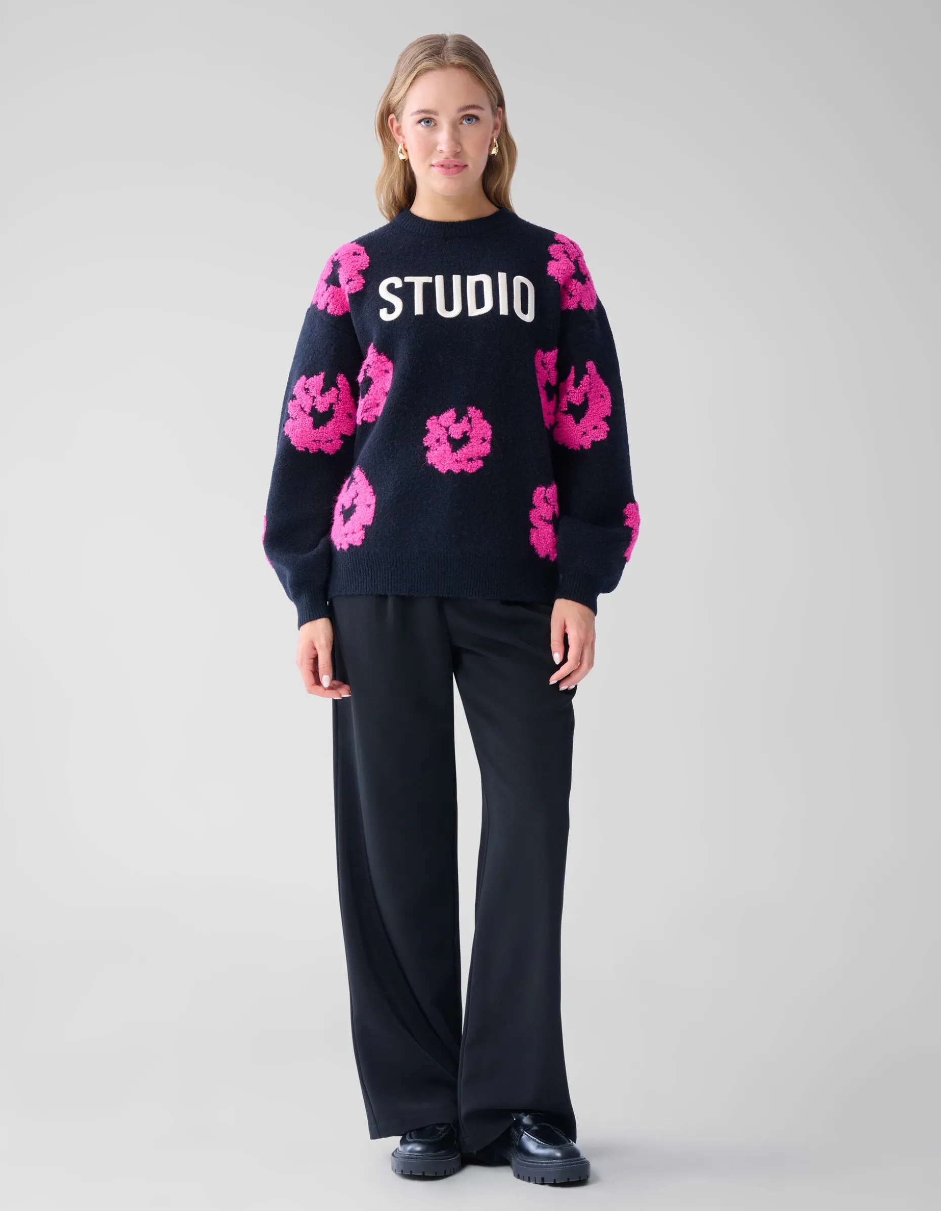 Musthave! De Contrast Trui heeft lange mouwen, een hoge ronde hals, een stretch stof, een grof breisel en een oversized fit. Het item wordt gekenmerkt door de zwarte kleur met een tekstprint en een all over bloemen print in een roze kleur. De trui is met zijn tekstprint en luxe brei een echte musthave voor dit seizoen. Het is gemaakt van polyester, polyamide en acryl. Door deze samenstelling is het sterk van kwaliteit, comfortabel en voelt het even warm als wol aan. Maak de outfit compleet met een rok en een paar killer heels voor een edgy look. Het item heeft een totale lengte van 65,5 cm bij maat XS/S. Het model heeft een totale lengte van 176 cm en draagt maat XS/S. Er wordt geadviseerd om de trui liggend de laten drogen en op het programma wolwas te wassen.