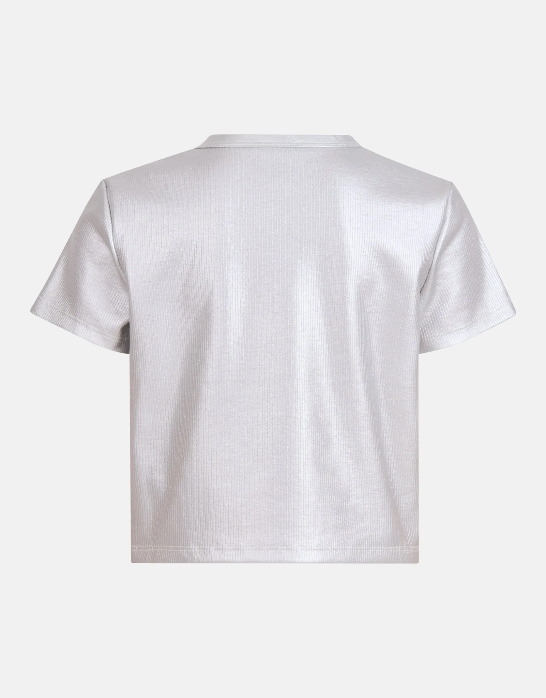 Glitter & glamour! De Cropped Top heeft een korte mouw, een hoge ronde hals, een stretch stof, een kort model en een regular fit. Het item wordt gekenmerkt door de zilveren kleur met een metallic coating. Door de coating krijgt de top een glanzend detail voor een edgy effect. Het is gemaakt van polyester, viscose en elastaan. Door deze samenstelling is het sterk van kwaliteit, vormvast, kleurvast, rekbaar en comfortabel. Draag het stoer met een high waist jeans en een paar sneakers voor een stylish outfit!