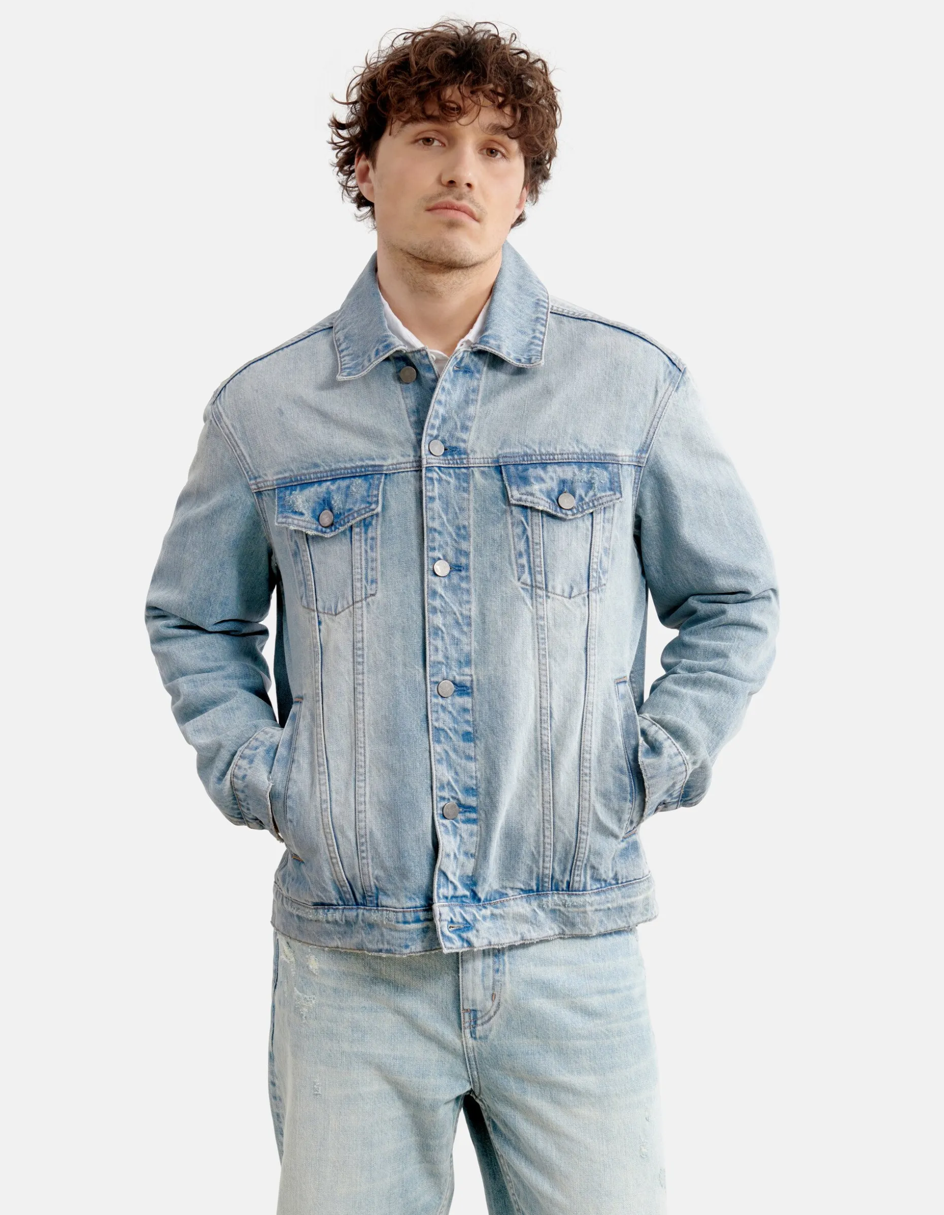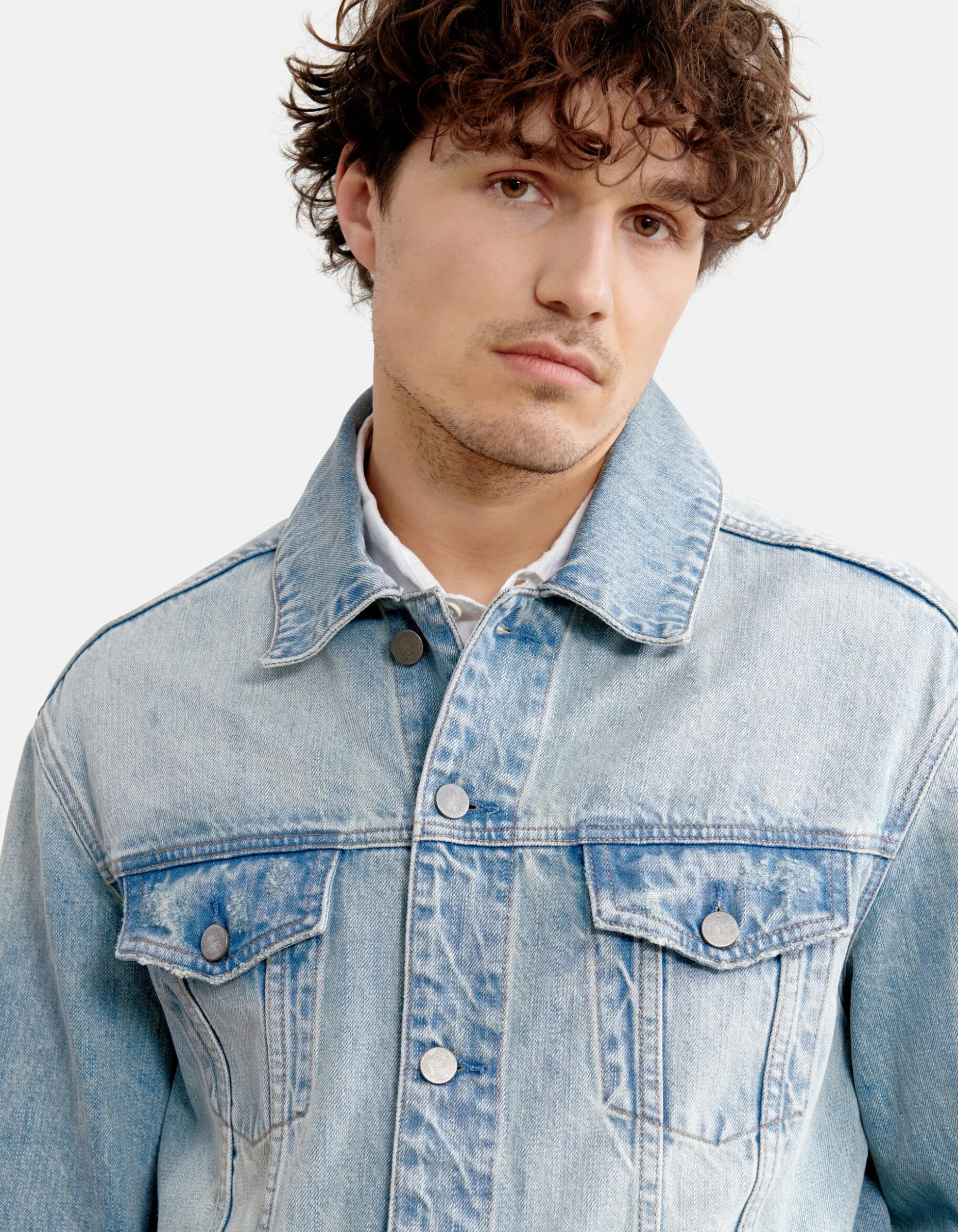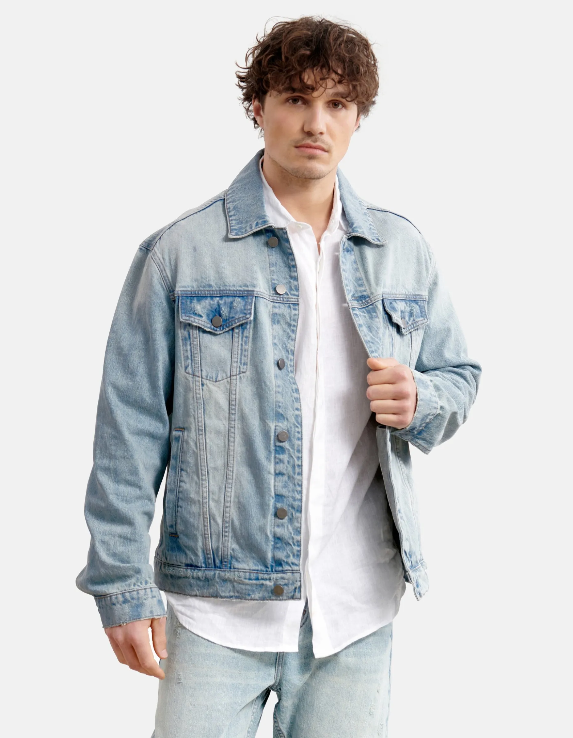 De relaxed fit en lange rechte mouwen zorgen voor comfort, terwijl de zakken op de voorkant, de knoopsluiting en de bleached wassing een stoere uitstraling geven. Het denim jack is gemaakt van 100% katoen, hierdoor draagt het comfortabel en zit er geen stretch in.