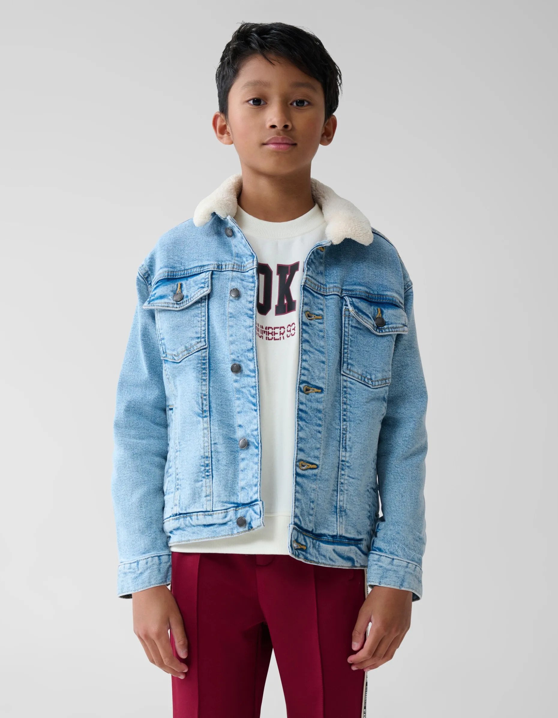 Blijf warm en stijlvol in de Denim Jack Mediumstone. Deze casual mediumstone blauwe denim jack wordt gekenmerkt door de regular fit, lange mouwen en knoopsluiting. De kraag van het jack heeft een vachtje, waardoor hij lekker warm om de nek zit. Combineer met een sportieve broek en een leuke sweater voor een trendy look.