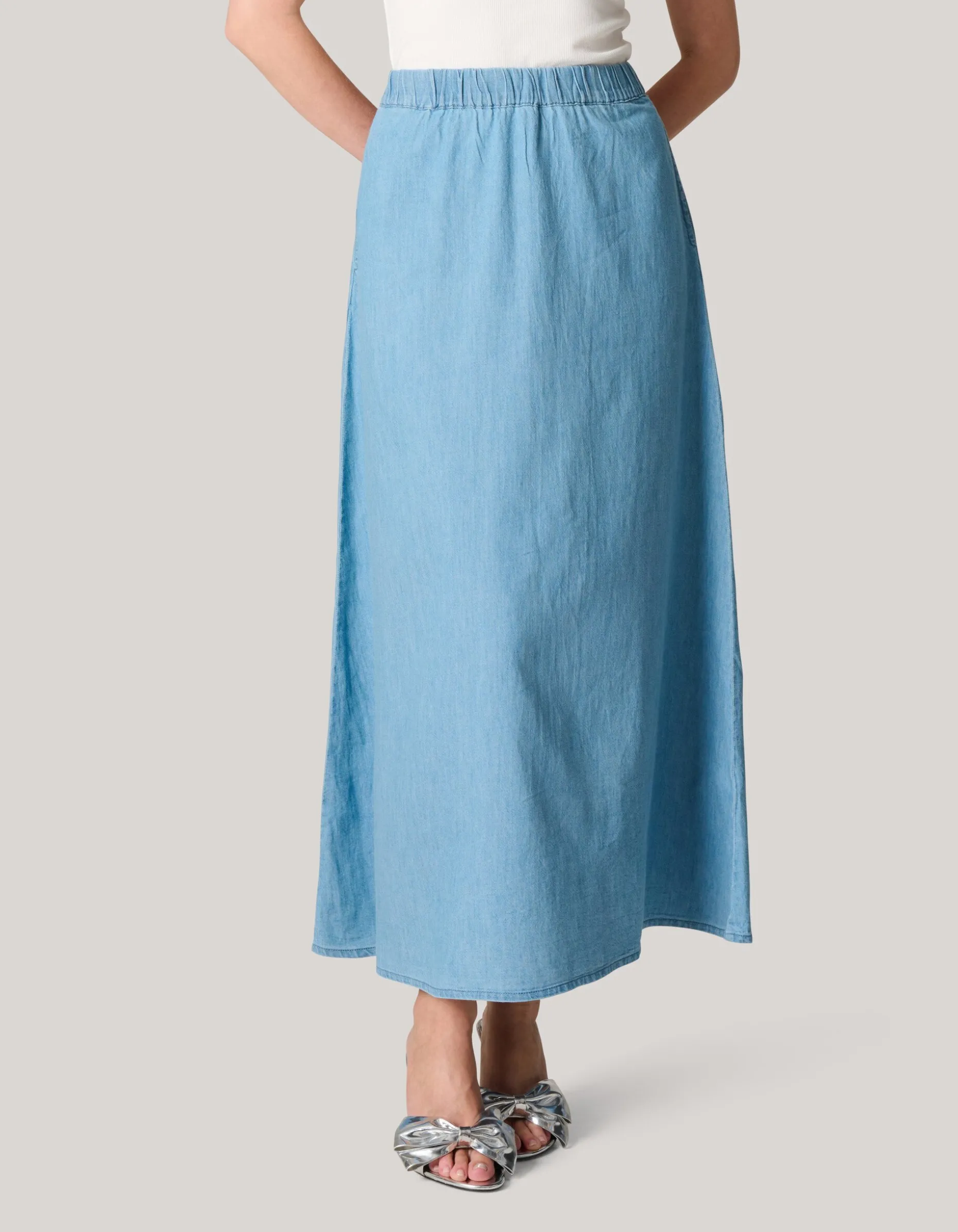 Effortlessly chic! De Denim Maxi Rok heeft een hoge taille, een uitlopende fit, een maxi-lengte en een non-stretch stof. Het item wordt gekenmerkt door de blauwe denim kleur. Verder is de rok gemaakt van 100% katoen. Door deze samenstelling is het vormvast, kleurvast en draagt het comfortabel.