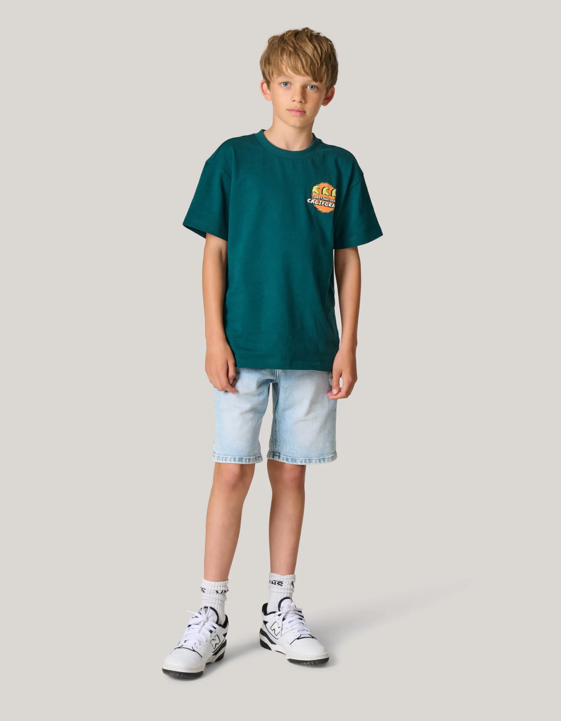 Denim kind of days! De Denim Short heeft een middelhoge taille, een 5-pocket model, een regular fit, een elastieke band in de taille en een knoop-en ritssluiting. Het item wordt gekenmerkt door de lichtblauwe kleur met een bleached wassing. Een leuk detail zijn de gele stiksels voor een perfecte finishing touch. Verder heeft het shortje destroyed details voor een stoer effect! Rol de broekspijpen op voor een sportieve look. Maak de look compleet met een oversized t-shirt en sneakers en je bent ready to go!