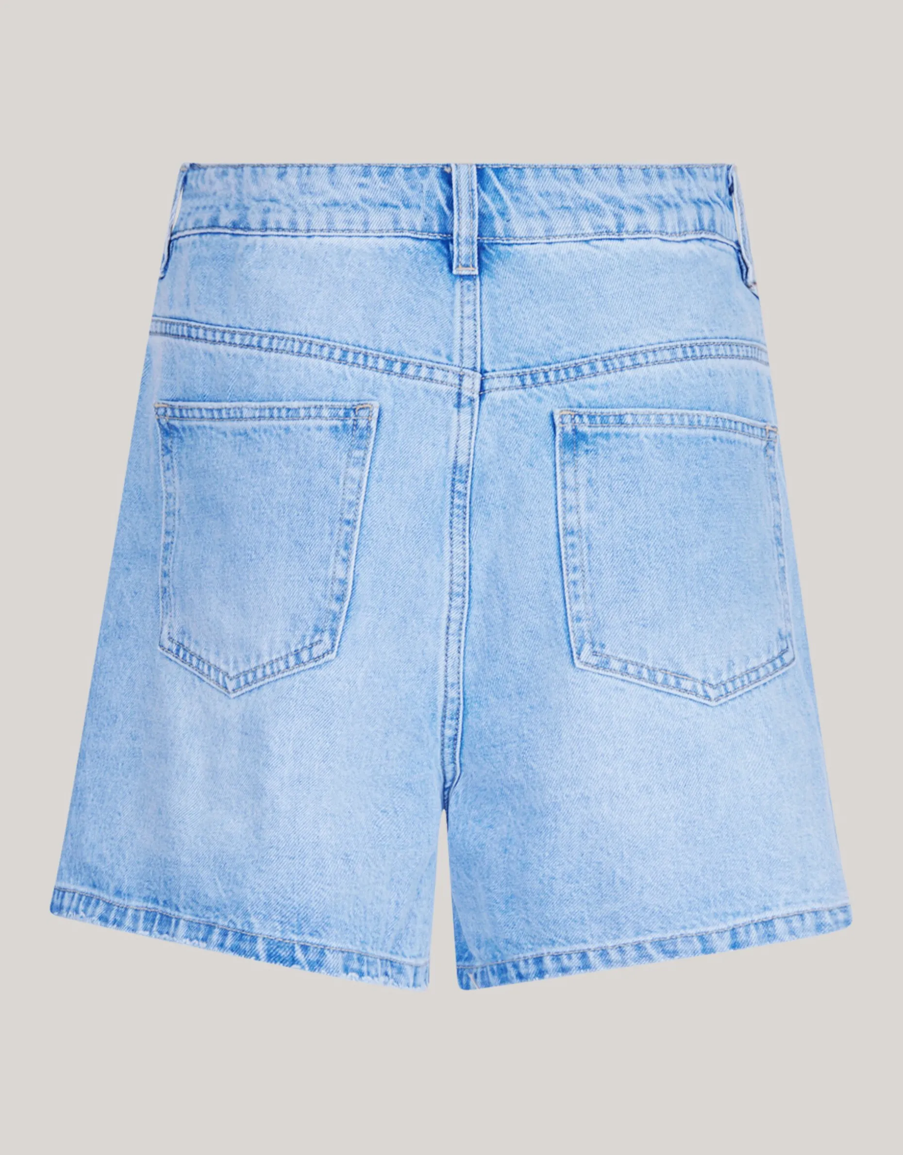 Musthave! De Denim Short heeft een hoge taille, een korte broekspijp, een knoop- en ritssluiting en een 5-pocket model. Het item wordt gekenmerkt door de bleached blauwe kleur. Verder is het shortje is gemaakt van 100% katoen. Hierdoor draagt het comfortabel. Het artikel heeft een binnenbeenlengte van 24,5 bij maat S en het model heeft een lengte van 177 cm en draagt maat S.