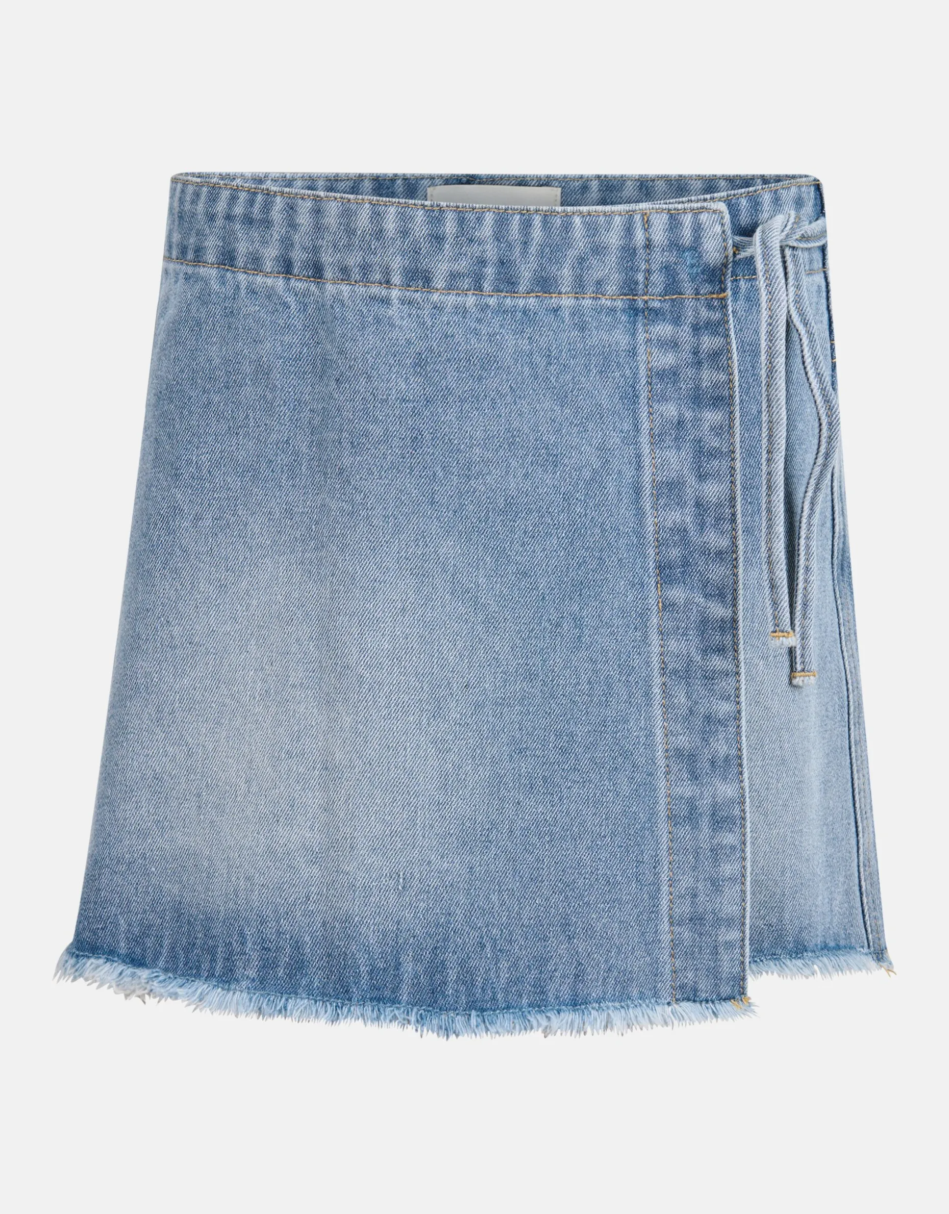 Musthave! Hoe fijn is het om een rokje in de vorm van een shortje te hebben. Deze Denim Wrap Skort is hier perfect voor. De skort heeft een hoge taille, een korte broekspijp, een uitlopende model en een aansnoerkoord. Het item wordt gekenmerkt door de blauwe denim kleur met een bleached wassing. Een leuk detail is het gerafel aan de onderzijde, waardoor het een stoerder effect krijgt. Combineer het samen met een top of een basis t-shirt voor een zomerse look!