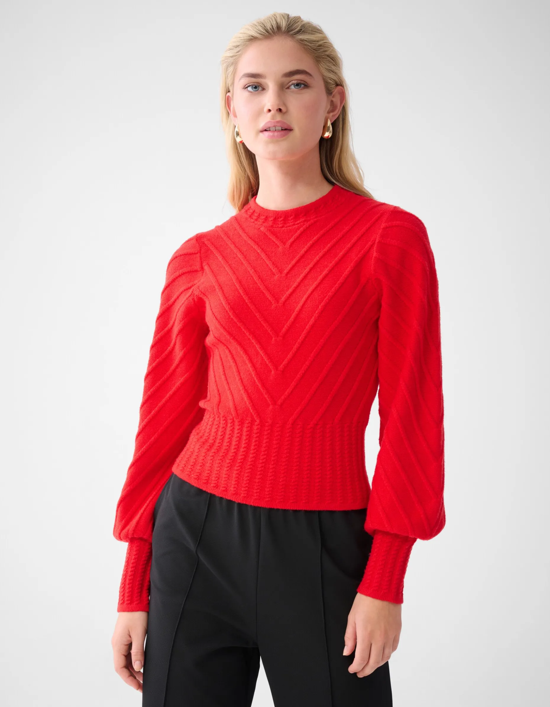 De Diagonaal Trui Rood is een echte musthave! De trui heeft een ronde hals, lange mouwen, regular fit en een non-stretch stof. Verder wordt de trui gekenmerkt door de rode kleur en de diagonalen strepen als extra detail! De trui is gemaakt van viscose, polyamide en polyester. Deze samenstelling zorgt ervoor dat de trui sterk van kwaliteit, vorm- en kleurvast is. Het model heeft een lengte van 176 cm en draagt een maat S. De trui heeft een totale lengte van 52 cm bij een maat S. Draag de sweater samen met je favoriete broek van Shoeby voor een casual look!