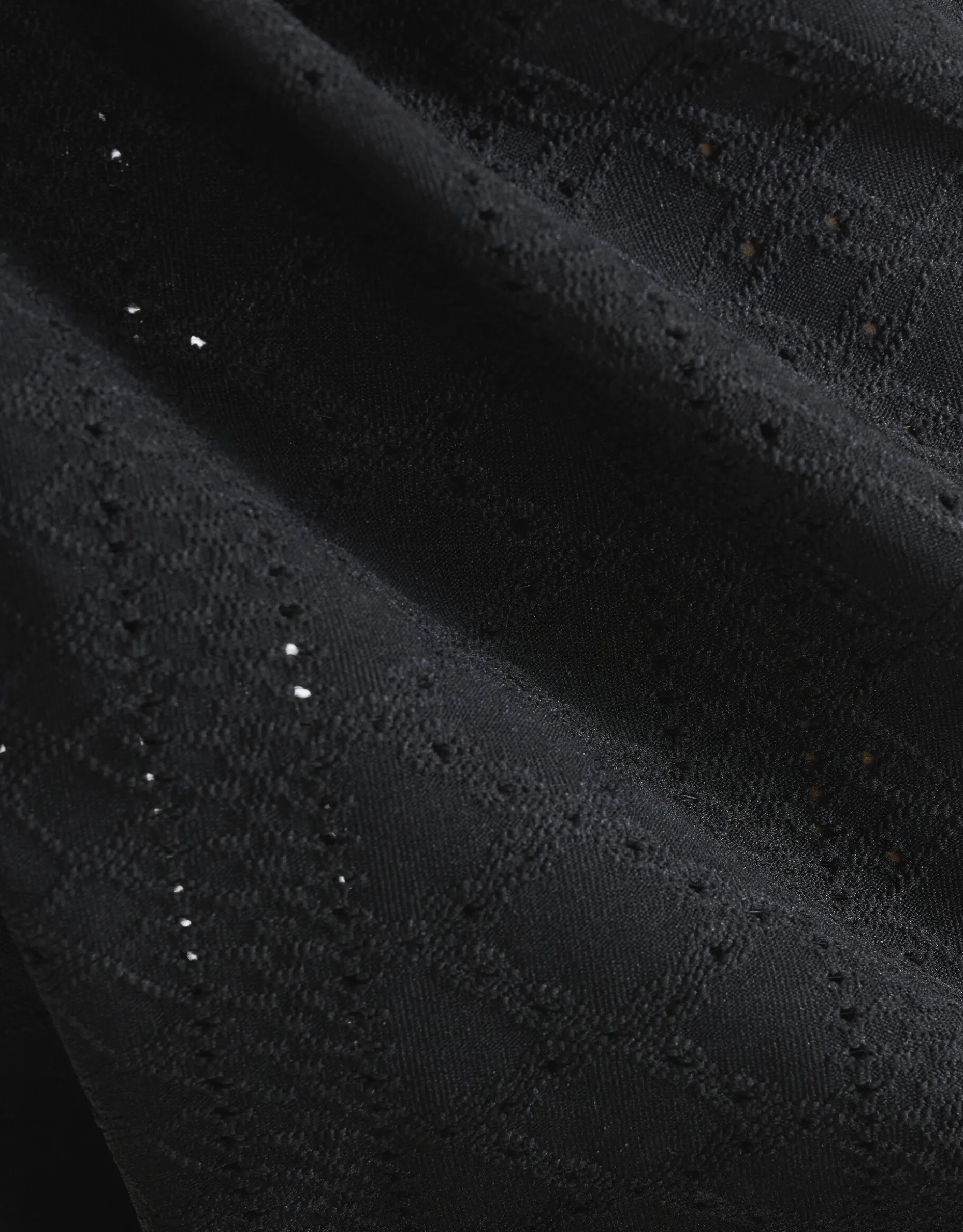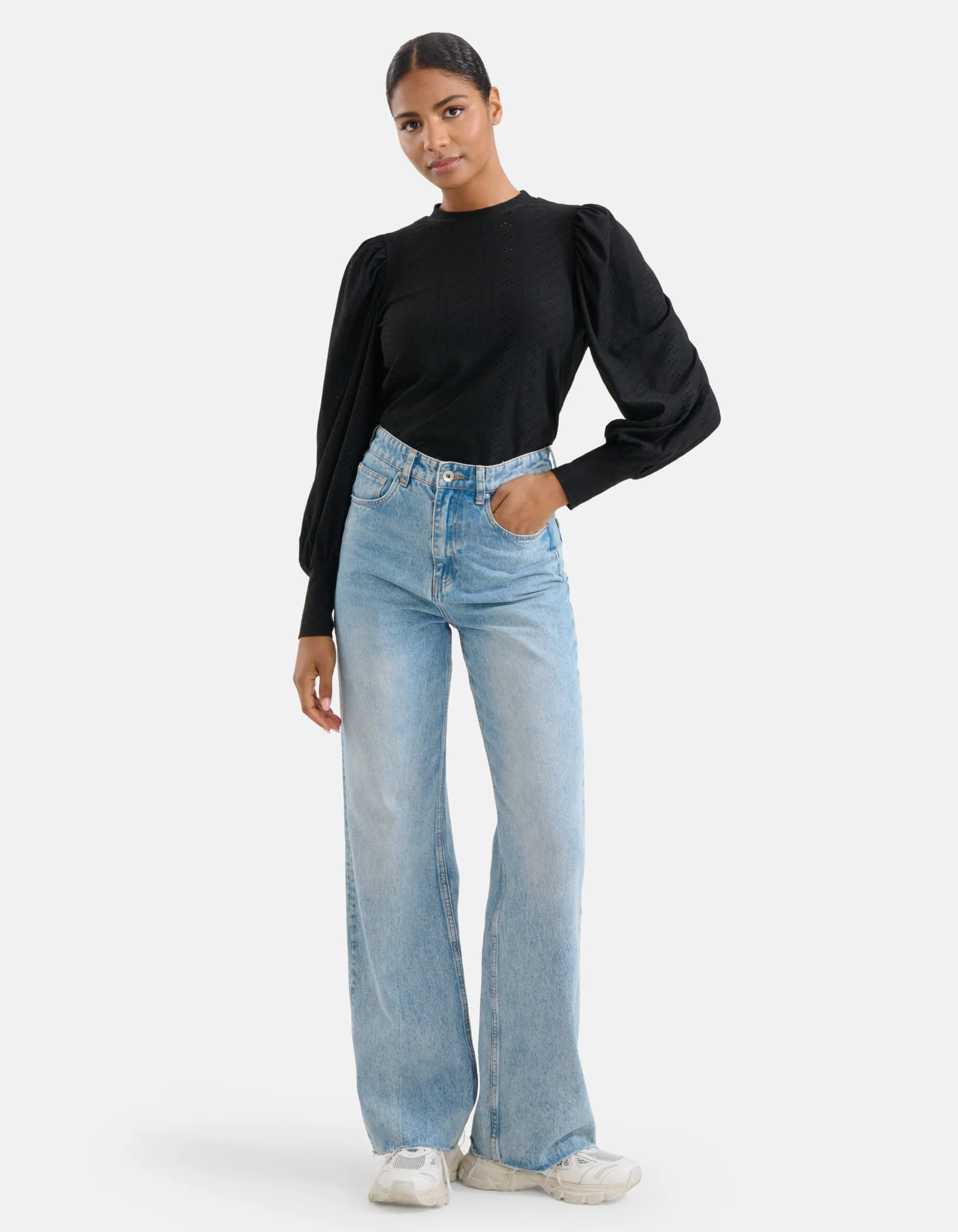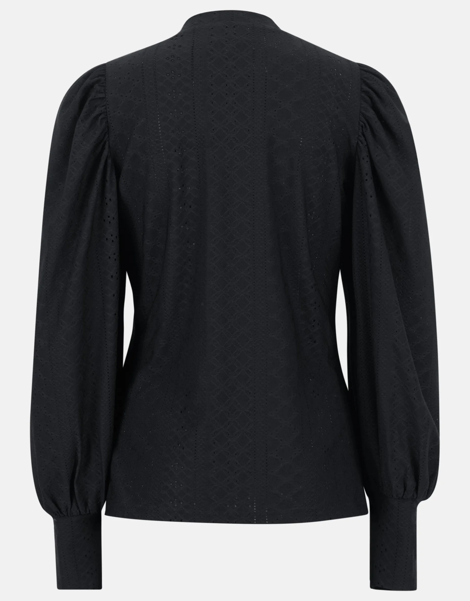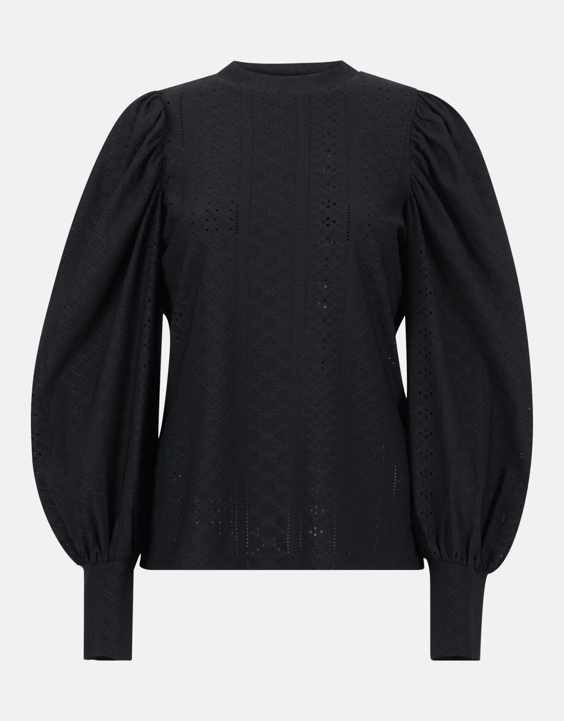 Ontdek de Embroidery Longsleeve Jersey Top Zwart. Stijvol, comfortabel en tijdloos. Met een chique uitstraling, hoge halslijn en pofmouwen is deze zwarte top perfect voor elke gelegenheid. Een echte musthave voor iedereen. De top is gemaakt van polyamide en elastaan. Door deze samenstelling is het sterk van kwaliteit, vormvast, rekbaar en comfortabel. Draag het samen met een stoere jeans en een paar sneakers en je bent good to go.