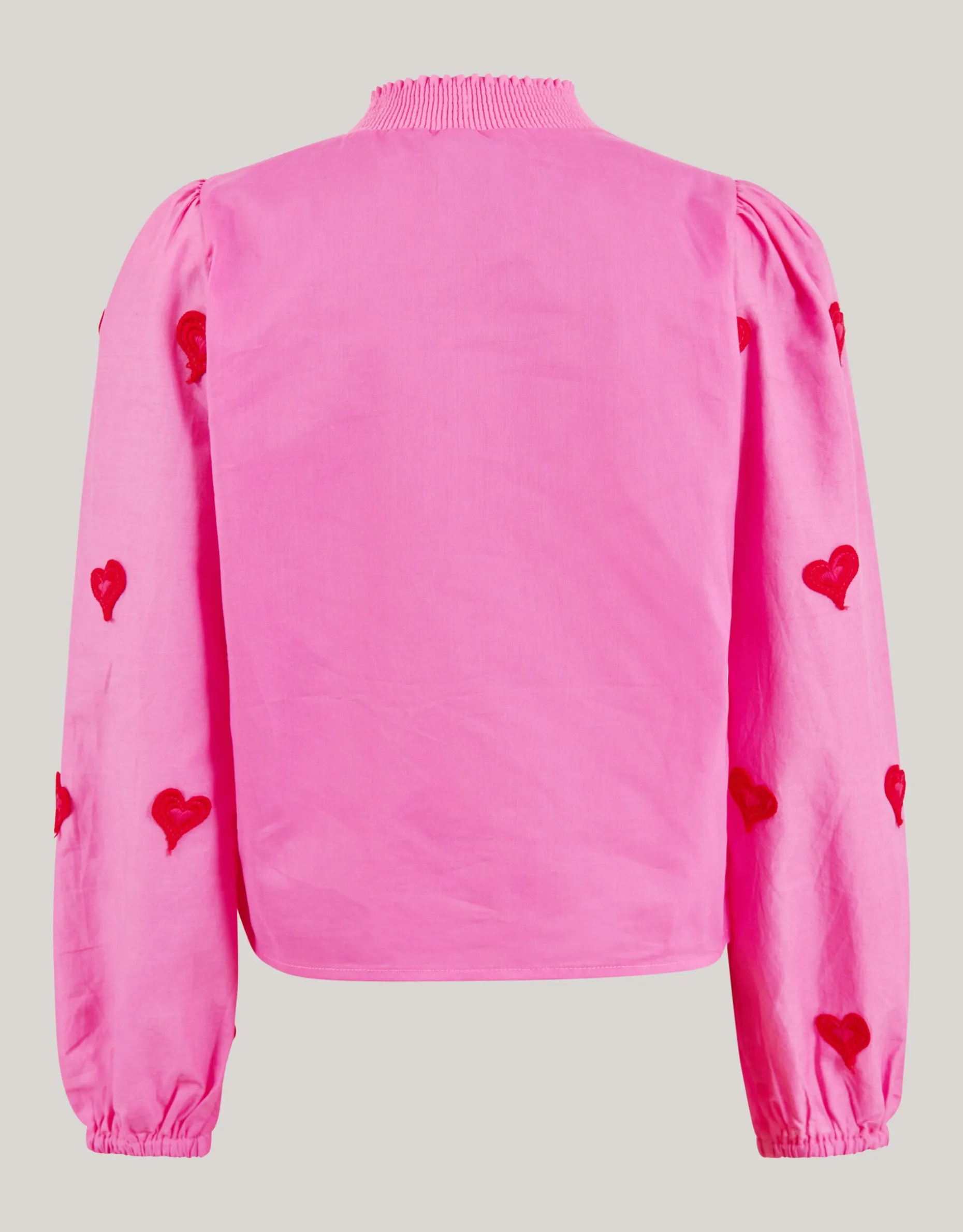 Musthave! De Embroidery Longsleeve Roze is het perfecte item voor een casual gelegenheid. Een leuk detail zijn de hartjes op de lange mouwen van de top. De top is gemaakt van katoen en elastaan, hierdoor draagt de top comfortabel en stretchy. Verder heeft de top een hoge kraag en een regular fit. Combineer deze top met je favoriete jeans van Shoeby voor een complete look!