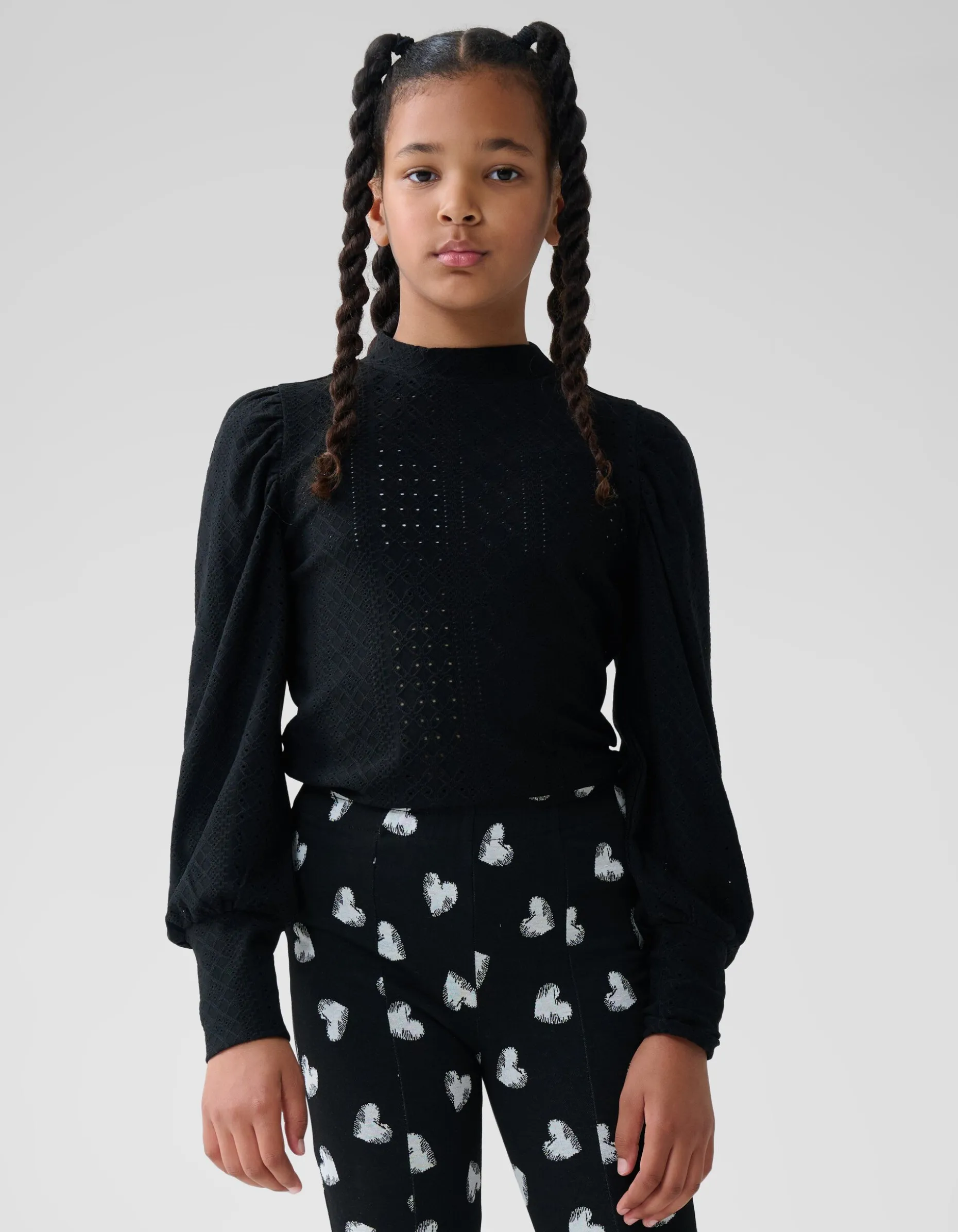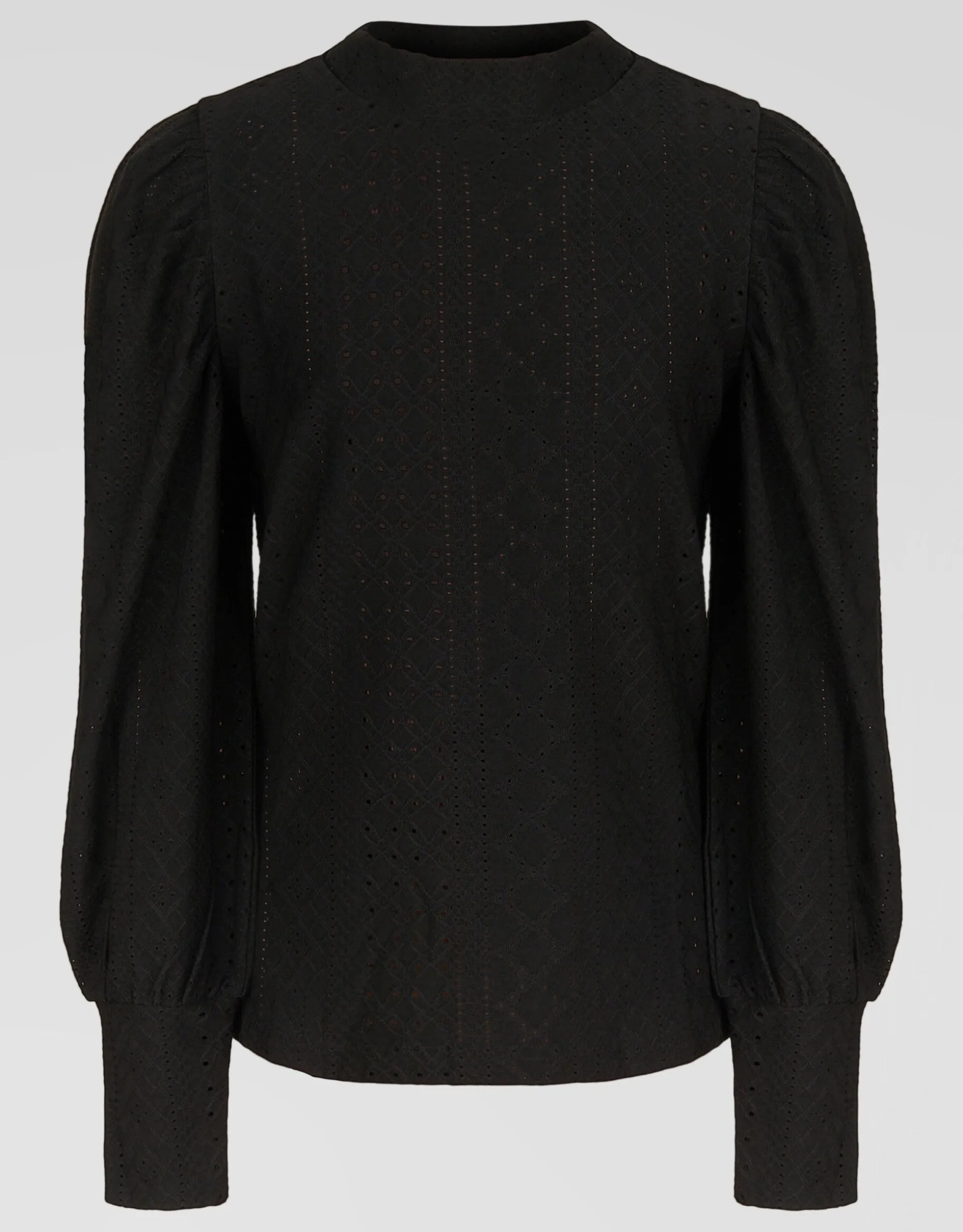 Back to black! De Embroidery Top heeft lange mouwen, een hoge ronde hals, een stretch stof en een regular fit. Het item wordt gekenmerkt door de zwarte kleur met een all-over embroidery details. Verder is de top deels transparant en vallen de mouwen wat wijder uit voor een speelser effect. De top is gemaakt van polyester en elastaan, waardoor het item sterk van kwaliteit is, elastisch en vormvast blijft. Combineer het samen met een rok of jeans en een paar stoere boots en je bent good to go!