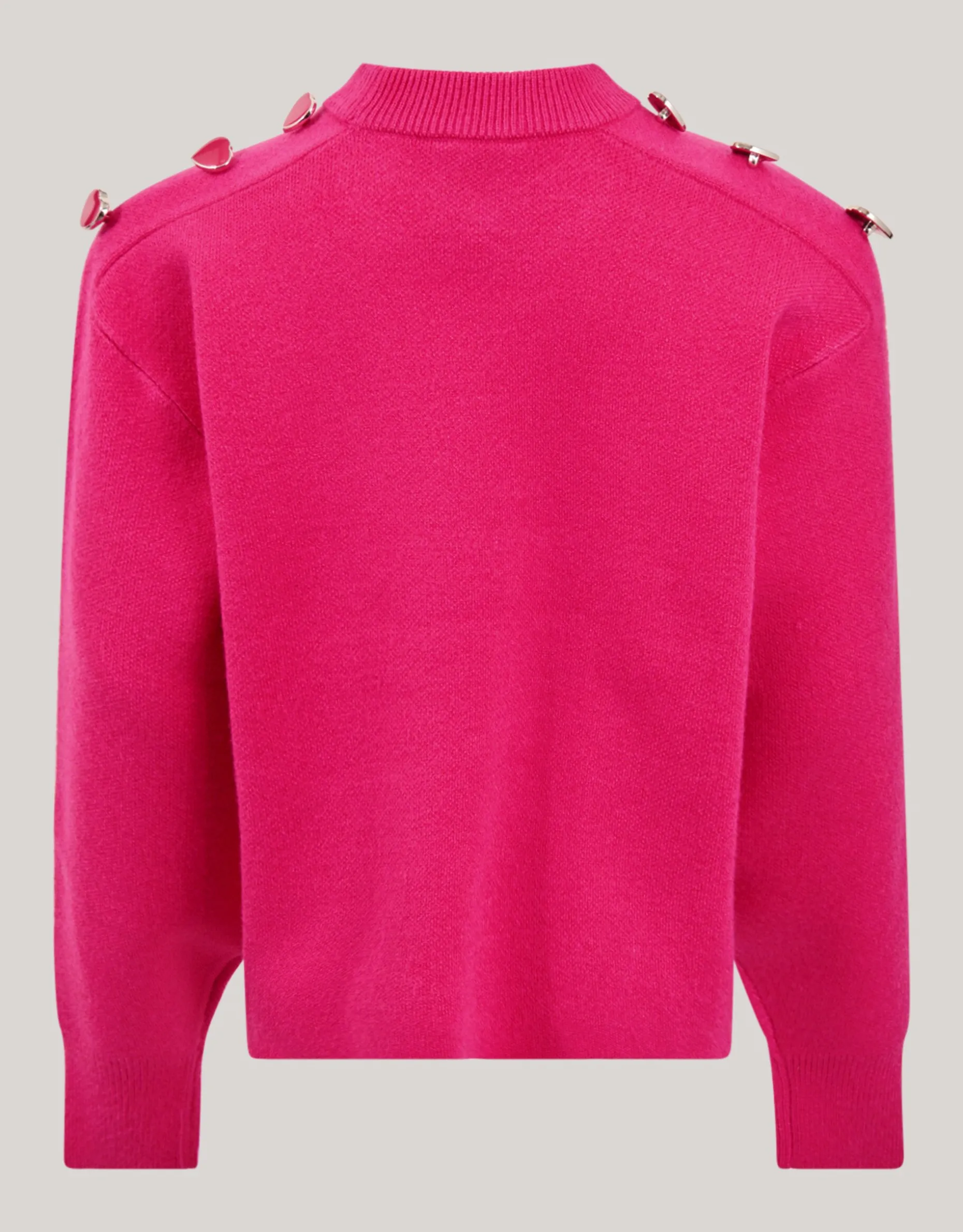 Ontdek de Fancy Botton Trui Roze! De trui heeft een hoge ronde hals, roze kleur, relaxed fit en lange mouwen. Verder wordt de trui gekenmerkt door de hart details op de beide schouders. De trui is gemaakt van viscose, polyester en polyamide. Deze samenstelling zorgt ervoor dat de trui sterk van kwaliteit, kleur- en vormvast is. Perfect voor avontuurlijke dagen vol plezier en spel. Draag de trui samen met je favoriete jeans van Shoeby voor een stijlvolle look!