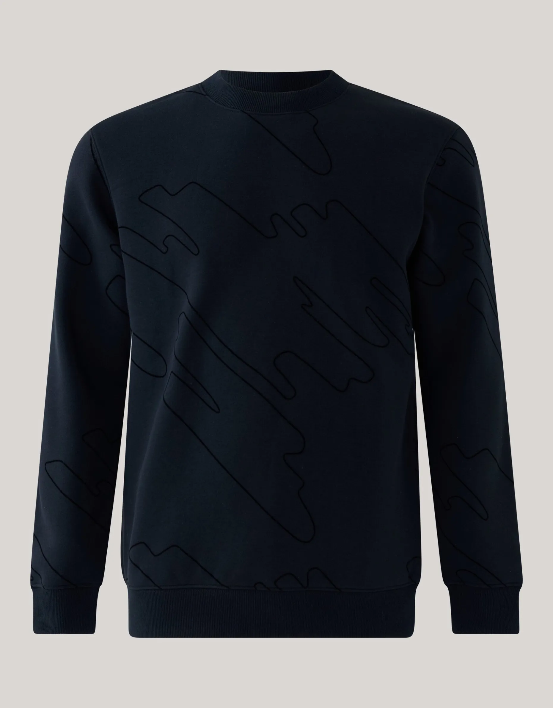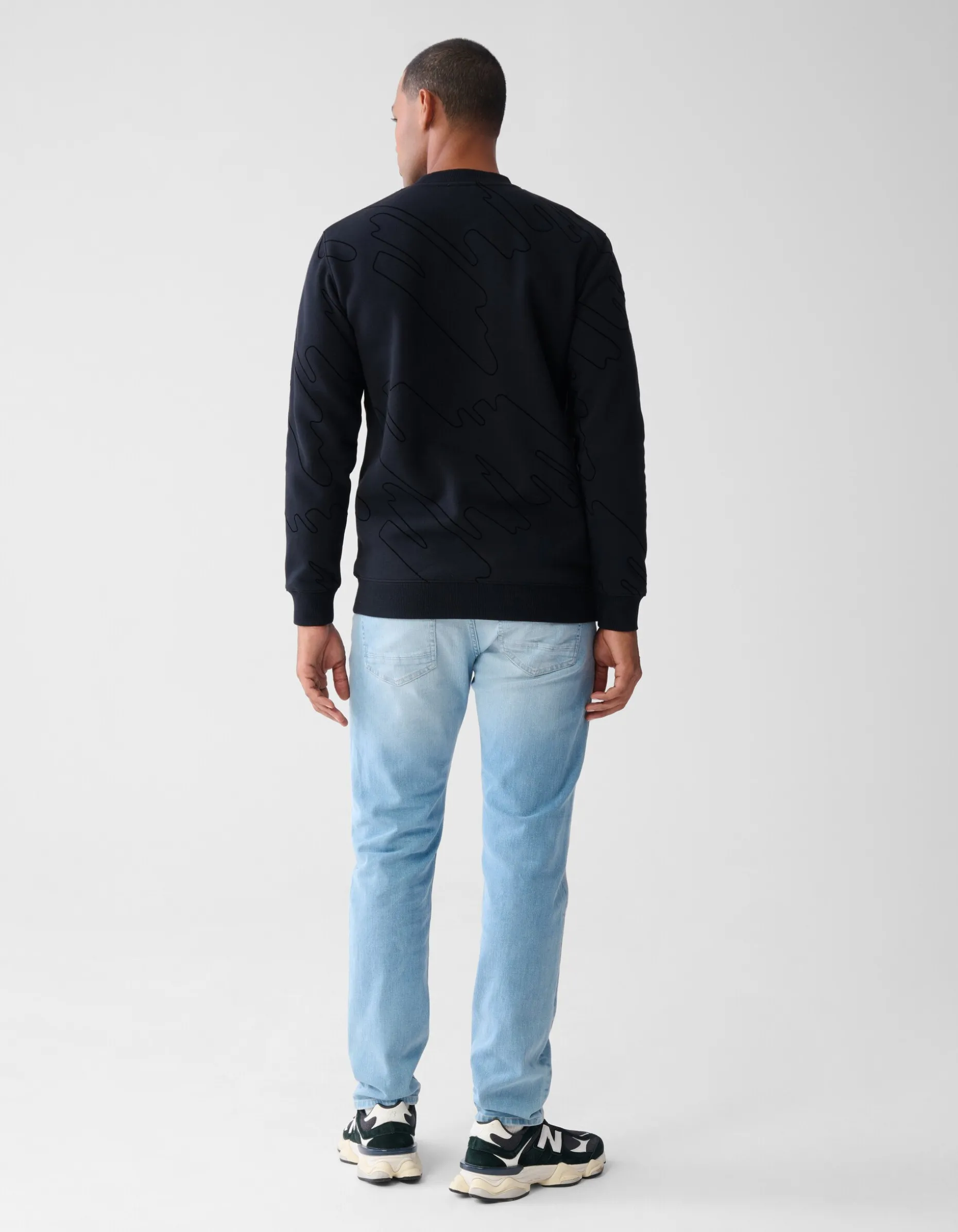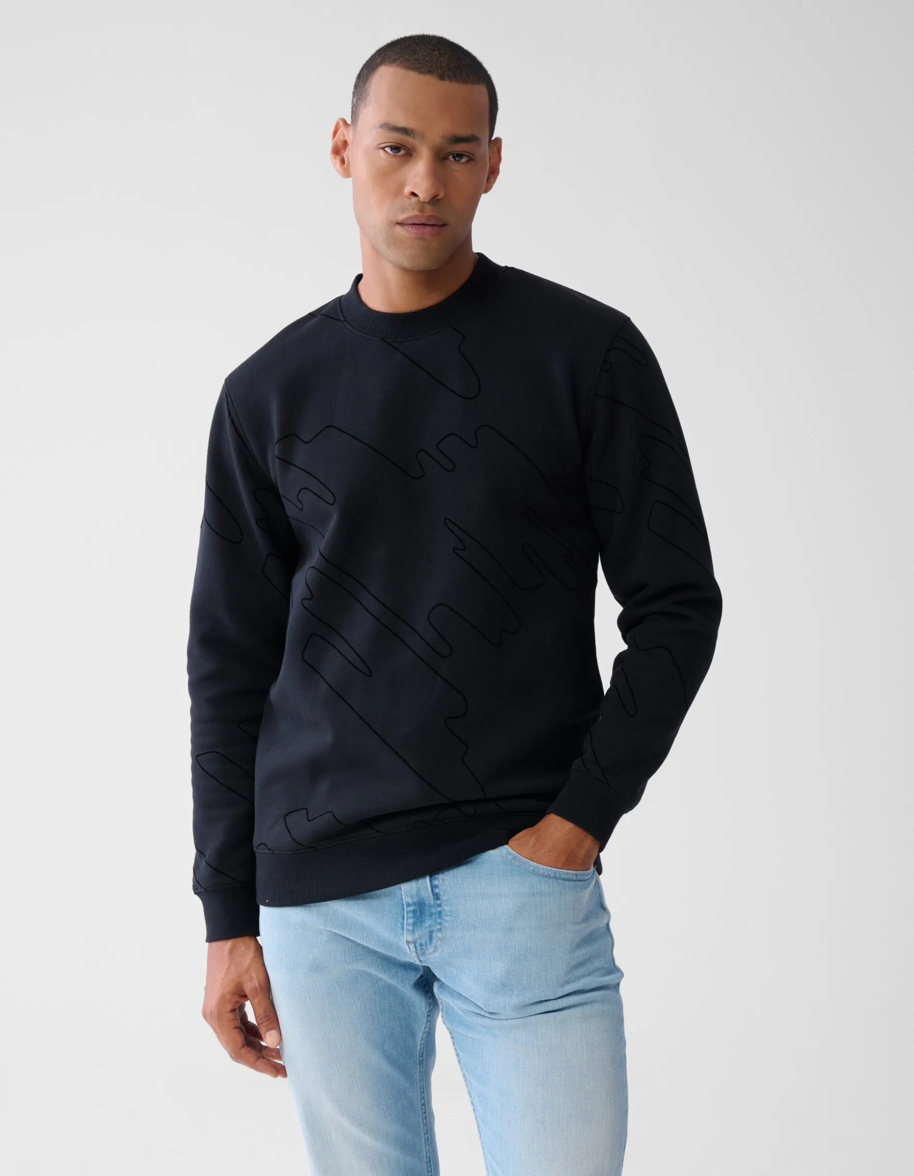 Ontdek de ultieme combinatie van stijl en comfort met deze verfijnde sweater. Het subtiele patroon en de hoogwaardige stof zorgen voor een tijdloze uitstraling. De Flock Print Sweater Zwart heeft een regular fit, ronde hals en lange mouwen, en wordt gekenmerkt door de zwarte kleur met all-over flock print. Het item is gemaakt van katoen en polyester, waardoor het comfortabel draagt en kleur- en vormvast is. Het model heeft een lengte van 186 cm en draagt de sweater in maat L. De totale lengte van dit item bij maat L is 71 cm.