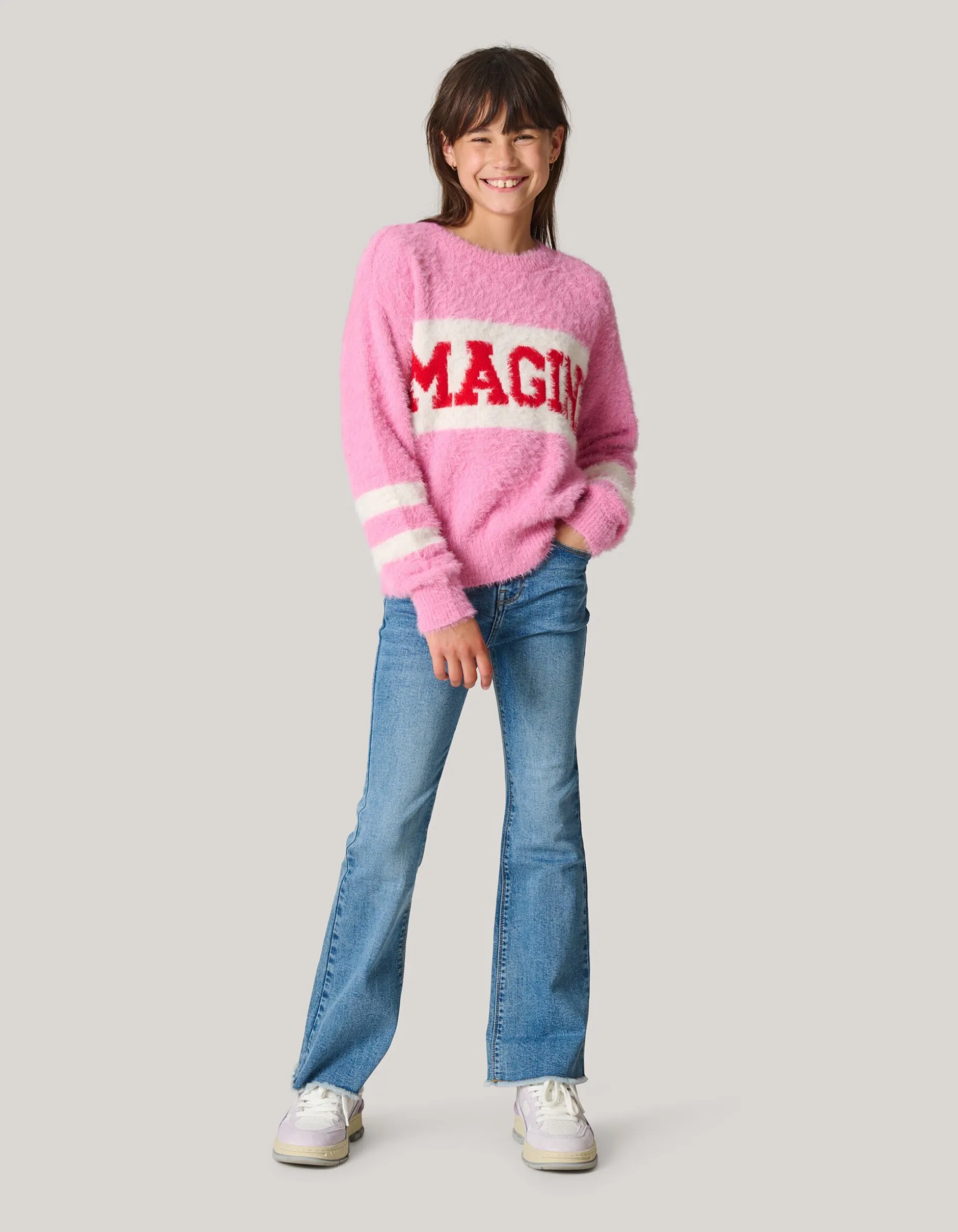 Comfort meets style! De Gebreide Trui is perfect voor een relaxte, casual look. Het item heeft lange mouwen, een loose fit en een ronde hals. Verder wordt de trui gekenmerkt door de tekst op de voorzijde voor een speels effect. Verder is het gemaakt van polyamide en acryl, waardoor het net zo warm als wol aanvoelt en sterk van kwaliteit is. Combineer het samen met een wide leg jeans en een paar sneakers voor een stylish look!