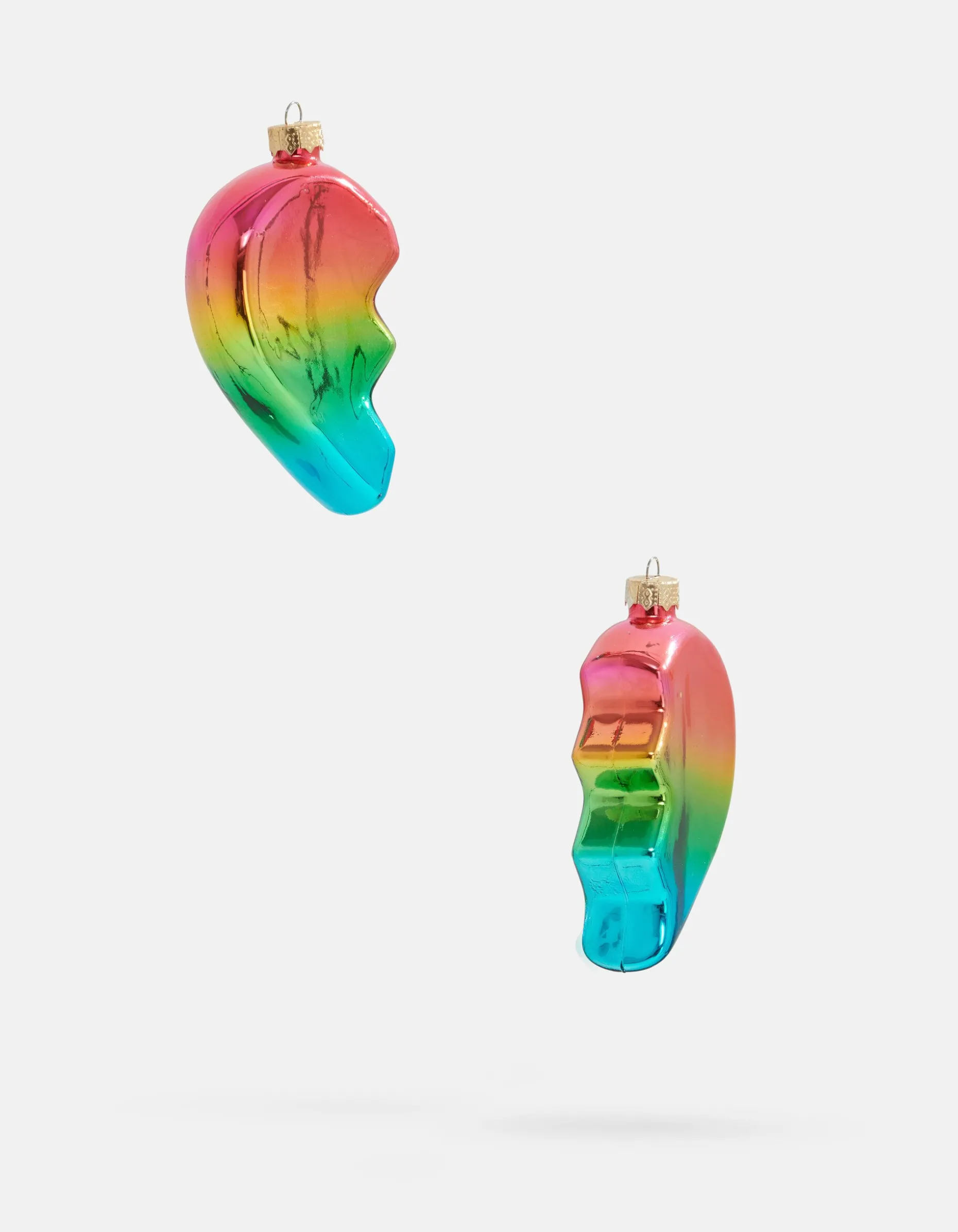 It’s (almost) the most wonderful time of the year! Met de Shoeby X Fred van Leer kerstballencollectie is er genoeg kleur, glitter & glamour. Want zeg je Fred, dan zeg je fancy kerstballen. En af en toe zit er een ondeugend tintje aan, maar in de kerstboom is niets te gek! Pak dubbel en dwars uit met 23 verschillende soorten glazen ornamenten die stuk voor stuk handgeblazen zijn. De Gebroken Hart Kerstbal wordt gekenmerkt door twee losse kerstballen in de vorm van een halve hart. Verder heeft het item de kleuren van de regenboog. Kerst staat in het teken van de liefde en samen zijn. Speciaal voor je forever besties die deze kerst apart spenderen en toch aan elkaar willen denken. Zo kan je de hartjes delen, ieder een helft! Best friend forever. Combineer het samen met andere kerstballen uit de collectie voor een fabulous kerstboom. Het heeft een totale afmeting van 5,5 cm x 8,5 cm. Get it or regret it!
