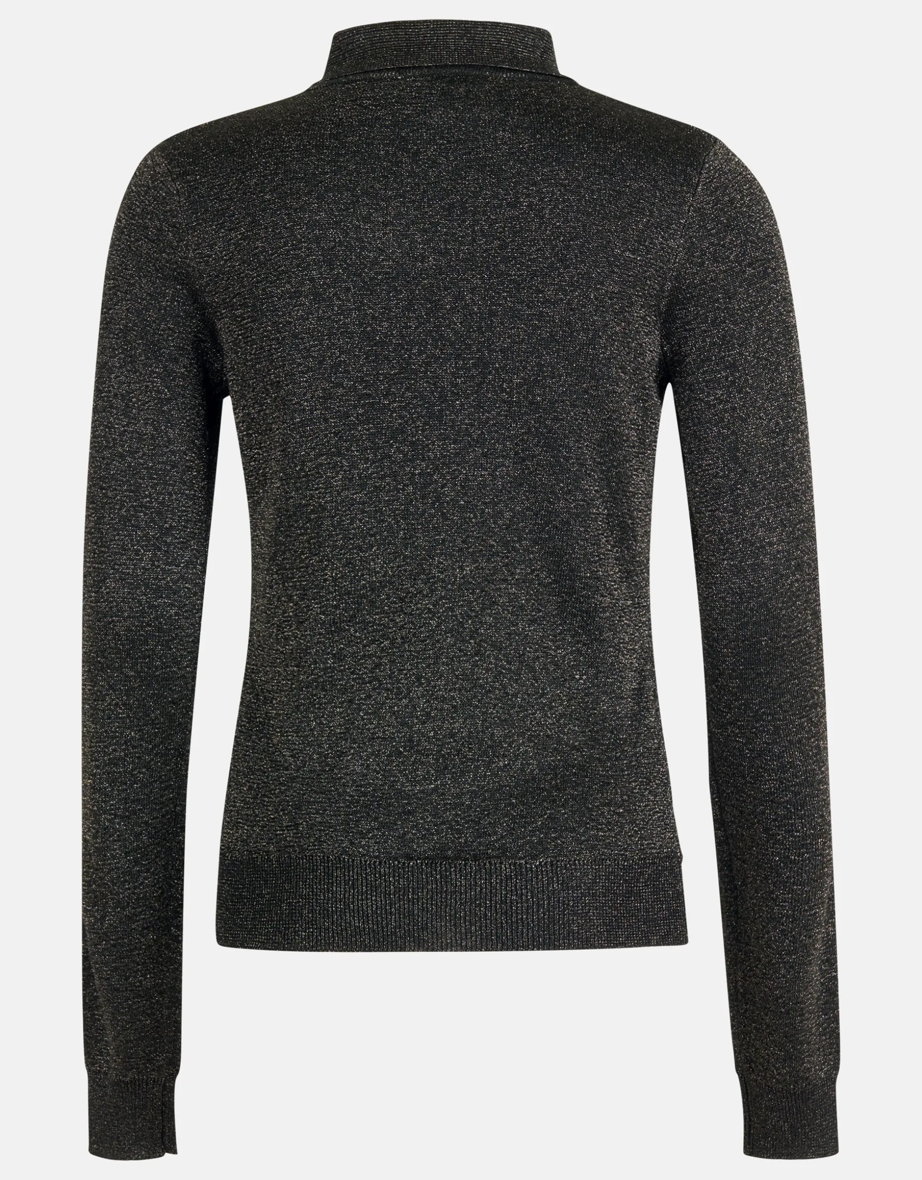 Life is a party, dress like it! De Glitter Trui heeft lange mouwen, een kraag en een regular fit. Het item wordt gekenmerkt door de zwarte kleur met een all-over glitter design in de stof. De glitters hebben een gouden kleur, waar jij zeker de show mee steelt. Verder bevat het item veel stretch en heeft het een fijne stof aan de binnenkant, zodat je de glitters niet voelt. Het is gemaakt van viscose, nylon en metallic, hierdoor draagt het comfortabel, is het sterk van kwaliteit en vormvast. Combineer het samen met een strass wide leg jeans, een paar hakken en een statement sieraad voor een edgy look! Het model heeft een lengte van 176 cm en draagt maat S. Het artikel heeft een totale lengte van 63 cm bij maat S.