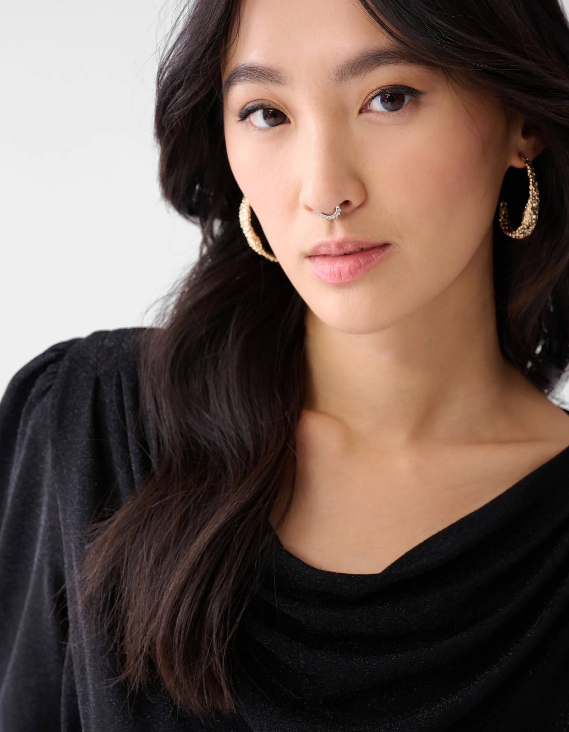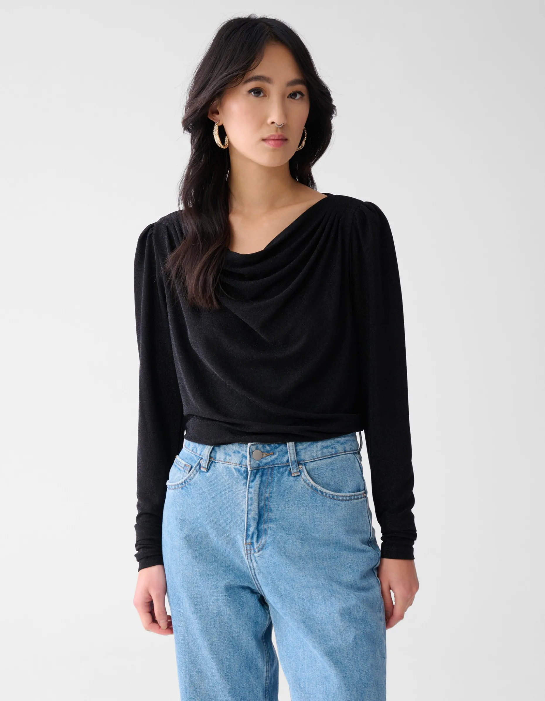 Musthave! De Glitter Waterval Top Zwart heeft een aangesloten fit, lange mouwen, stretch stof en een ronde hals. Verder wordt de top gekenmerkt door de zwarte kleur en de glitter. Het model heeft een lengte van 176 cm en draagt maat S. Het item heeft een totale lengte van 57 cm bij maat S. De top is gemaakt van polyamide en metaal vezel. Deze samenstelling zorgt ervoor dat de blouse sterk van kwaliteit en kleurvast is.