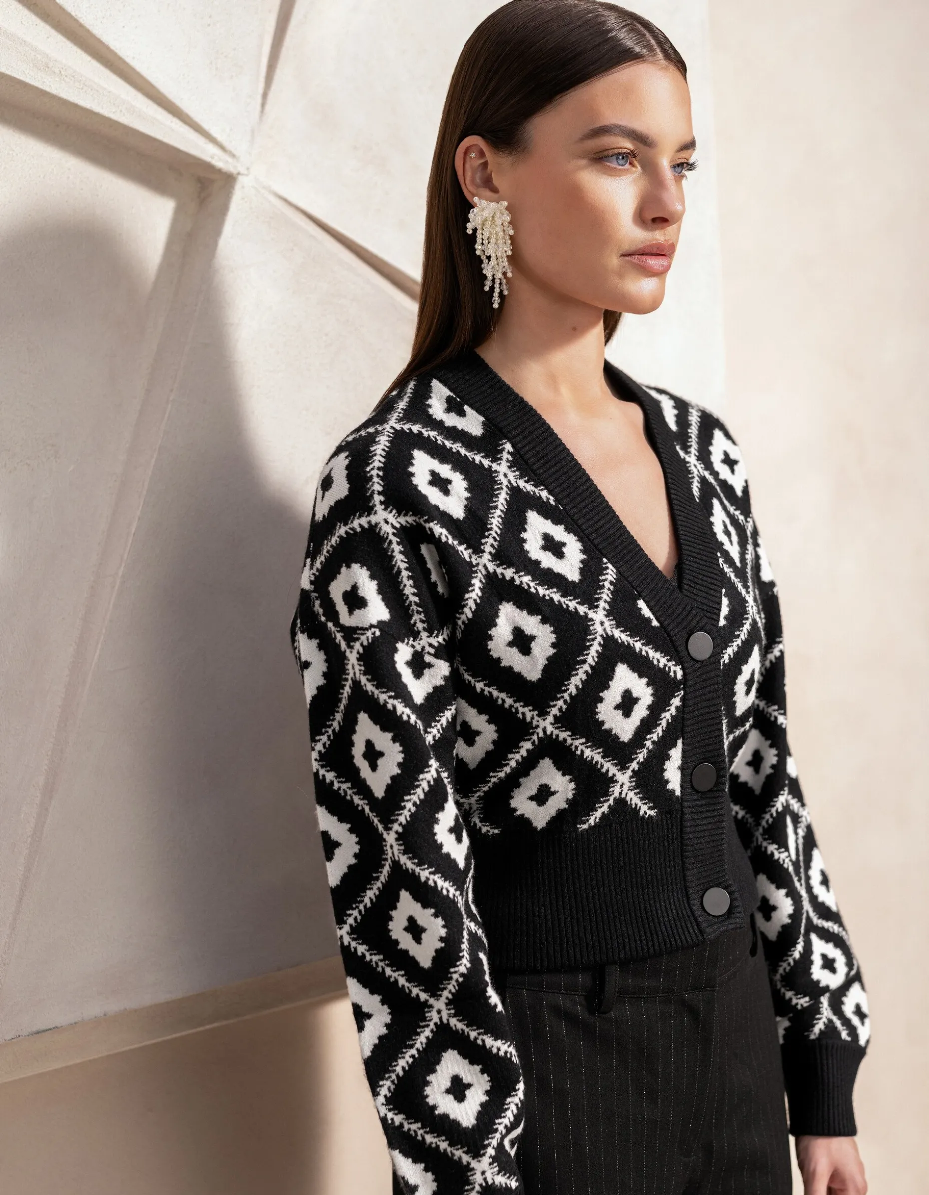 Grafisch Cropped Vest Zwart By Mieke