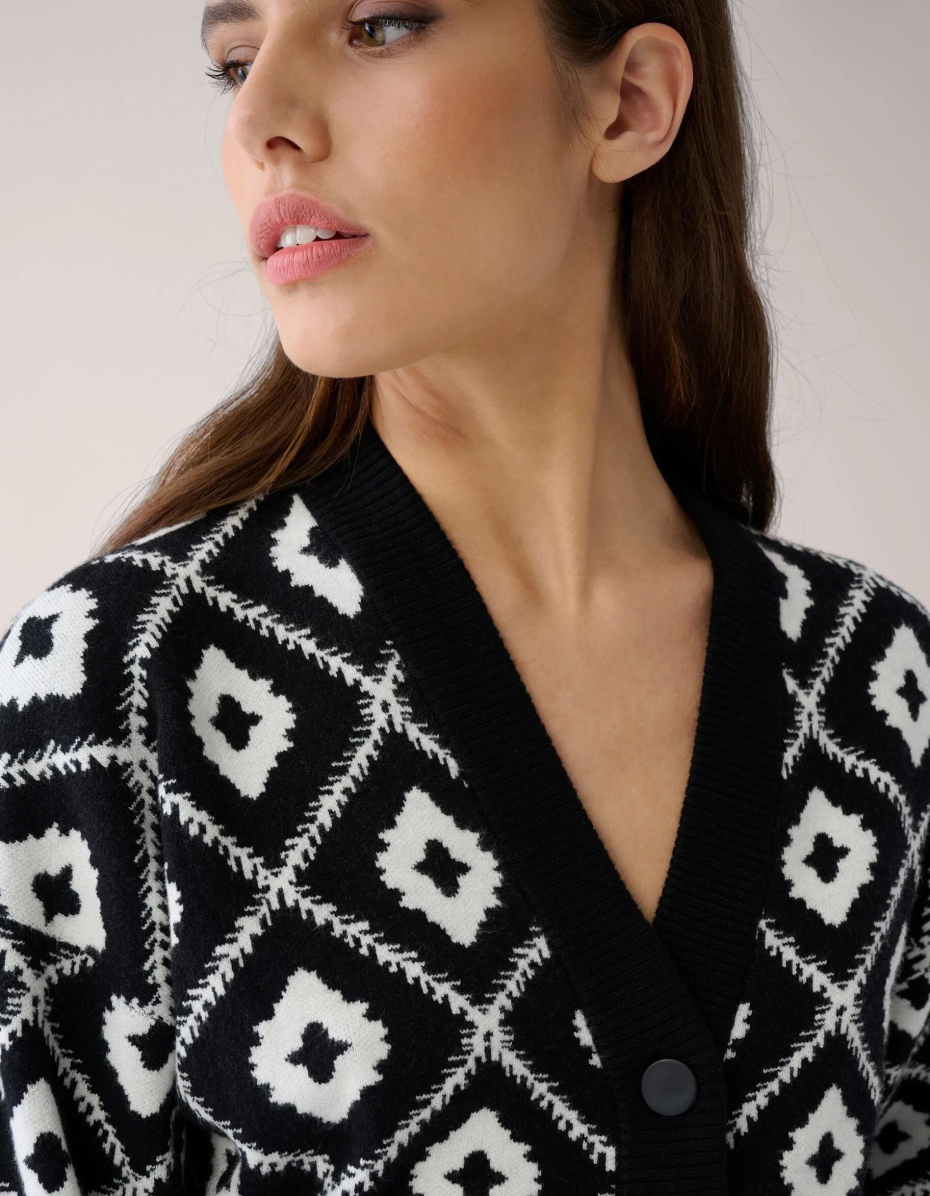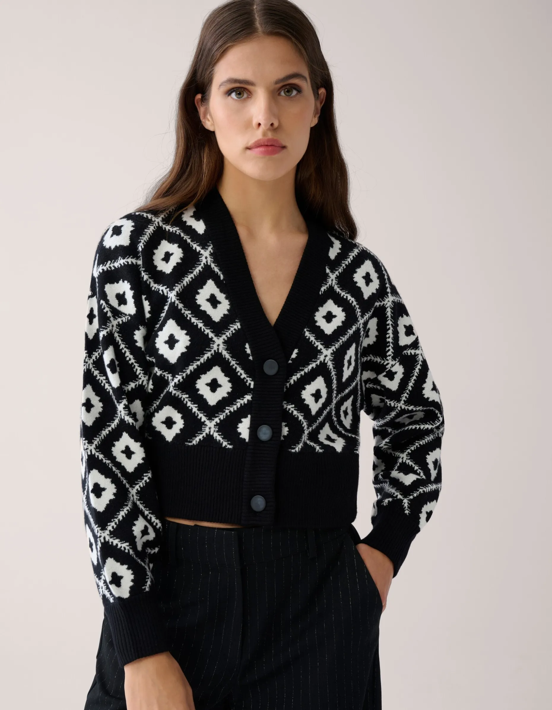 Comfy and stylish! Het Graphic Vest By Mieke heeft lange mouwen, een V-hals, een knoopsluiting, een stretch stof en een regular fit. Het item wordt gekenmerkt door de zwachte brei met een all-over grafisch patroon. ingeweven in de stof. Verder heeft het vest een zwarte kleur met gebroken witte details. Het vest geeft een unieke mix van sophisticated en edgy! Het is gemaakt van polyester, viscose en polyamide. Door deze samenstelling is het sterk van kwaliteit, vormvast en comfortabel. Combineer het vest samen met andere items uit de By Mieke collectie en je bent good to go! Het model heeft een lengte van 176 cm en draagt maat XS/S. Het artikel heeft een totale lengte van 51 cm bij maat XS/S.