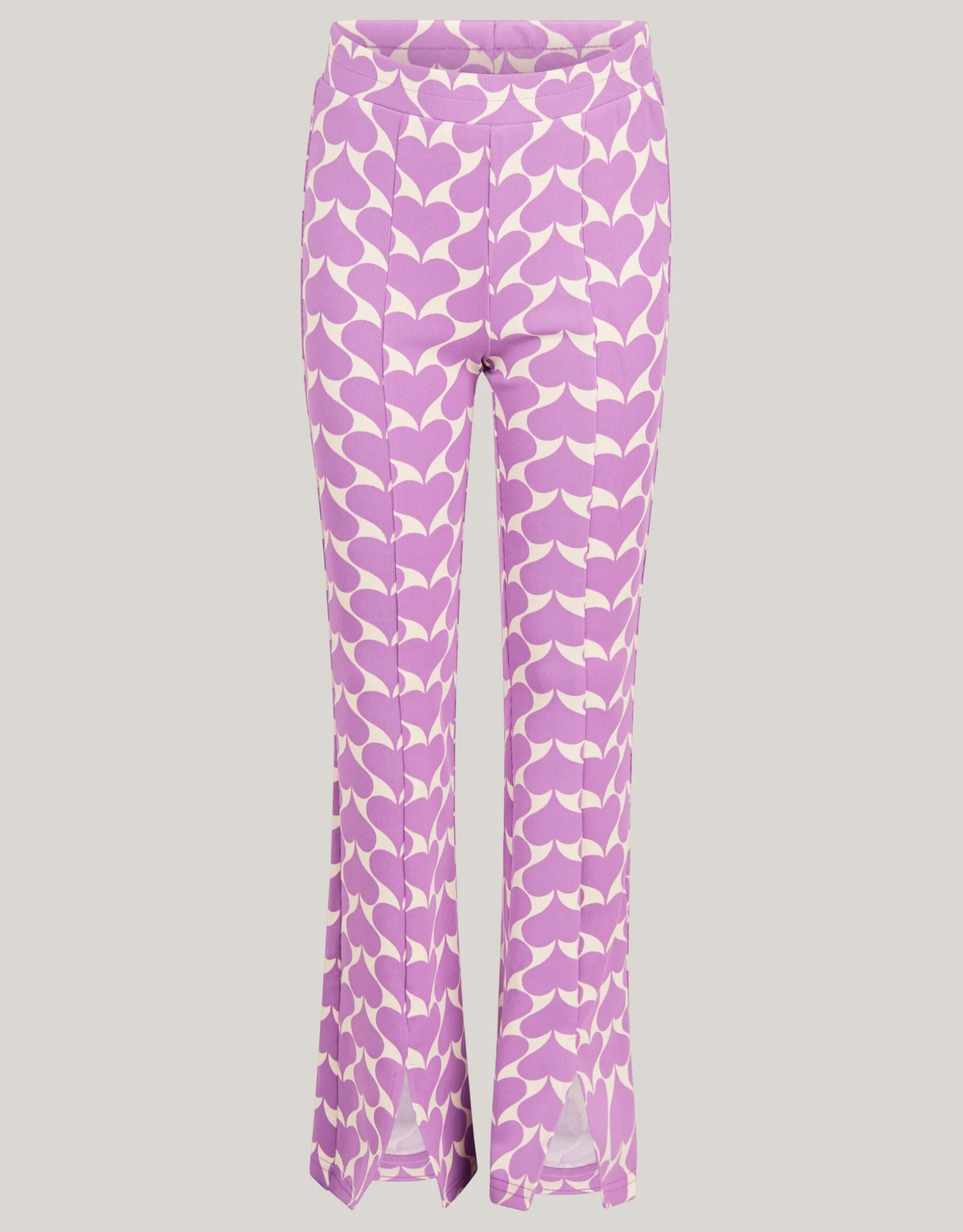De Heart Split Flair Paars is perfect voor casual dagen. Met een hartjes print in wit, paars en een middel hoge taille bieden ze comfort en stijl. De broek is perfect voor elke gelegenheid. Het item is gemaakt van polyester en elastaan waardoor het item een beetje stretchy is, maar ook sterk van kwaliteit. Combineer het met een leuk t-shirt en je bent good to go.