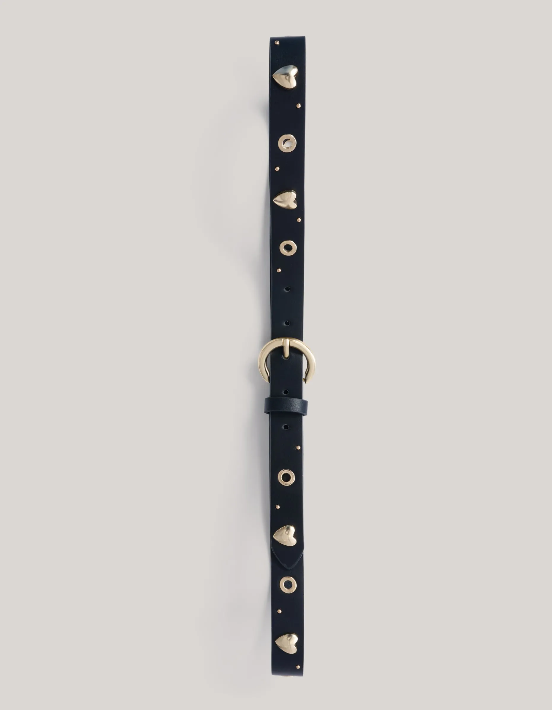 Van de Gouden Heart Riem word je opslag verliefd! De riem wordt gekenmerkt door een zwarte kleur met studs all-over de riem. Verder heeft de riem nog een bijpassende gouden gesp. Door de verstelgaatjes kan de riem perfect afgestemd worden met jouw lichaam. Draag de riem samen met je favoriete Jeans van Shoeby voor een complete look!