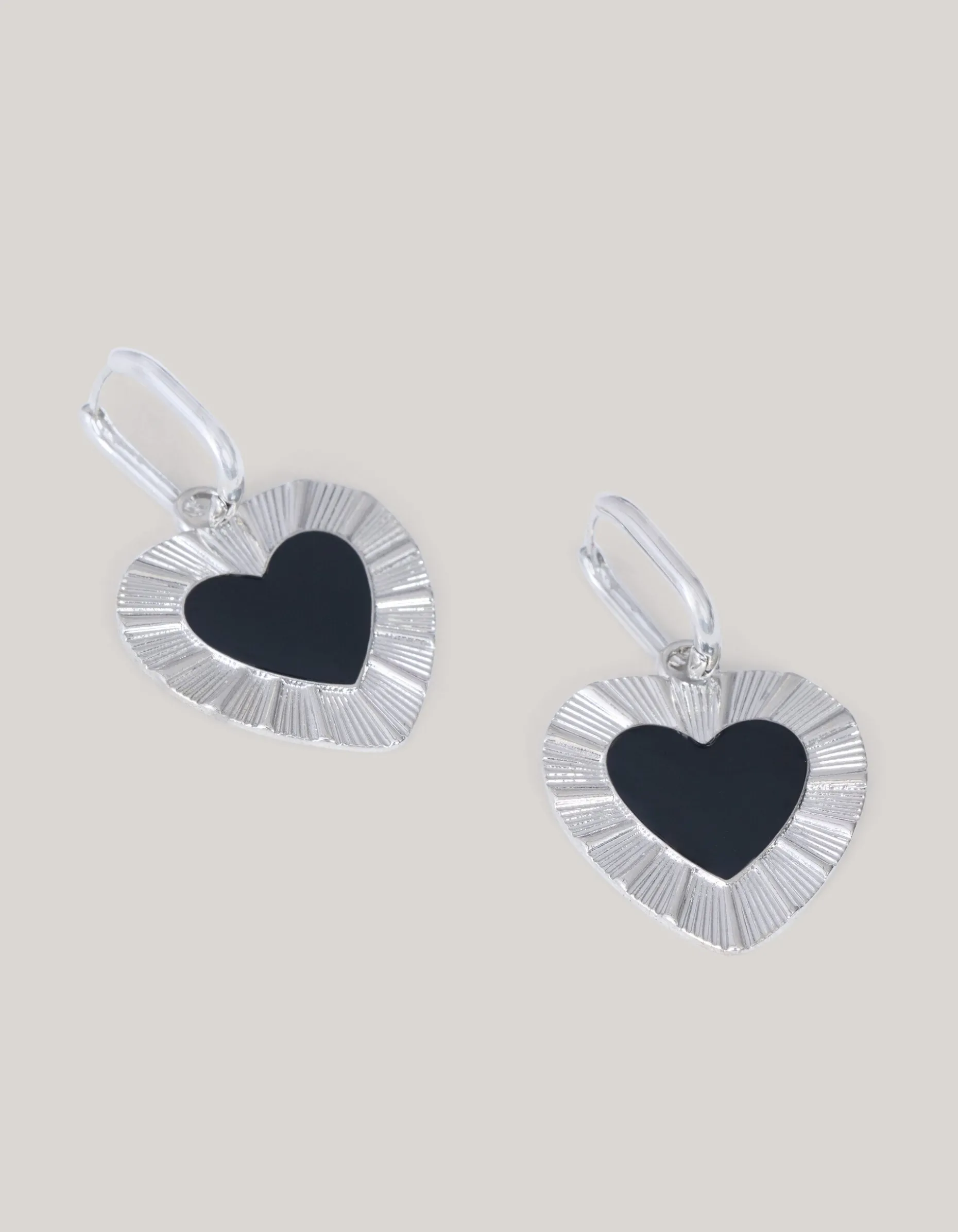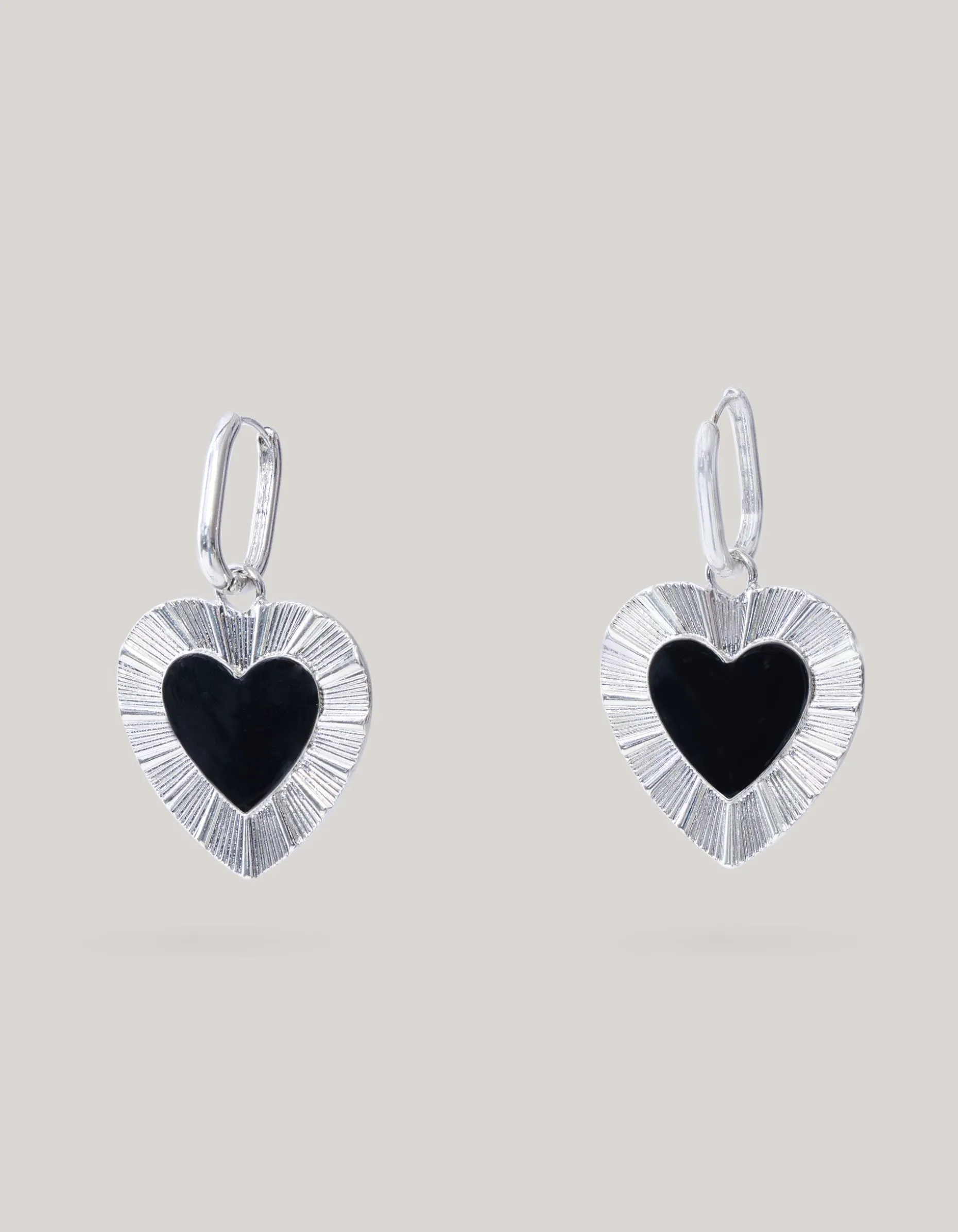 Voeg een vleugje speelse elegantie toe aan je look met de Heart Oorbellen Zilver/Zwart. De oorbellen worden gekenmerkt door de zilveren kleur, reliëf en de hartjes vormige hanger met een zwart detail in de binnenkant. De oorbellen hebben een klipsluiting, waardoor het veilig en goed op zijn plek blijft. Deze oorbellen zijn perfect als finishing touch voor elke outfit!