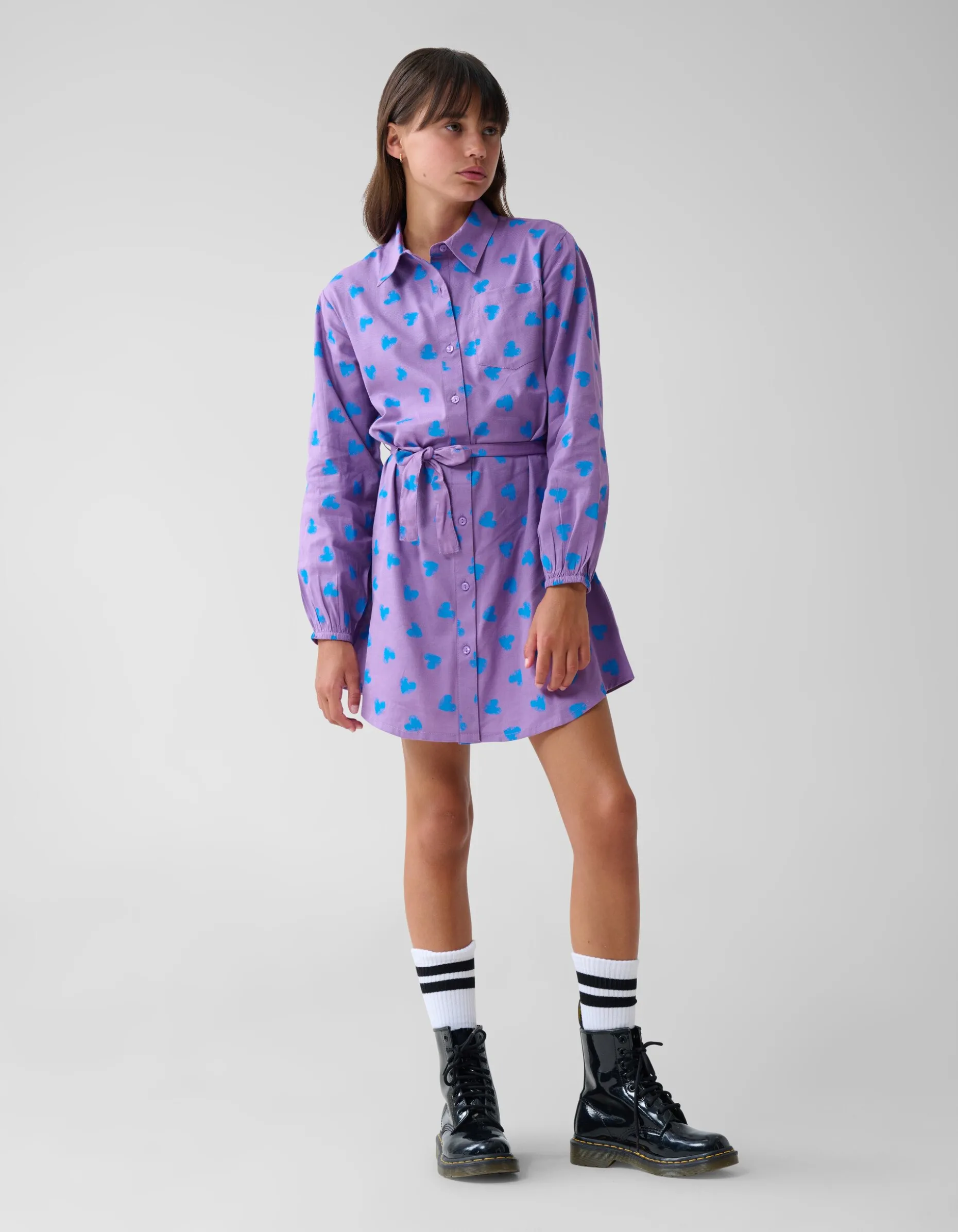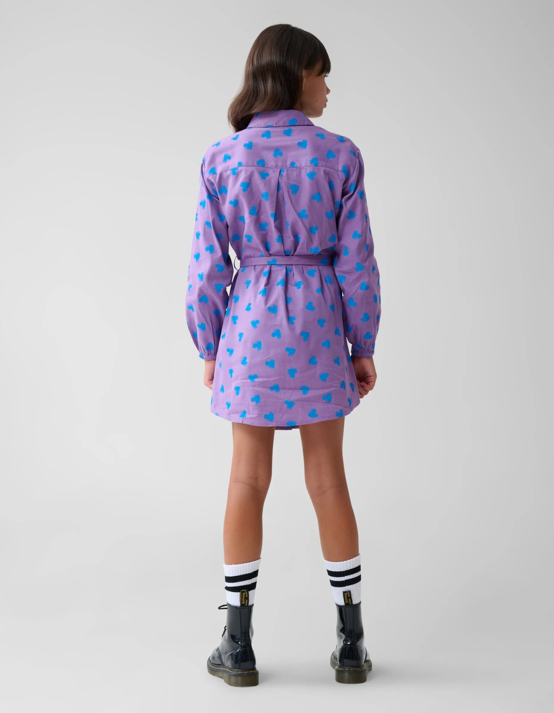 De Heart Jurk Paars is perfect voor elke gelegenheid! Het item wordt gekenmerkt door de paarse kleur met een all-over hartjes print. Verder heeft de jurk wijdere mouwen en een doorgeknoopt ceintuur. Het is gemaakt van 100% viscose, hierdoor is het kleurvast en draagt het comfortabel. Draag de jurk samen met een paar laarzen of sneakers voor een stijlvolle look!