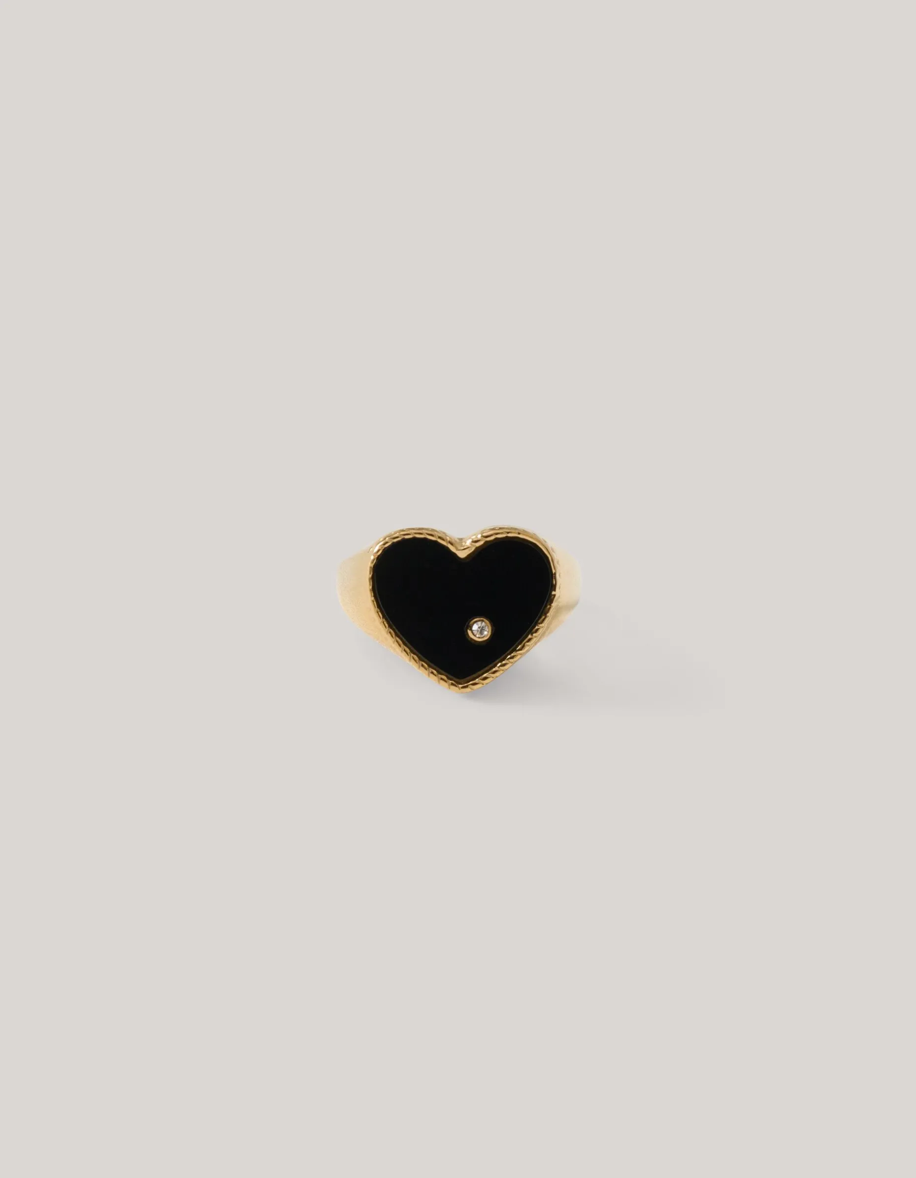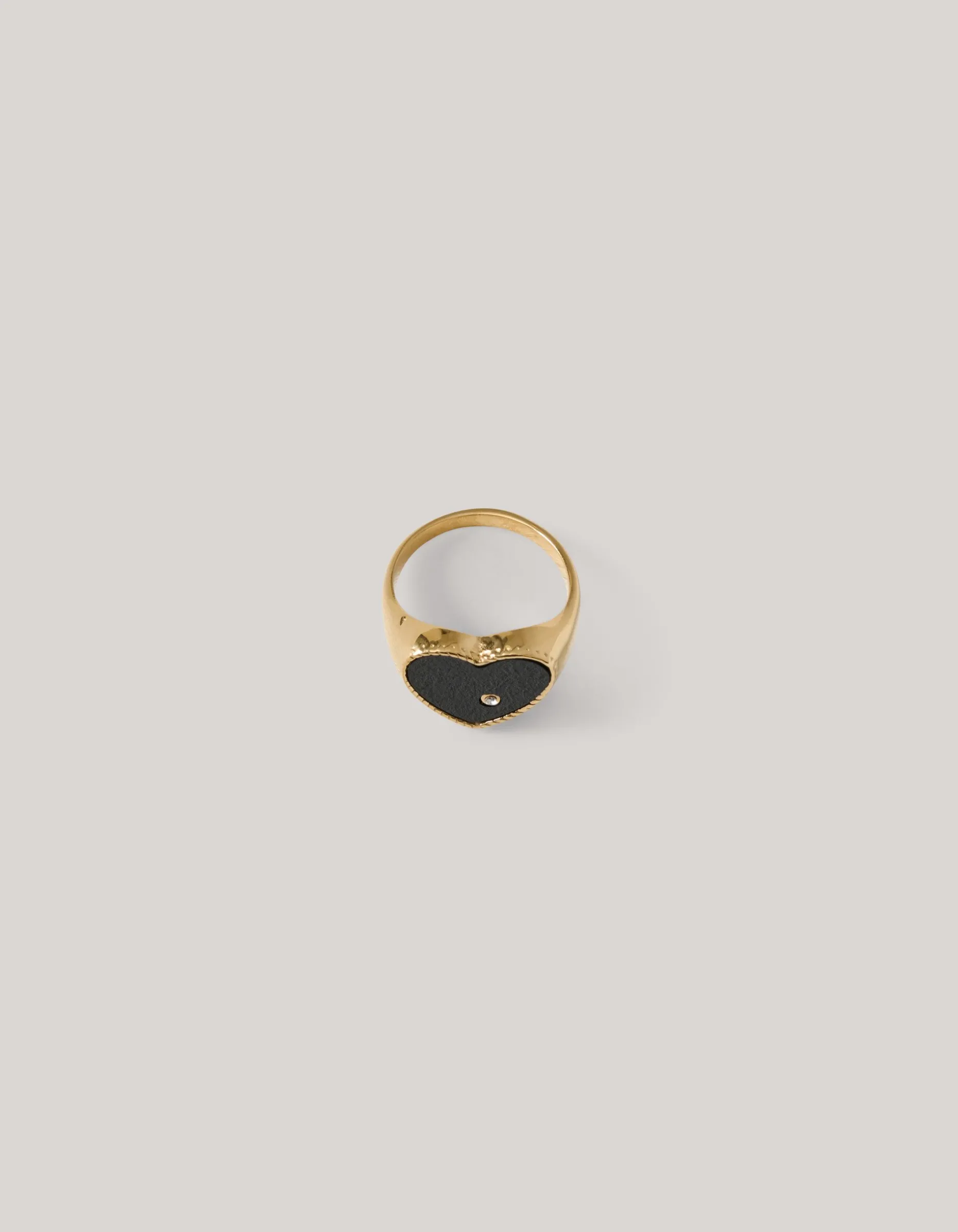Love at first sight met de Hart Ring! De ring wordt gekenmerkt door de gouden kleur met een hart aan de voorzijde. Het hart een zwarte kleur. Combineer de ring samen met de hartjes oorbellen voor een complete set!