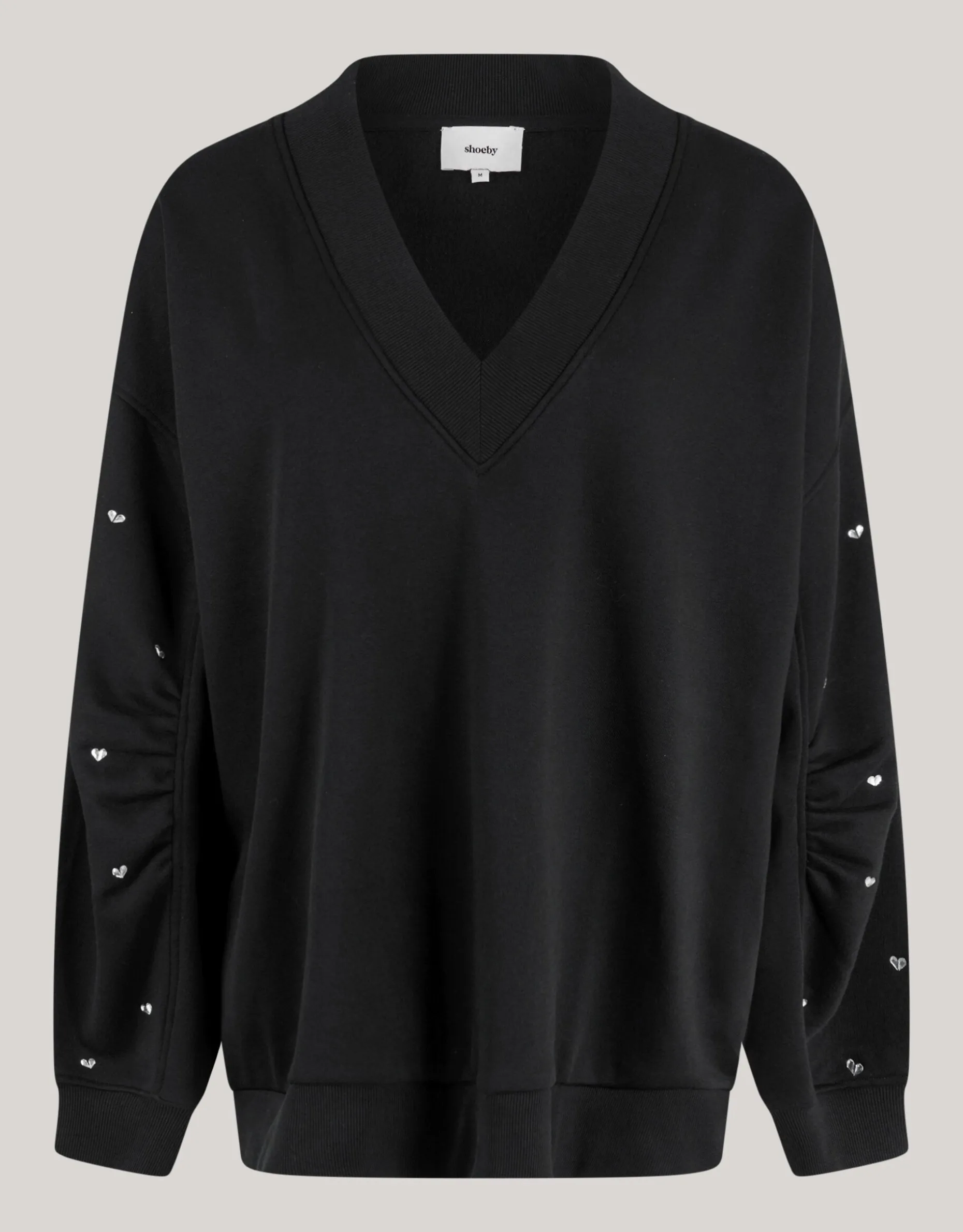 Iconic! Ontdek de Heart Stud Sweater Zwart! Deze sweater wordt gekenmerkt door de oversized fit, V-hals, studs en lange fit. De trui is gemaakt van katoen en polyester. Deze samenstelling zorgt ervoor dat de trui comfortabel draagt en sterk van kwaliteit is. Het model heeft een lengte 171 cm en draagt een maat S. Combineer de sweater samen met de accessoires van Shoeby voor een complete look!