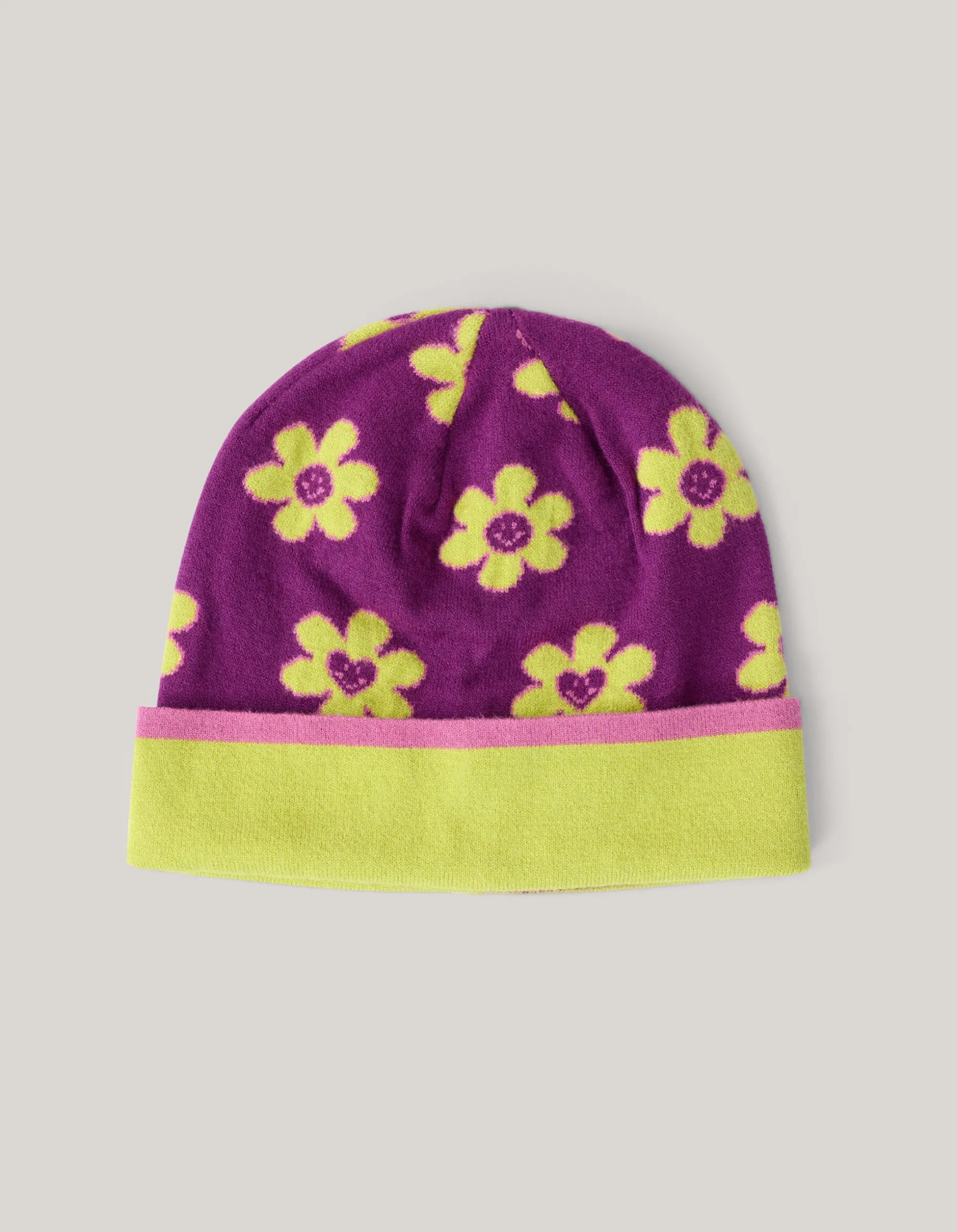 Your fashionable winter look isn’t complete without the perfect Shoeby beanie! De Jacquard Beanie wordt gekenmerkt door de donkerpaarse kleur, een chunky breisel en een omslag aan de onderzijde in een gele kleur met een roze rantje. Door de tijdloze kleur is de beanie eindeloos te combineren. Een leuk detail zijn de gele bloemen op de beanie voor een speels effect. Verder is het item gemaakt van polyester. Door deze samenstelling is het sterk van kwaliteit, vormvast, rekbaar en even warm als wol. Maak de look af met een Shoeby gebreide sjaal en een winterjas voor een stylish winter look!