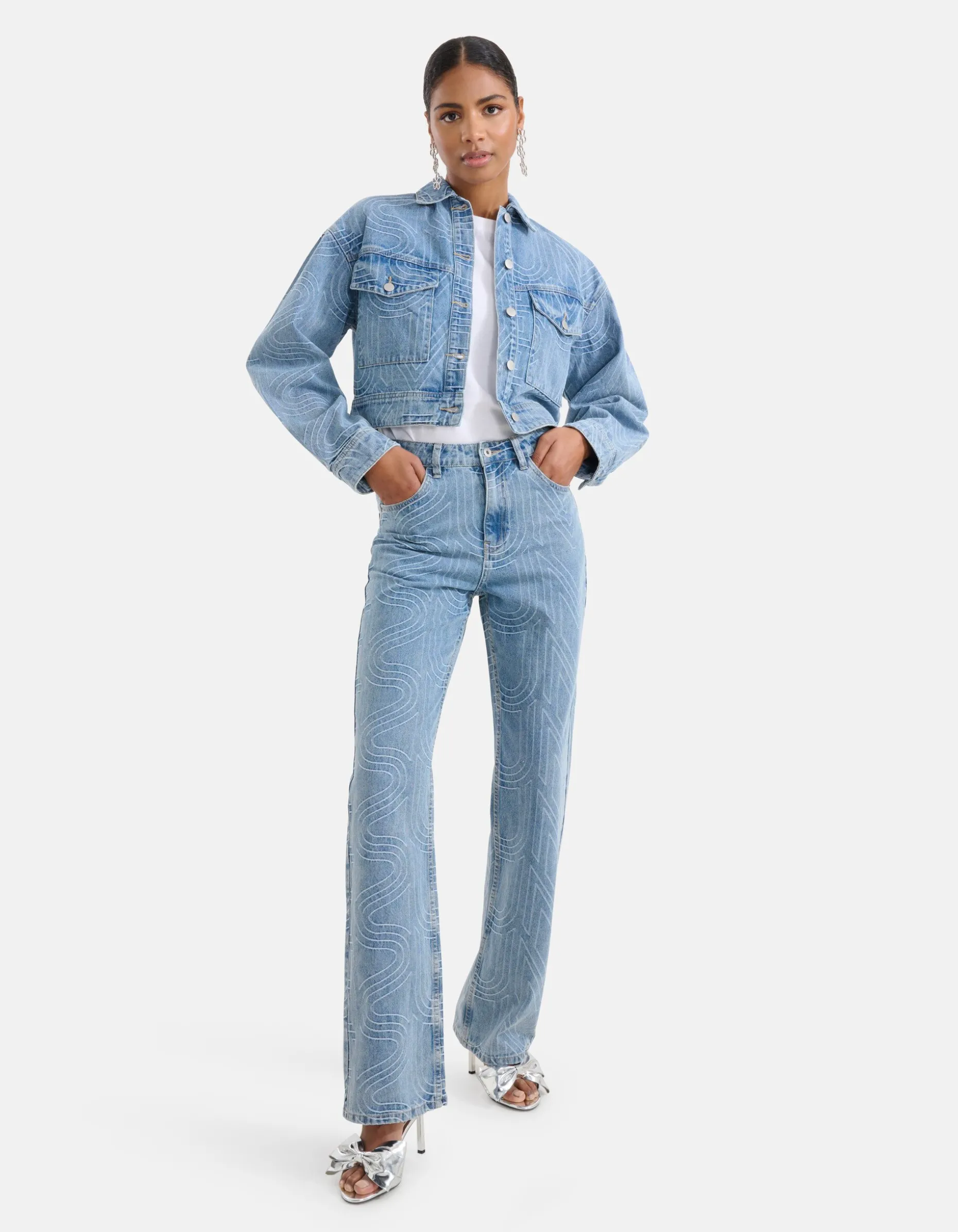 De Jacquard Straight Fit Jeans Mediumstone is de perfecte aanvulling op je casual garderobe. Met de straight fit, hoge taille, mediumstone kleur en volledige lengte maken het ideaal voor elke informele gelegenheid, terwijl het all-over jacquard tekst patroon “muse” een trendy touch toevoegt aan de jeans. Comfortabel en veelzijdig, een echte musthave voor dit seizoen. De jeans is gemaakt van 100% katoen, hierdoor draagt de jeans comfortabel, is hij vormvast en zit er geen stretch in. Combineer met het matching denim jack, een paar statement oorbellen en hakken voor een complete en trendy look. De jeans heeft een binnenbeenlengt van 83,8 cm bij maat 27 en het model heeft een lengte van 176 cm en draagt maat 27.