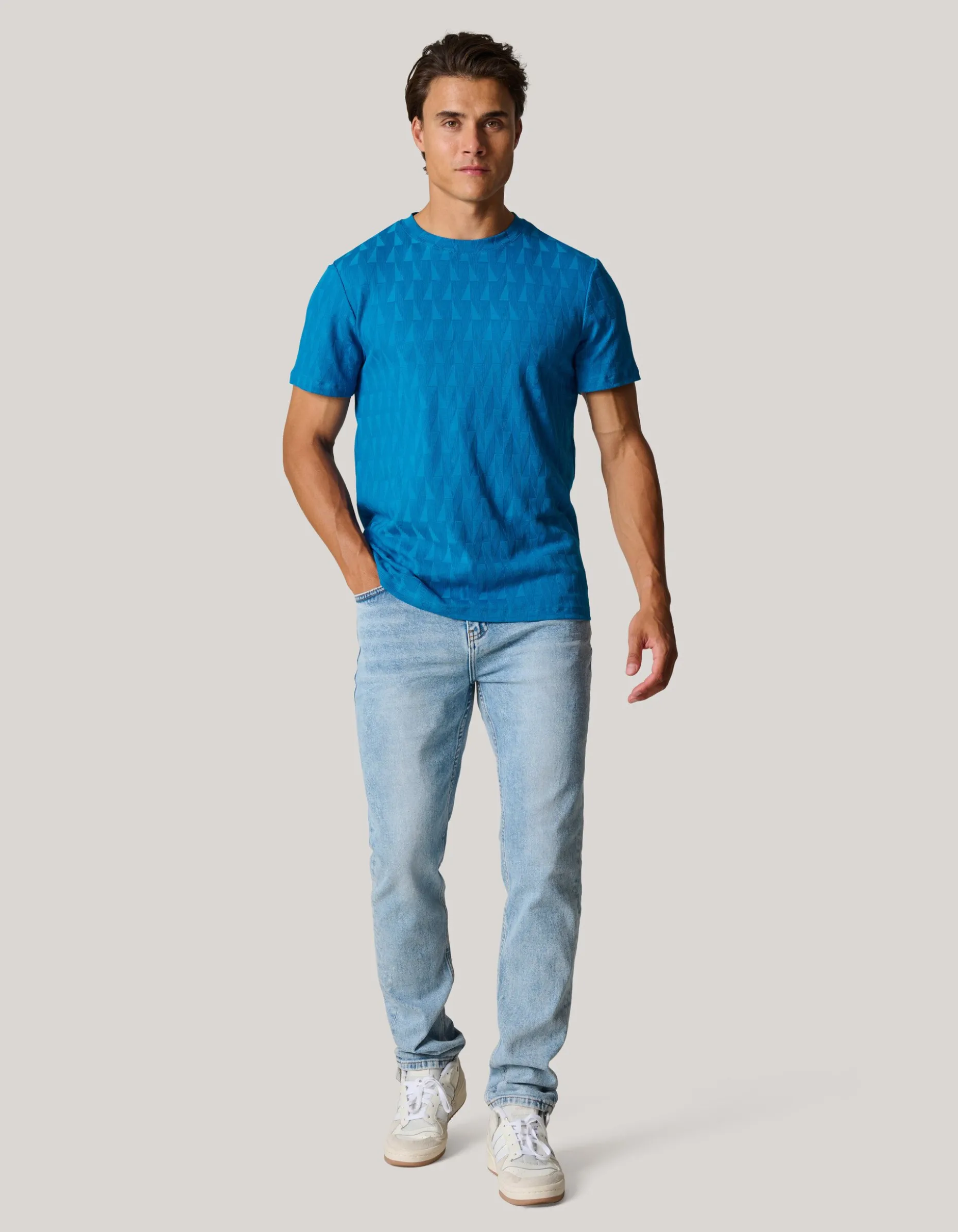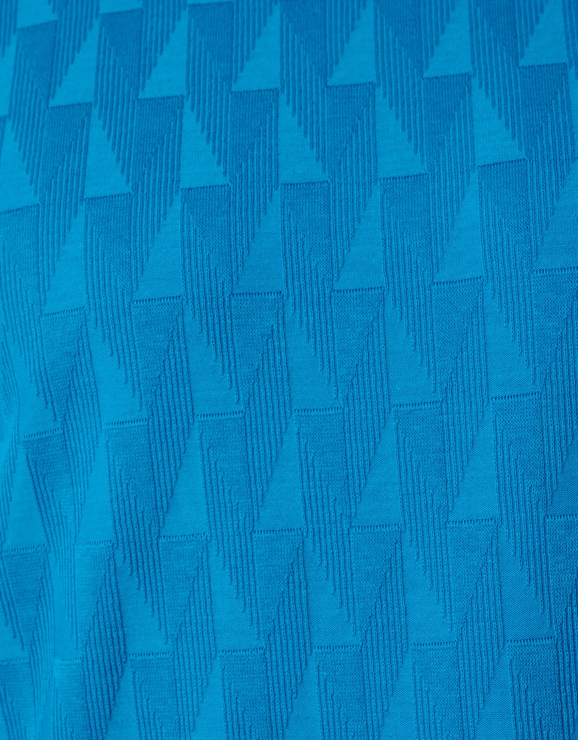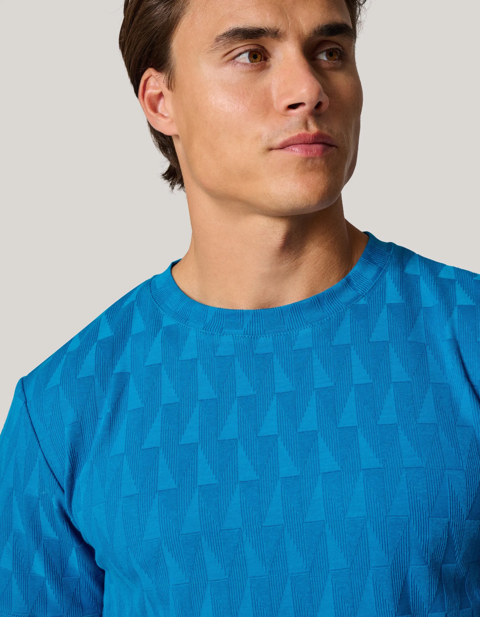 Geef je casual stijl een boost met het Jacquard T-shirt Blauw. Dit item heeft een Blauw geometrisch patroon, een ronde hals, een aansluitend silhouet en is perfect voor een dynamische look. Blijf comfortabel en trendy met dit T-shirt voor elke casual gelegenheid. Het item is gemaakt van polyester en elastaan, waardoor het sterk van kwaliteit is en vormvast. Combineer het item samen met je favoriete jeans of shorts en je bent good to go!