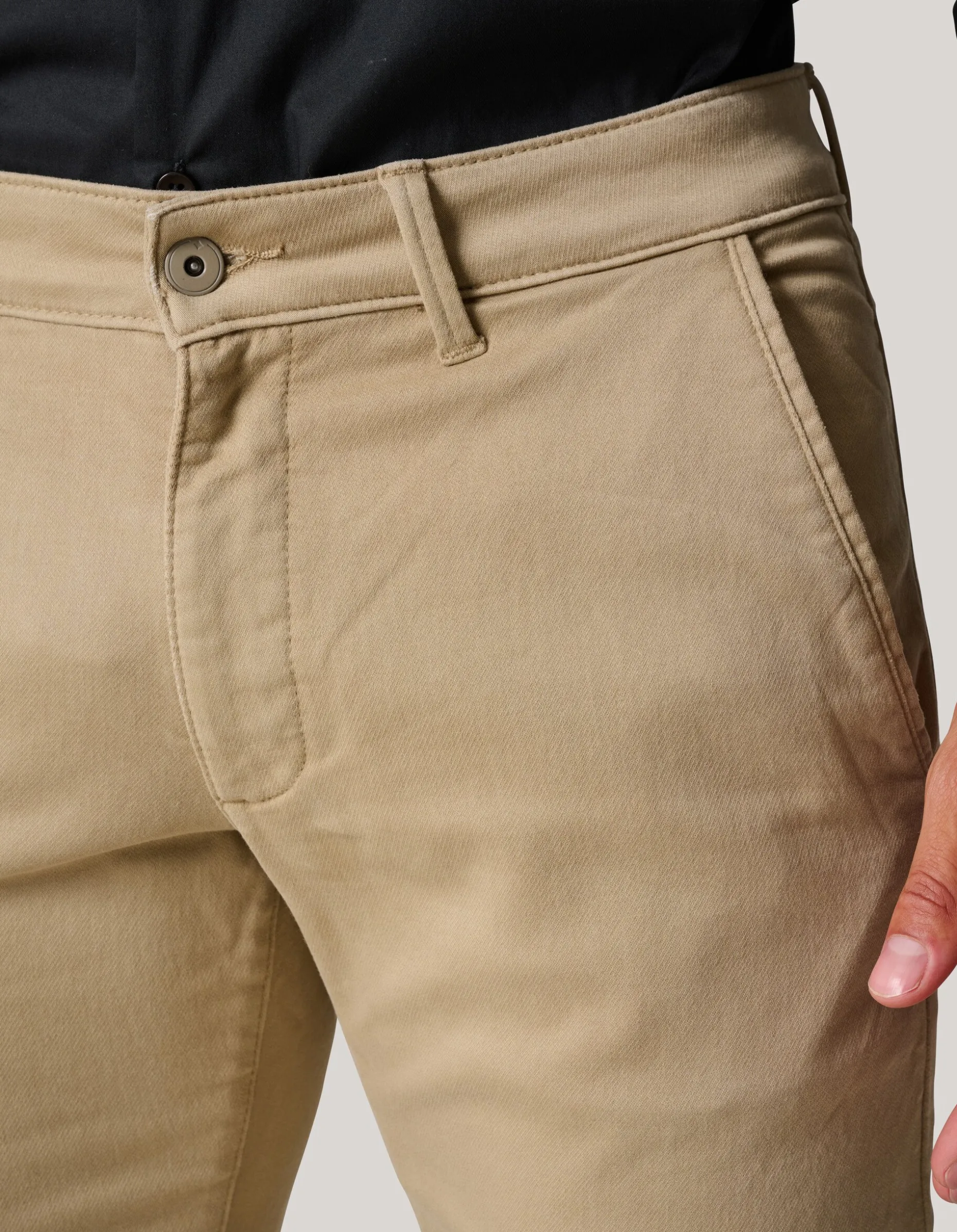 Een musthave! De Jog Chino heeft een middelhoge taille, een 4-pocket model, een stretchstof, een normale pasvorm en een knoop- en ritssluiting. Het item wordt gekenmerkt door de khaki kleur. Een chino valt wat ruimer bij de heupen en loopt vanaf de broekspijpen wat smaller toe. Dit zorgt voor meer draagcomfort. De broek is gemaakt van katoen, polyester en elastaan. Door deze samenstelling is het sterk van kwaliteit, comfortabel en subtiel rekbaar. Combineer het met je favoriete t-shirt of trui voor een complete look!