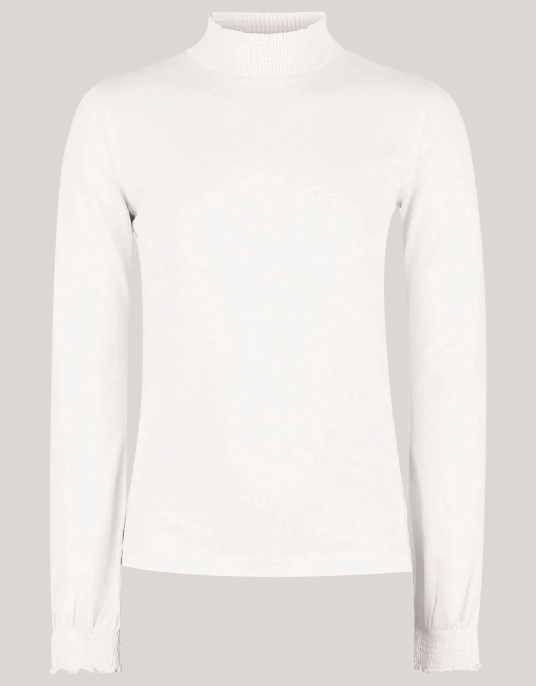 The perfect basic! Een goede garderobe start met een perfecte basic top. De Katoenen Top is hiervoor de juiste start. De top heeft lange mouwen, een aangesloten fit en een hoge hals met een opstaande kraag. Het item wordt gekenmerkt door de gebroken witte kleur en de elastieken boorden bij de hals en onderzijde van de mouwen. Door het elastiek aan de onderzijde van de mouw, onstaat er een subtiel pof effect. De top is gemaakt van katoen en modal. Door deze stofsamenstelling is het sterk van kwaliteit, kleurvast, vormvast, rekt het mee en draagt het comfortabel. Het productieproces van organic, ook wel biologisch katoen, is minder schadelijk en belastend voor het milieu. Het katoen wordt verbouwd zonder gebruik van chemische bestrijdingsmiddelen. In plaats van pesticide, worden natuurlijke middelen gebruikt om de plant te beschermen tegen ongedierte. Ook wordt er efficienter omgegaan met water, want voor het verbouwen van katoen is ontzettend veel water nodig. Combineer het samen met een pied de poule short, een leopard print hoed en chunky sneakers voor een fashionable look!Door katoenproducten te kiezen van Shoeby, steunt je onze inverstering in de missie van Better Cotton.