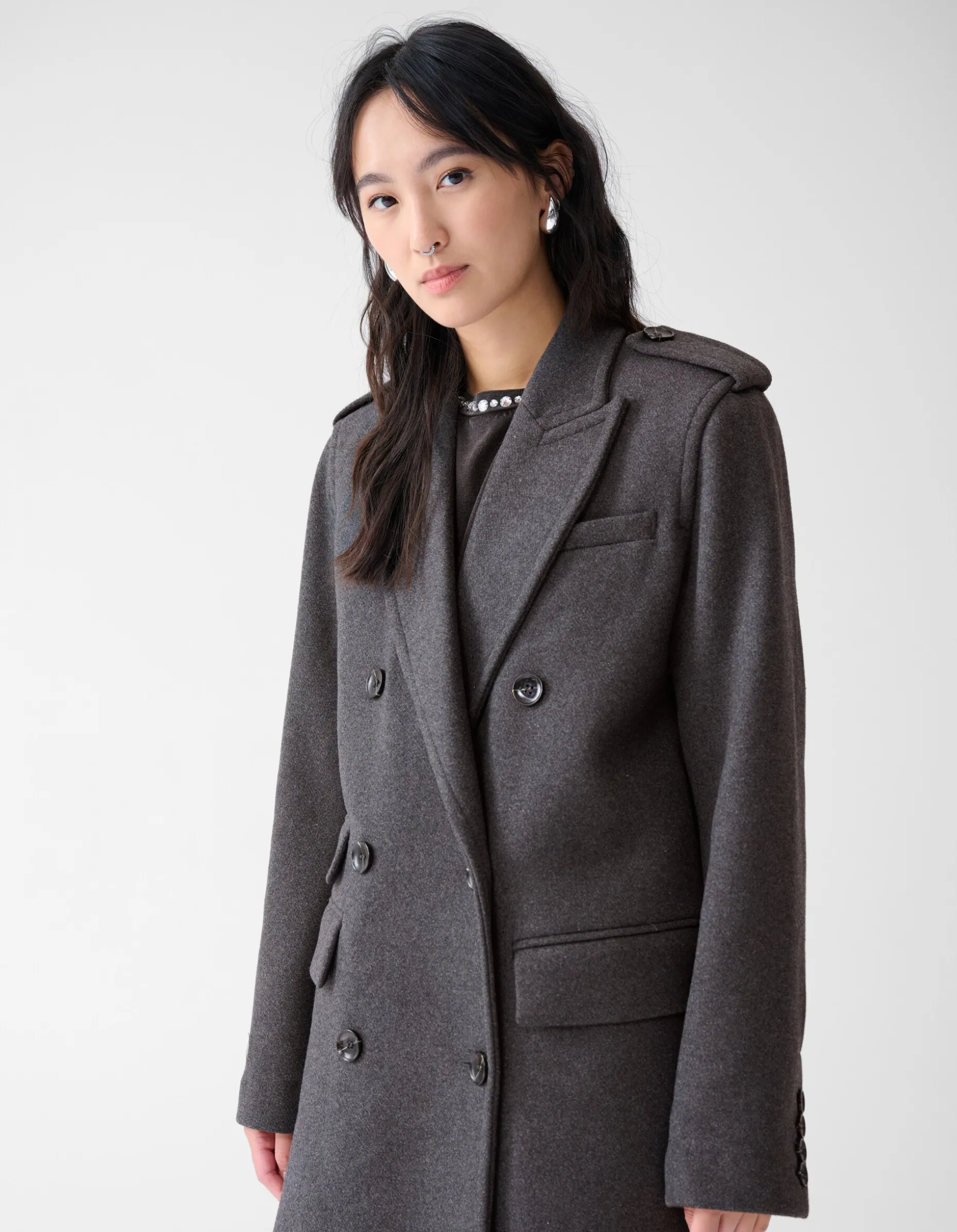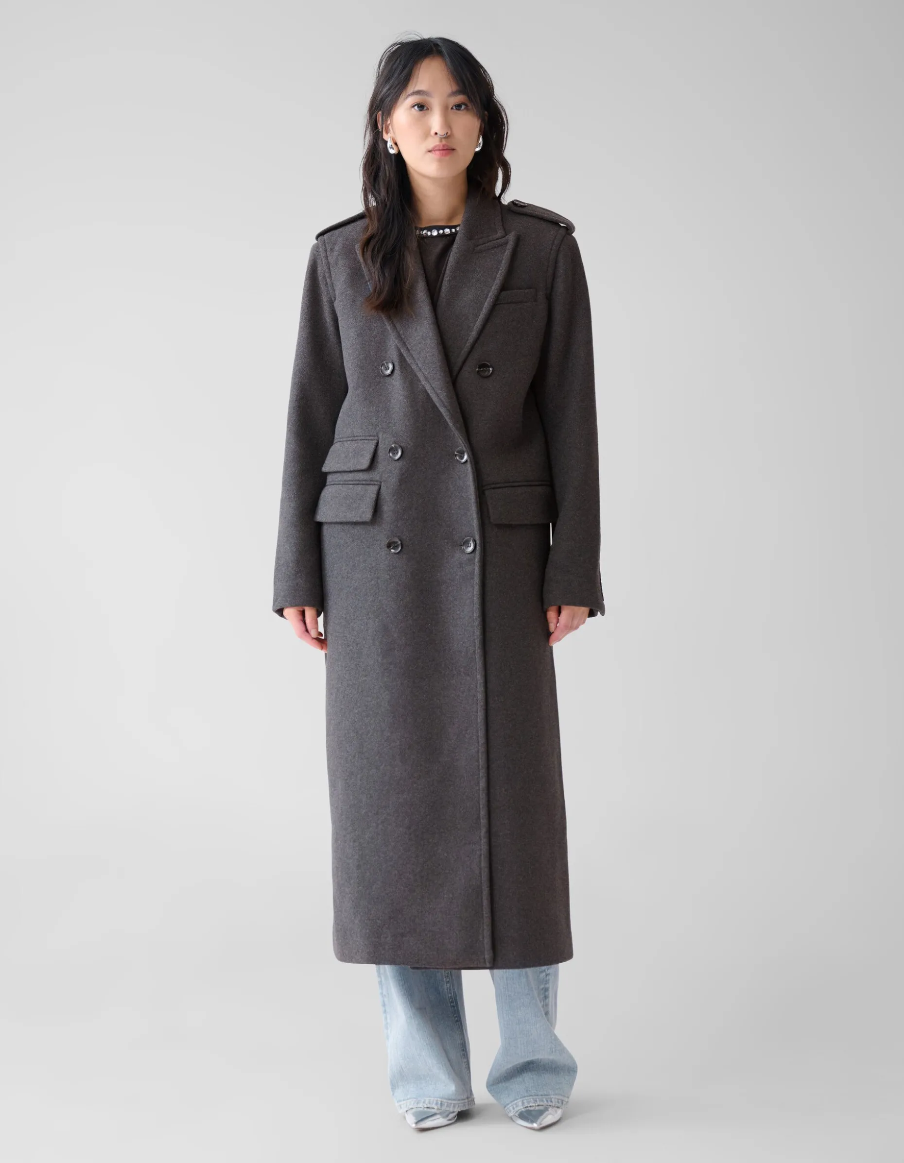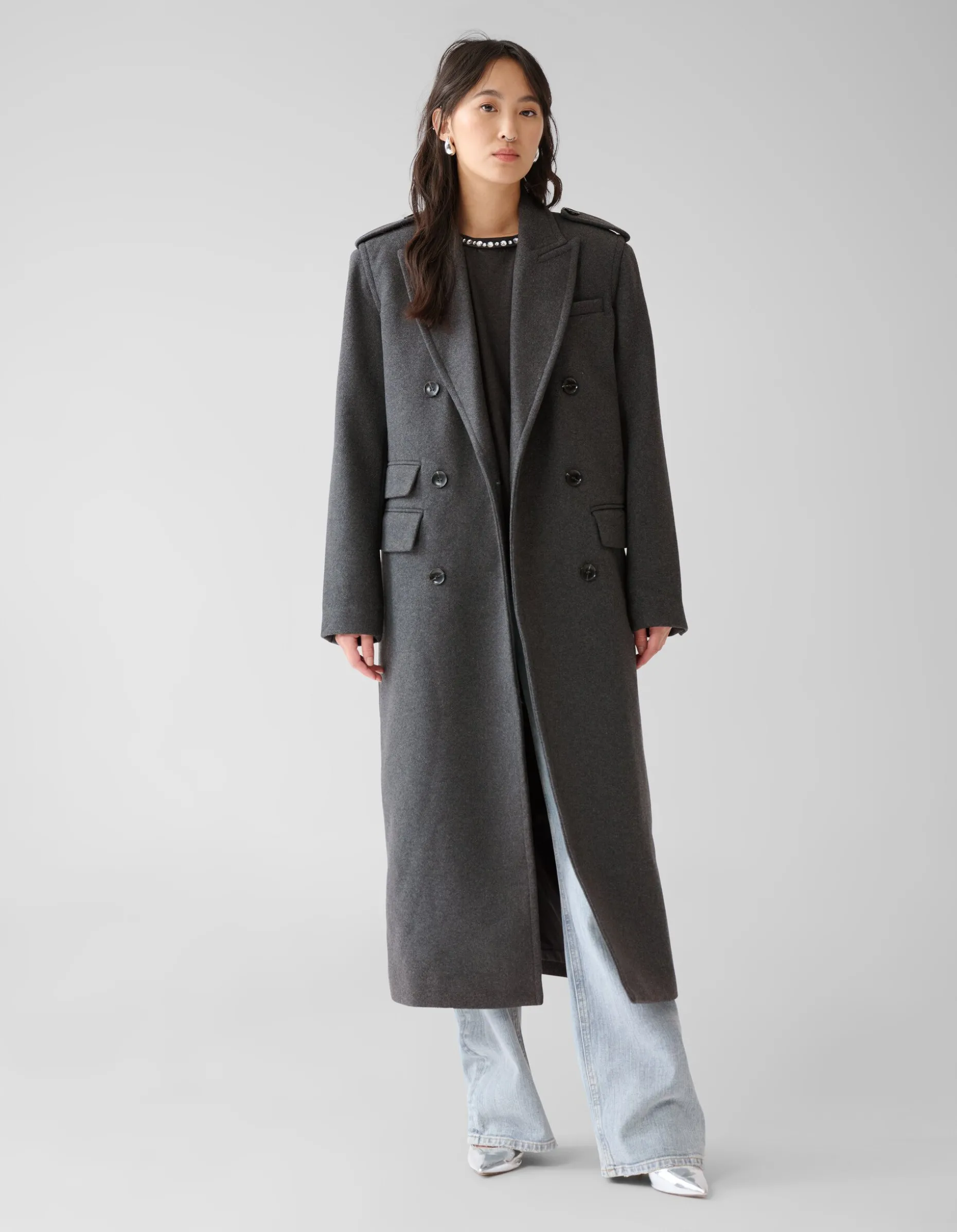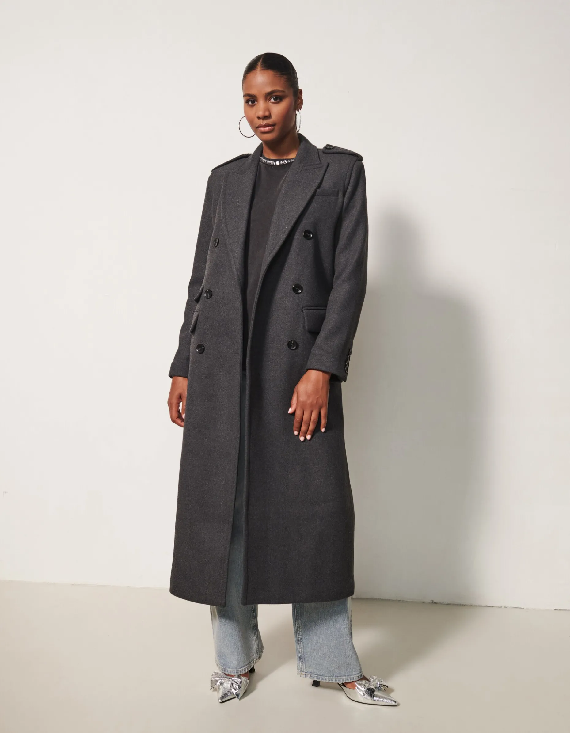Een echte musthave voor ieders jassencollectie! De Lange Trenchcoat By Fred heeft lange mouwen en een rechte fit. De jas heeft een overslag kraag en wordt gesloten middels knopen. Het item wordt gekenmerkt door de wolmix en de donkergrijs gemĂȘleerde kleur. Toffe details aan de jas zijn de insteek zakken aan de voorzijde en de schoudervulling. De jas is gemaakt van polyester en wol, waardoor hij kleur- en vormvast is en warm draagt. Combineer deze jas met andere items van de By Fred collectie voor een stylish look! Het model is 176 cm lang en draagt een maat XS/S. Het artikel heeft een totale lengte van 128 cm bij een maat XS/S.