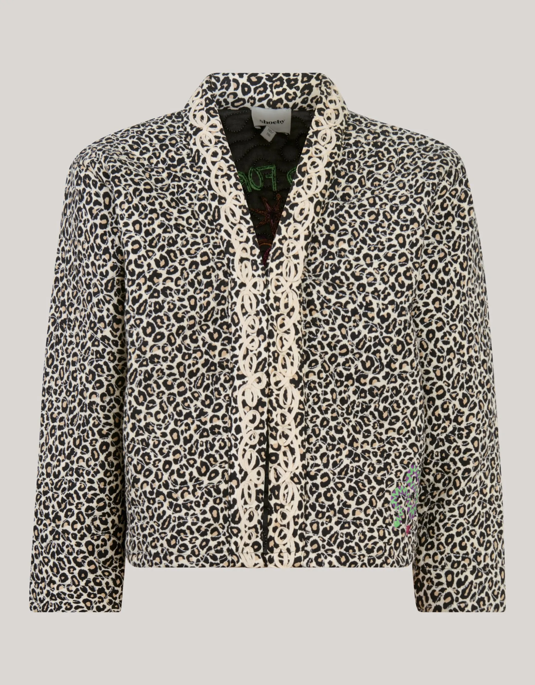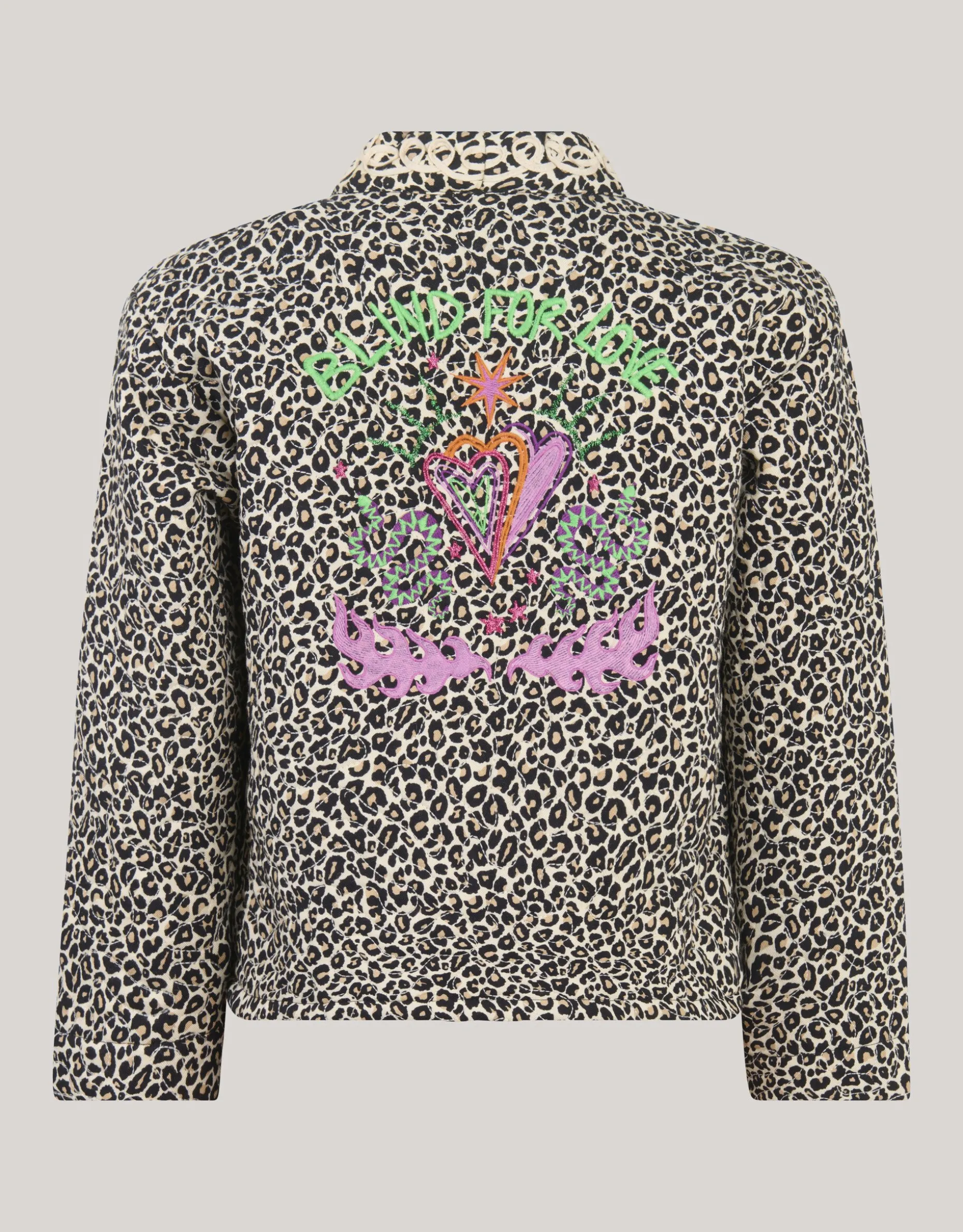 Maak je klaar om indruk te maken met het Leopard Embroidery Jack! Het jack heeft een regular fit, lange mouwen en een haaksluiting. Verder wordt het gekenmerkt door het gewatteerde materiaal en de all-over leopard print. De meerkleurige embroidery op de achterkant geeft het jack nog een extra detail. Het item is gemaakt van viscose, waardoor het comfortabel draagt. Combineer met een zwarte top en een basis jeans voor een complete look.