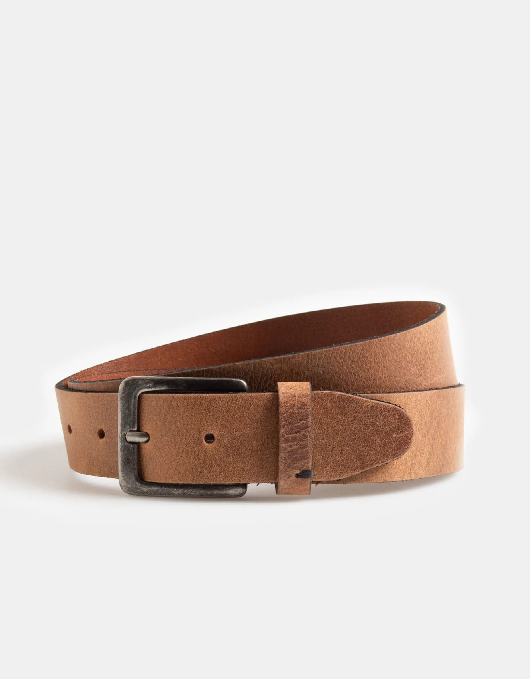Belt it up! Deze leren riem is de perfecte toevoeging op jouw look. Door de bruine kleur is de riem eenvoudig te combineren met iedere outfit. De gesp is strak vormgegeven en is gemaakt van metaal. Door het echte leer heeft iedere riem een unieke uitstraling. De riem is 3,5 cm breed.