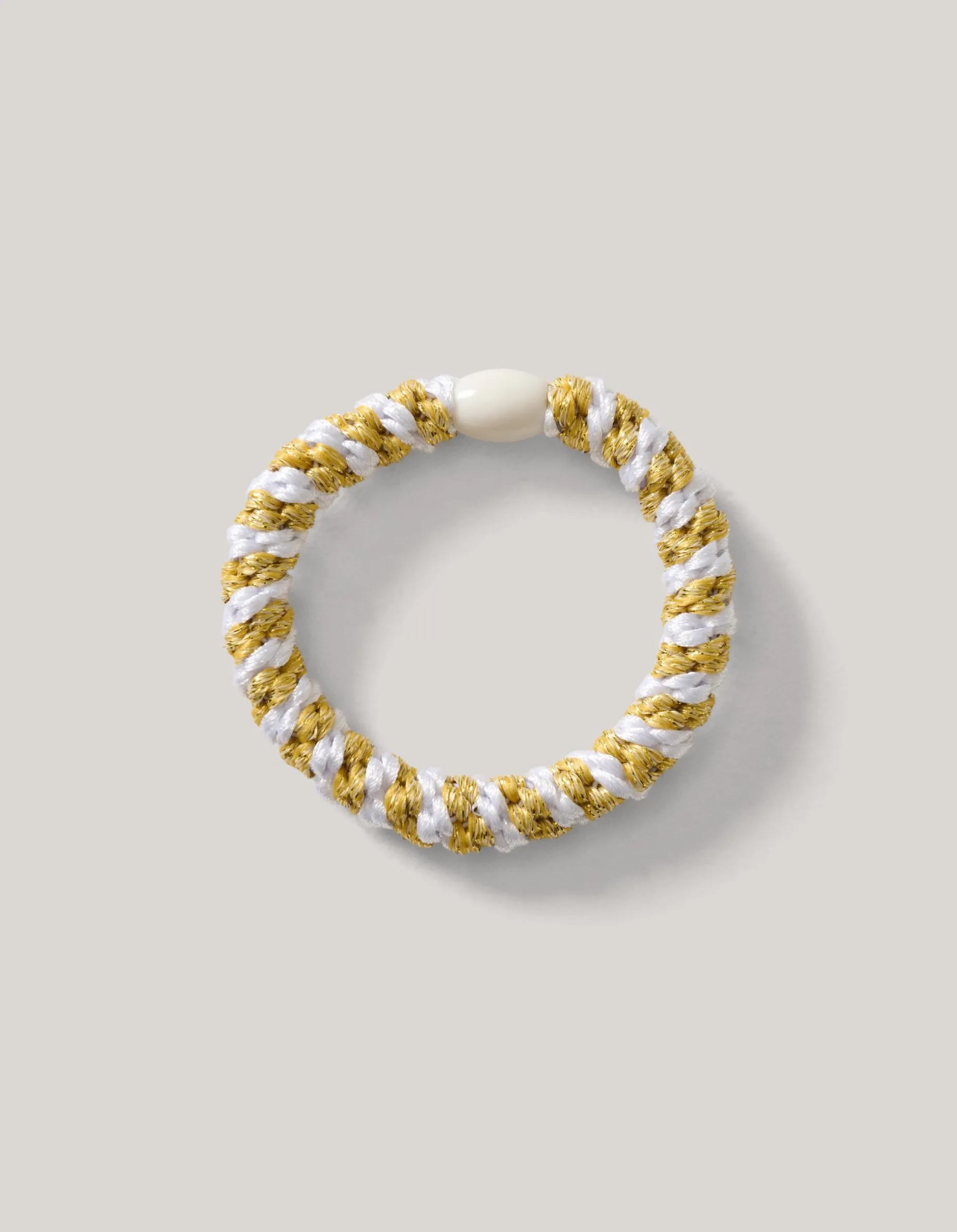 Musthave! Maak je haarlook compleet met deze leuke haarelastiek. Het item wordt gekenmerkt door de goude kleur. Verder heeft de haarelastiek een lurexdraad er doorheen verwerkt. Leuk om je arm als armband of in je haren.