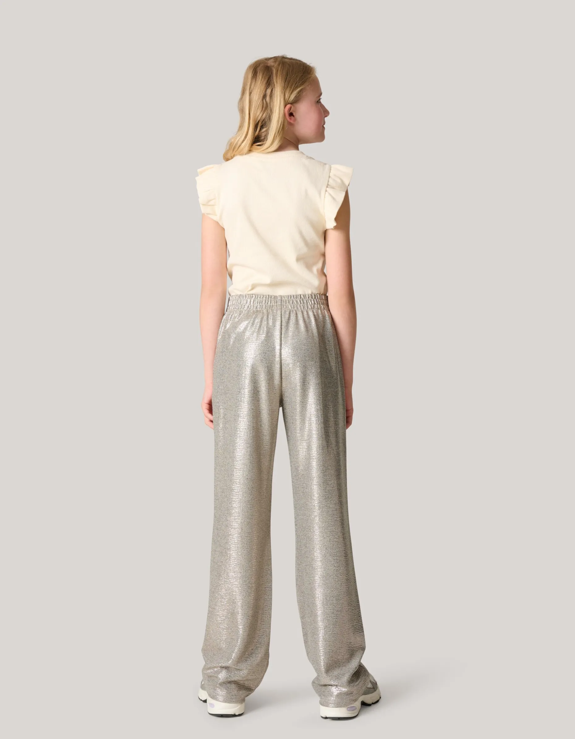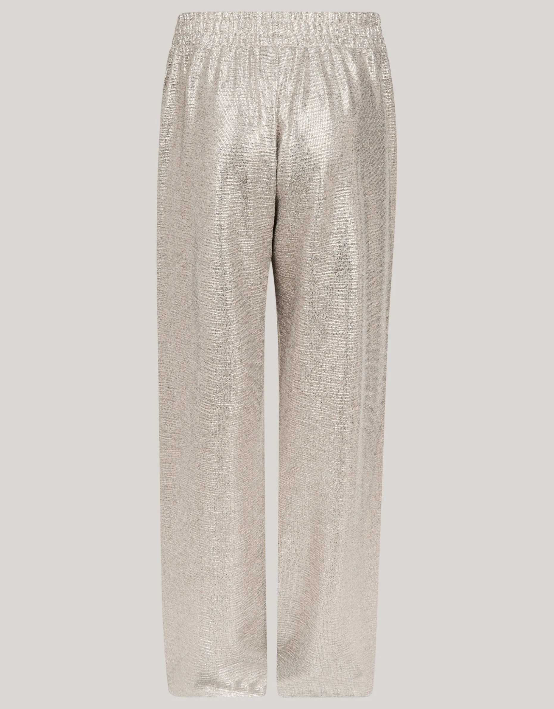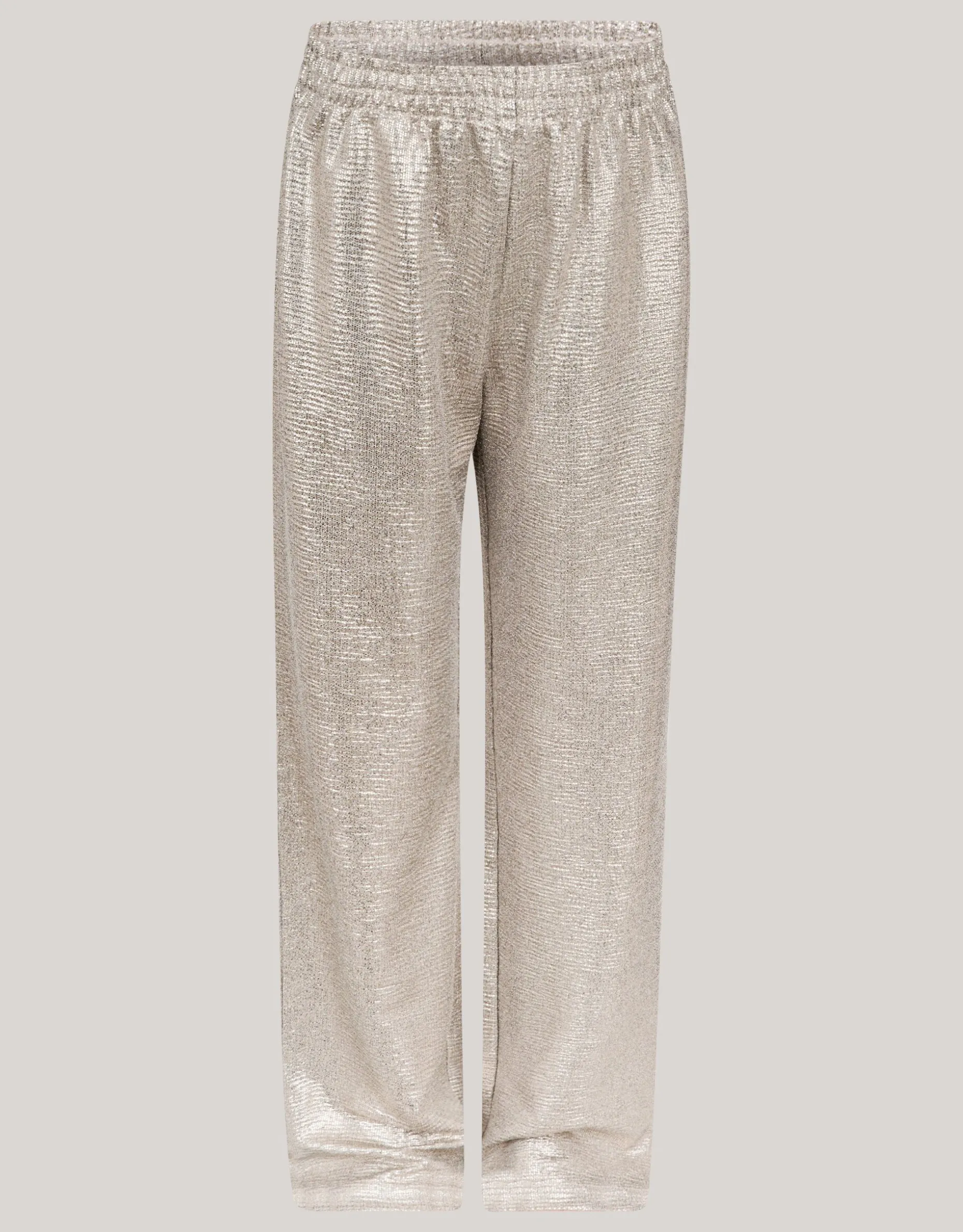Shoeby for the ultimate party look! De Metallic broek heeft een hoge taille, een loose fit, steekzakken, een stretch stof en een elastieke band in de taille. Het item wordt gekenmerkt door de zilveren kleur met een metallic coating. Deze coating zorgt voor een glanzend detail, waardoor de broek subtiel glittert. Het is gemaakt van polyester en elastaan. Door deze samenstelling is het strijkvrij, sterk van kwaliteit en comfortabel draagt. Maak de look compleet met een sweater of een statement tee voor een stylish look!