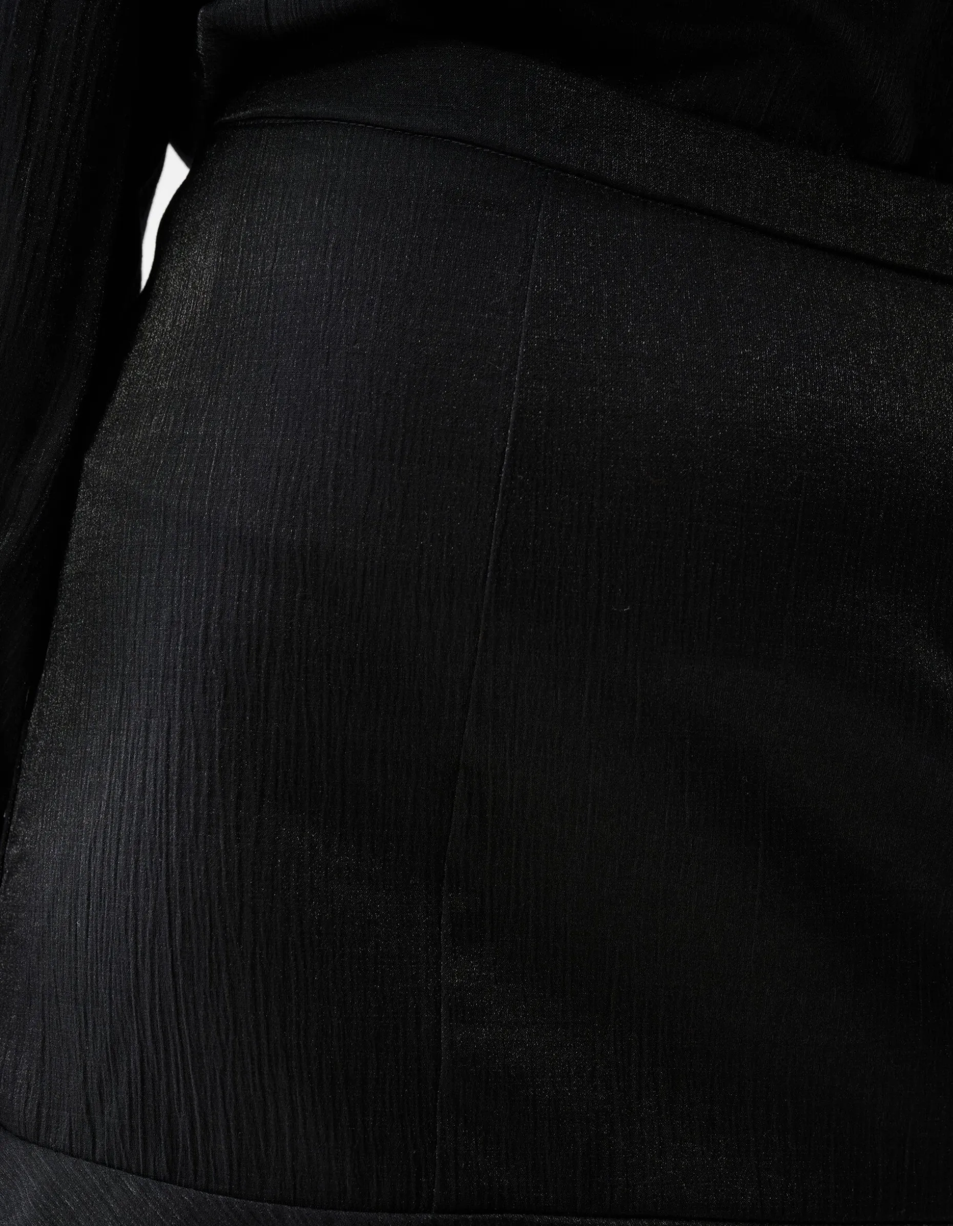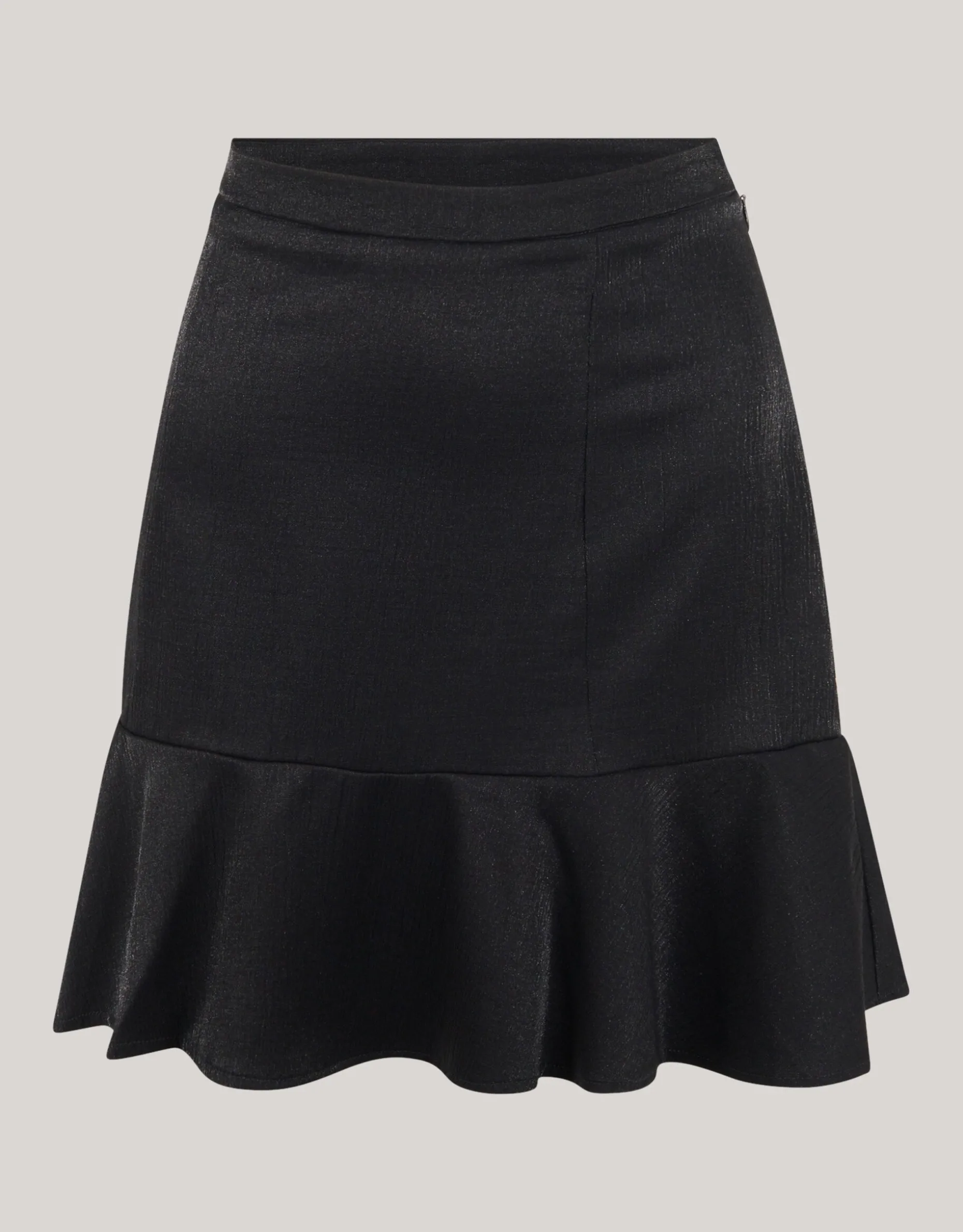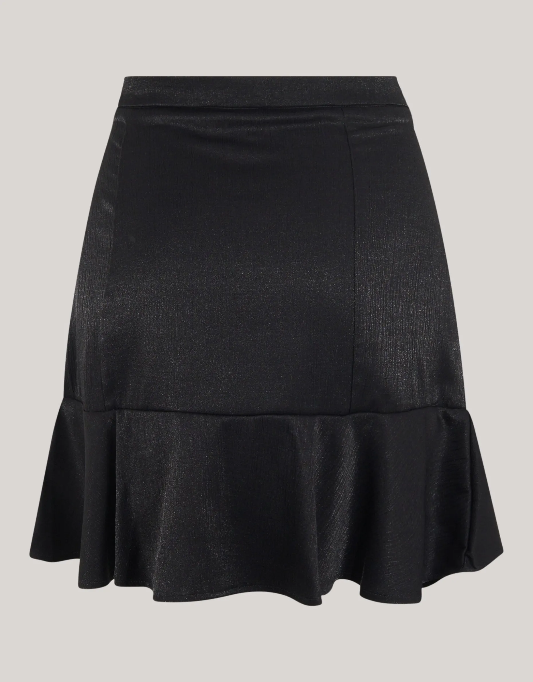 Party essential! De Metallic Rok heeft een hoge taille, een non-stretch stof, een mini-lengte, een ritssluiting aan de zijkant en een uitlopend model. Het item wordt gekenmerkt door de zwarte kleur en de all-over glanzende metallic details. Verder heeft de onderzijde van de rok een laag voor een speels effect. Draag het samen met de bijpassende top voor een complete set! Het model heeft een lengte van 176 cm en draagt maat S. Het artikel heeft een totale lengte van 41 cm bij maat S.